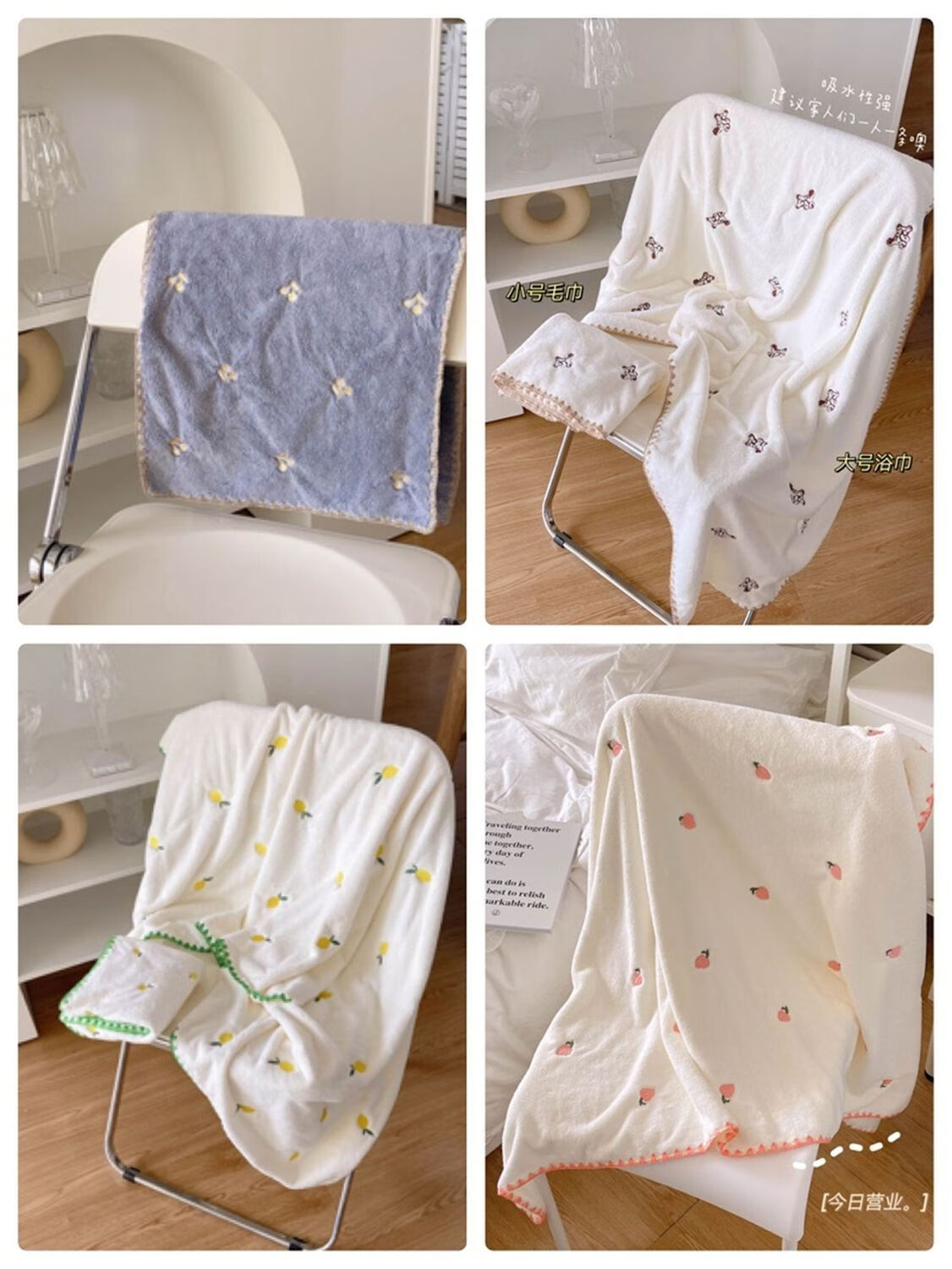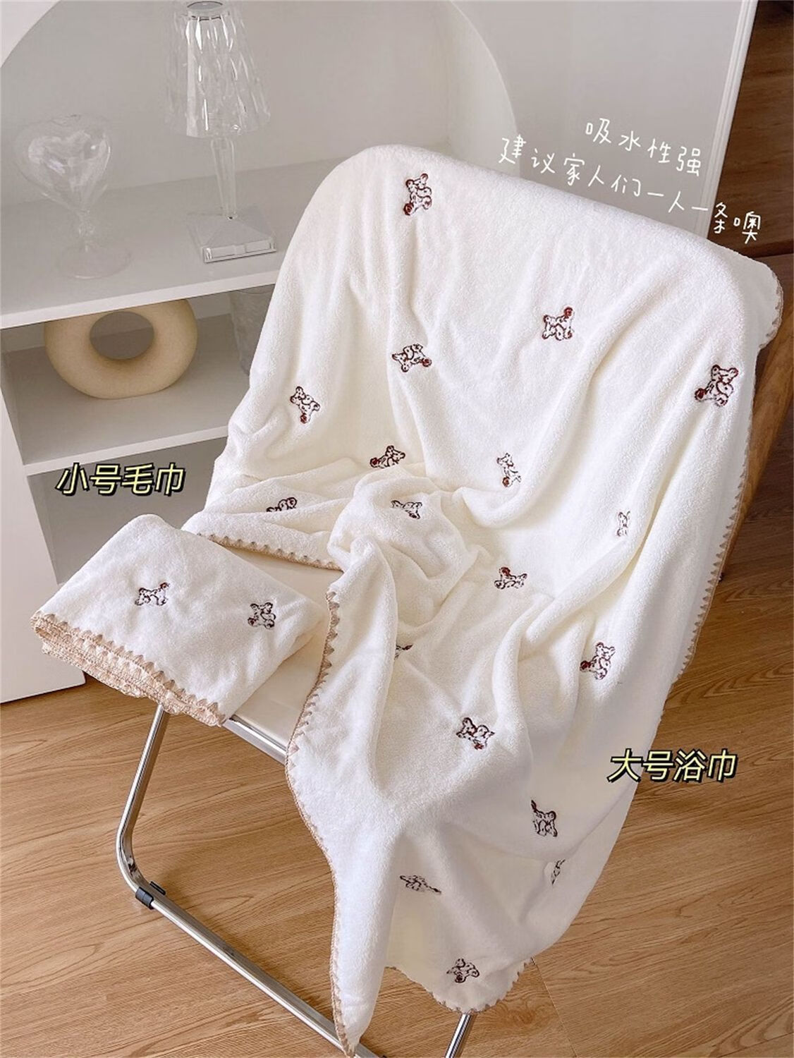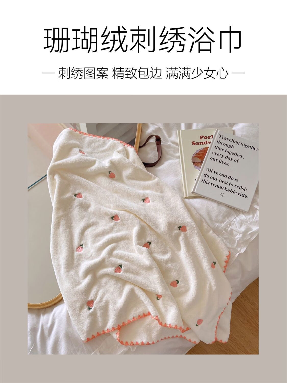 Women's home absorbent and quick-drying bath towel 2025 new coral velvet lint-free cute wrap adult bath towel white peach bath towel