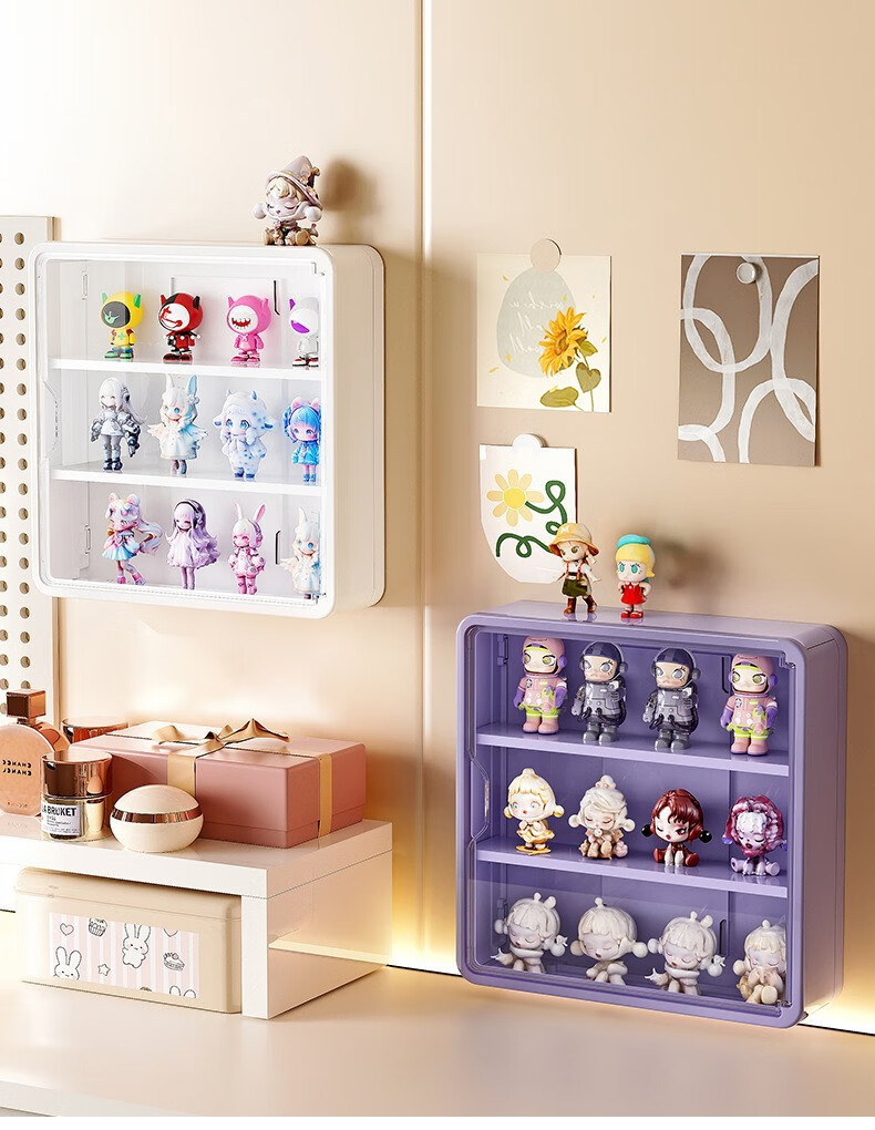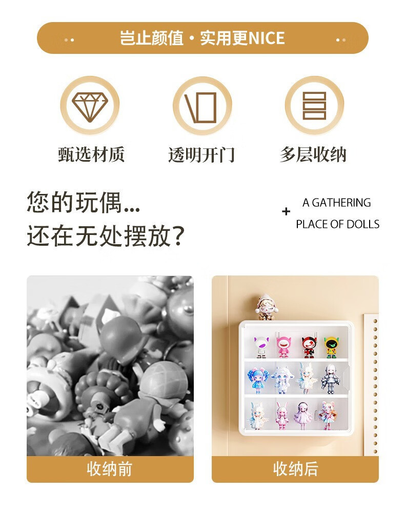 Wall-mounted doll blind box storage display stand magnetic bubble mart figure display cabinet dust-proof doll blind box storage box large white _ foldable (no punching wall hanging, comes with traceless stickers)