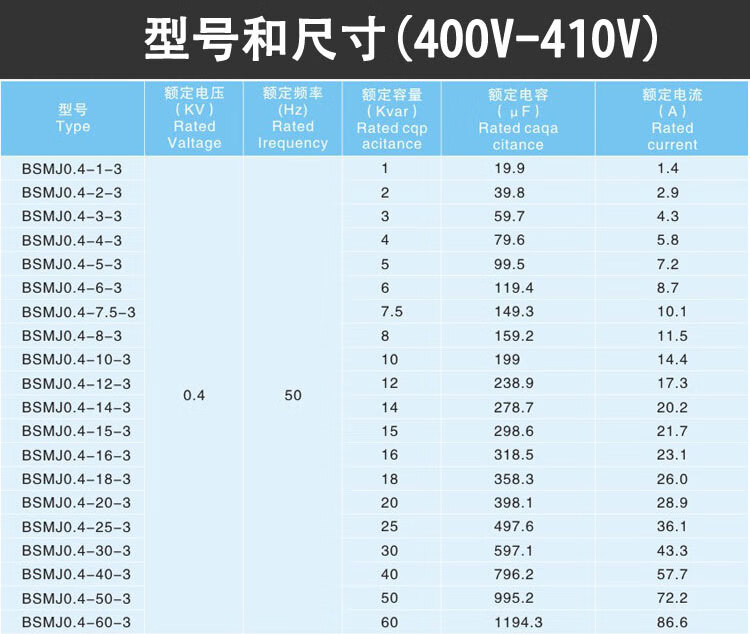 Viscon Electric reactive power compensation power capacitor 0.45 -10 15 20 25 30 40-3 BSMJ0.45-60-3