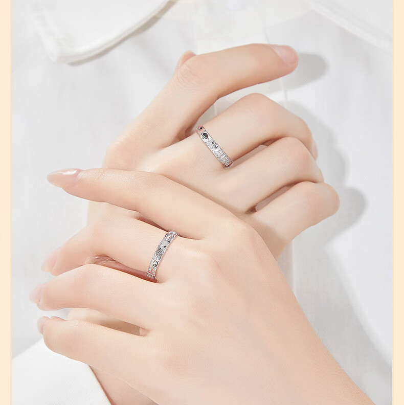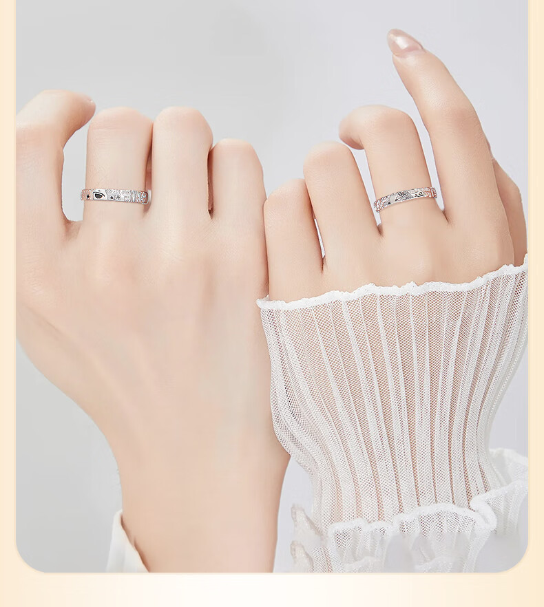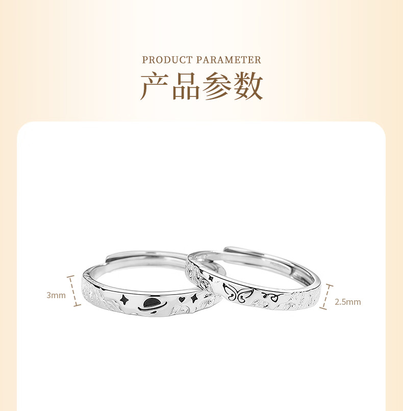 Chinese Gold Butterfly Planet Pure Silver Ring for a Male and Female Couple, Birthday Gift for Girlfriend and Wife, Wedding Anniversary, Island Butterfly Matching Ring, Bouquet Gift Box