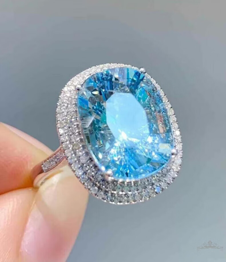 HEEKAIYI Aquamarine Ring for Women Super Santa Maria 18K Gold Diamond 520 Valentine's Day Birthday Gift for Wife and Girlfriend Missing 4.8 Carat Santa Maria Aquamarine Ring