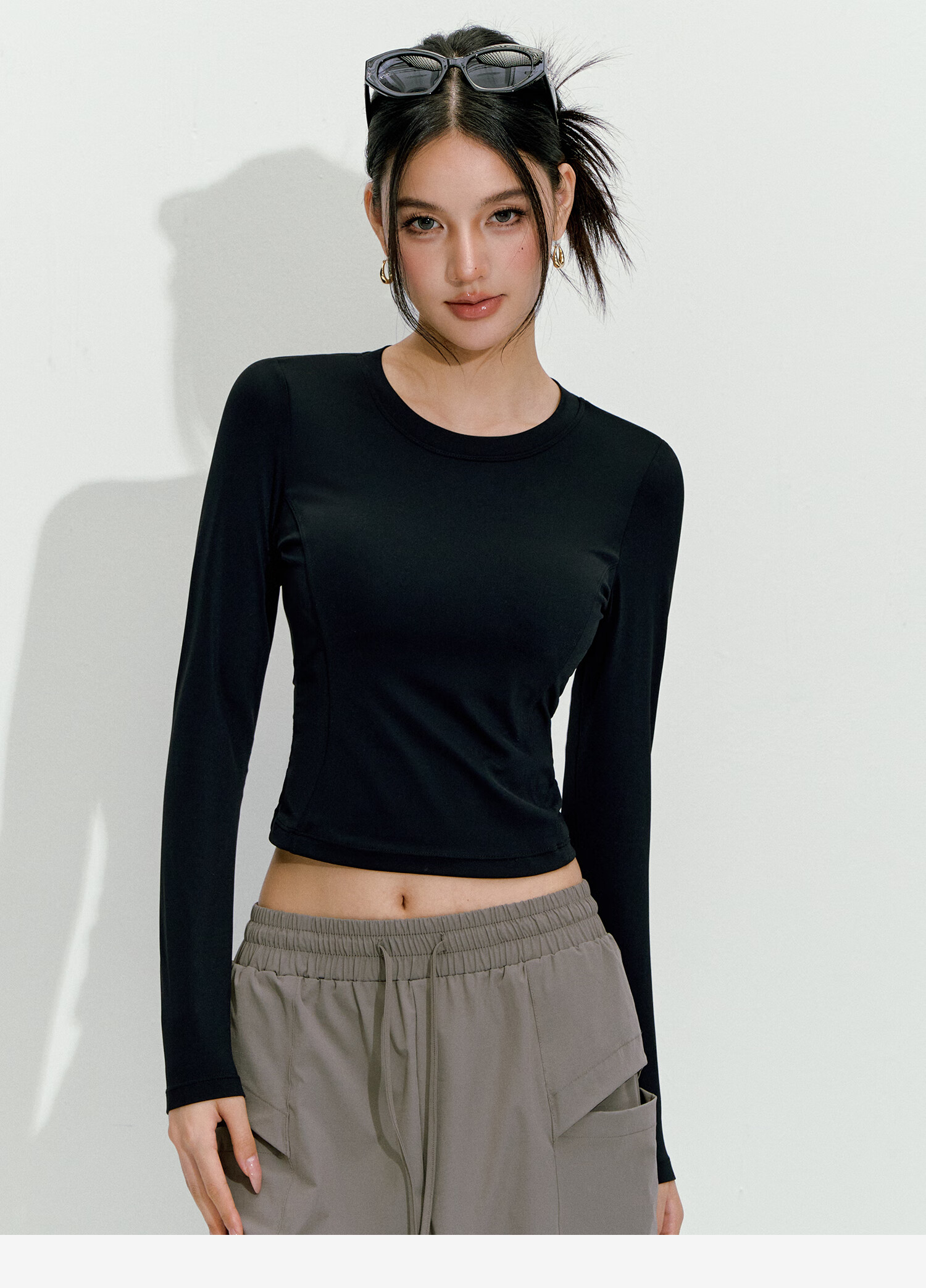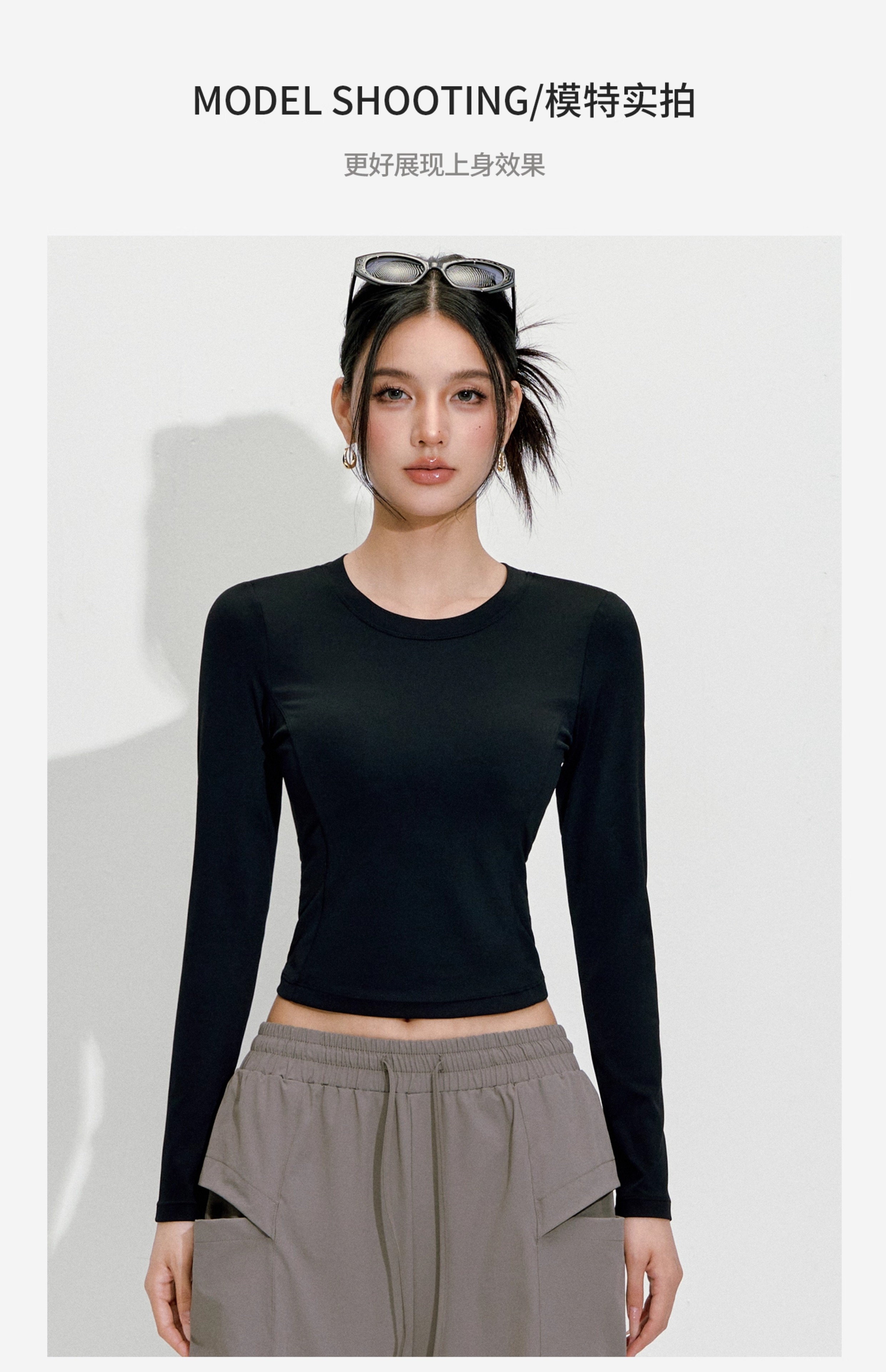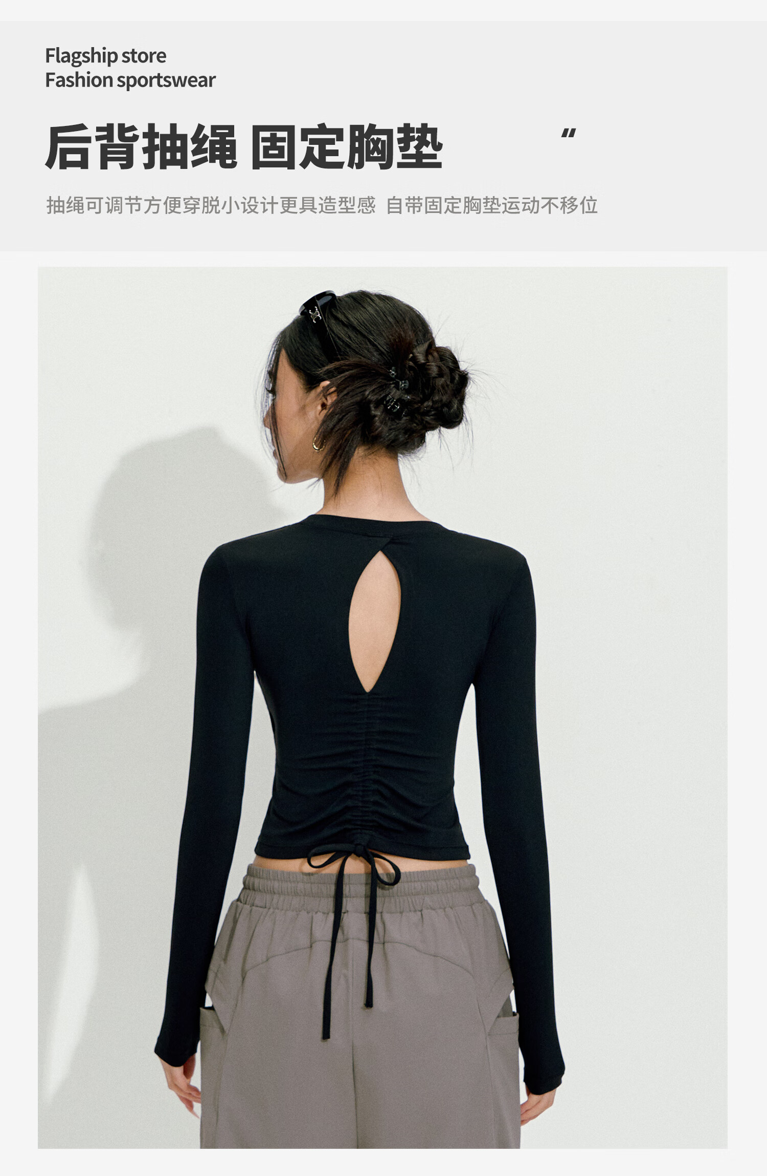LULULMCCTN women's new tight-fitting slimming Pilates professional training sports long-sleeved top with chest pad yoga wear dark brown M