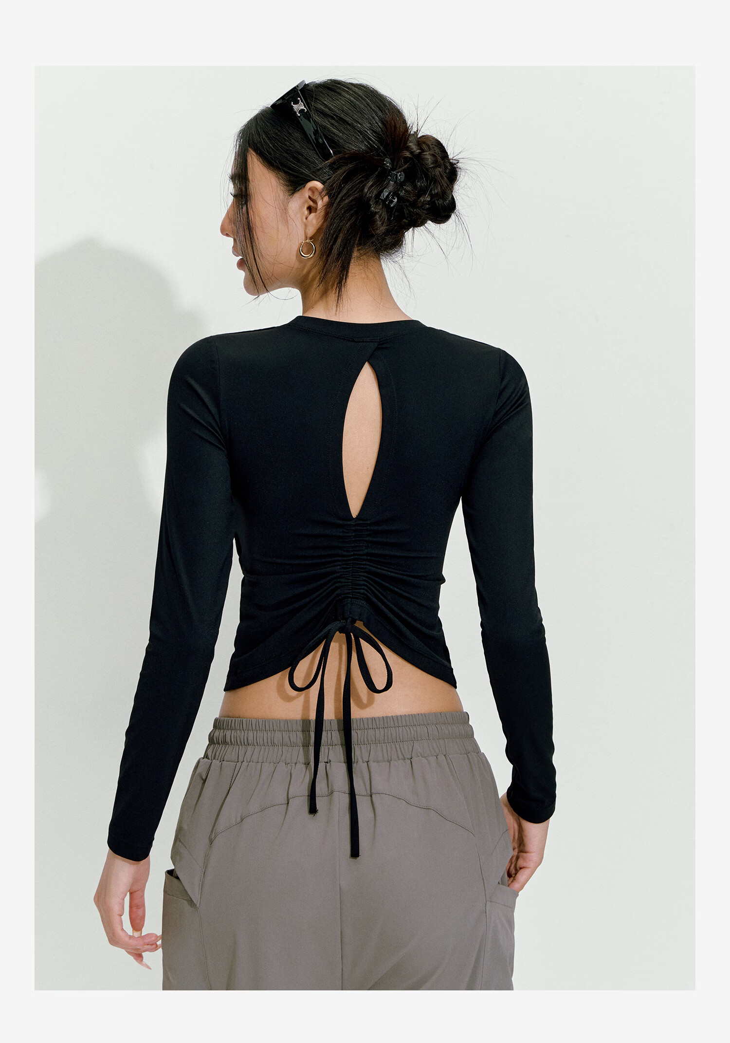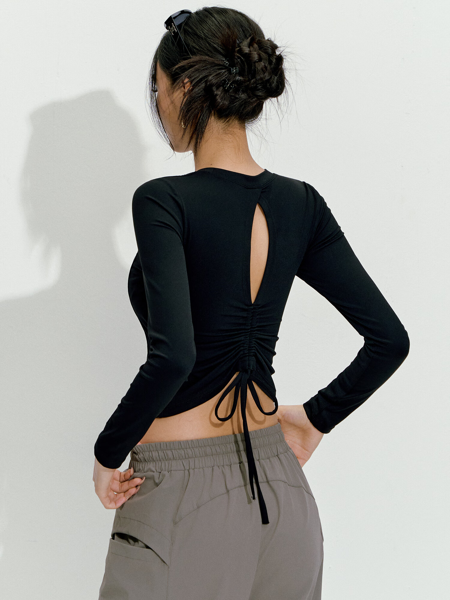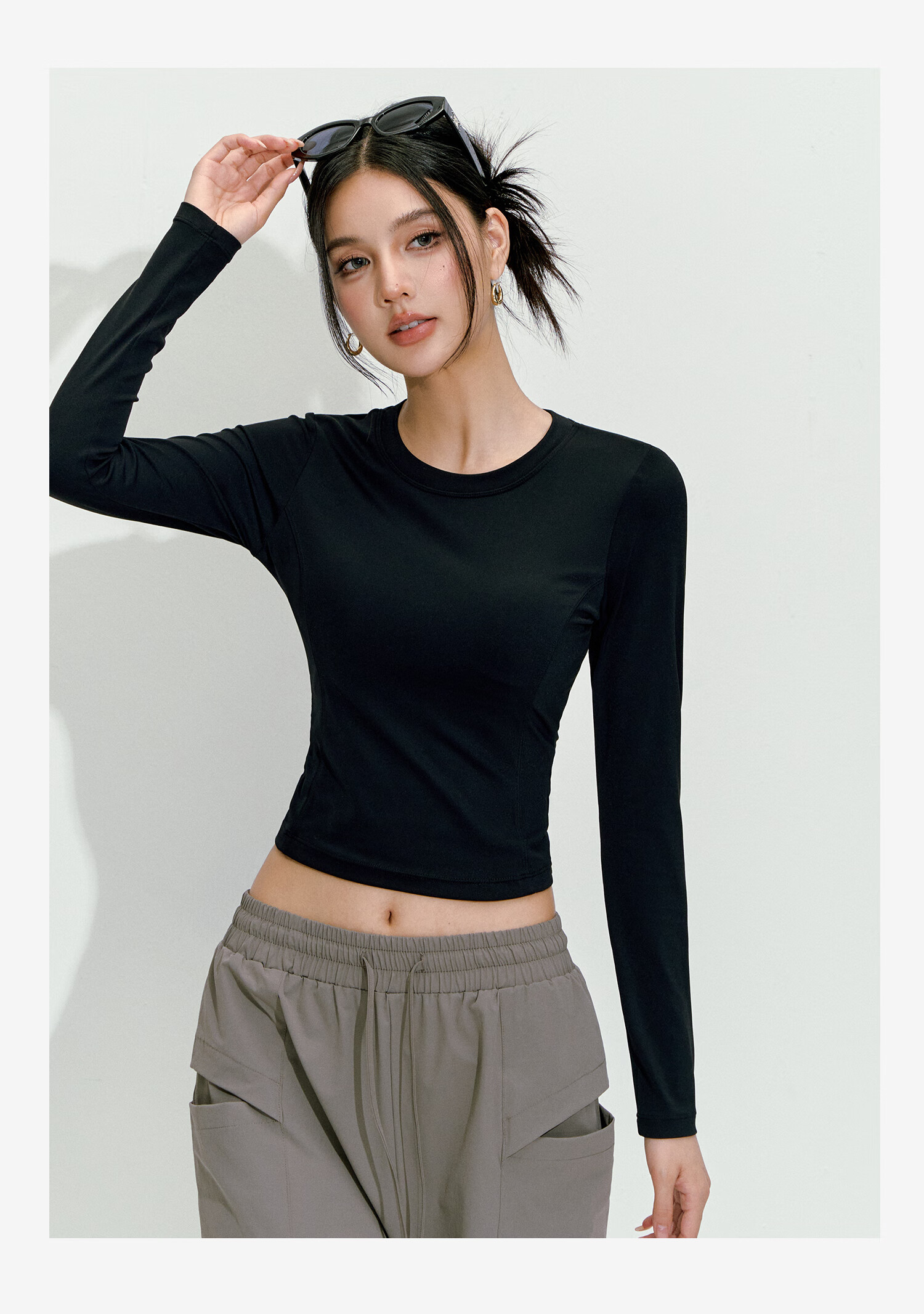 LULULMCCTN women's new tight-fitting slimming Pilates professional training sports long-sleeved top with chest pad yoga wear dark brown M
