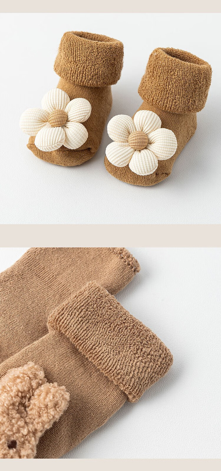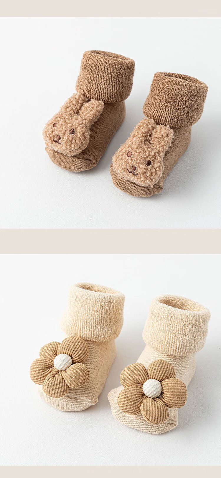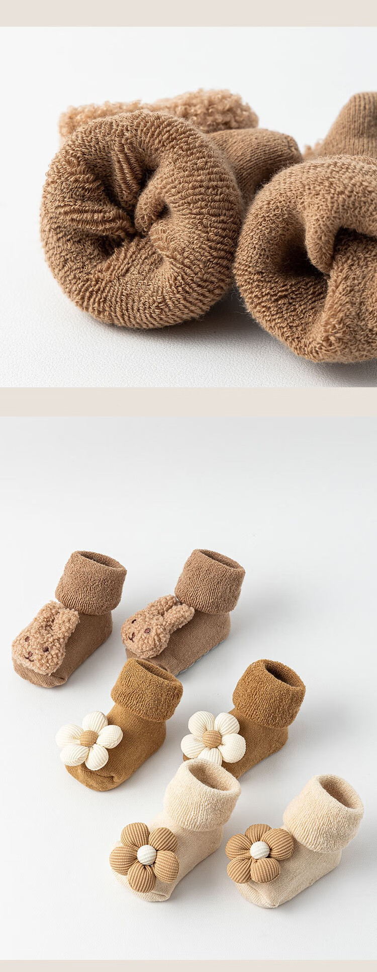 Newborn infants 0-6-12 months baby cotton socks autumn and winter plus velvet thickened warm toddler floor socks white 0-1 years old S size recommended foot length 8-10.5cm