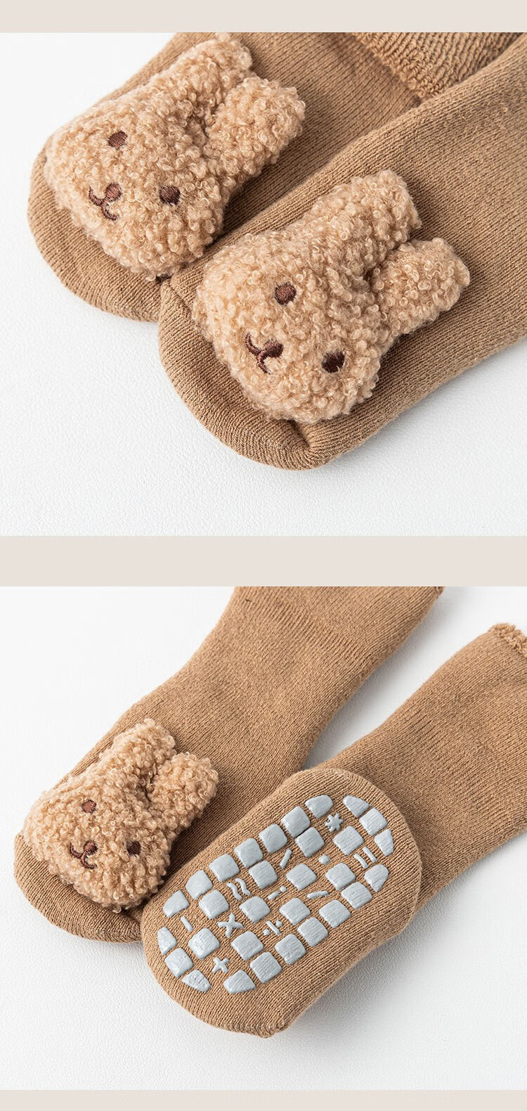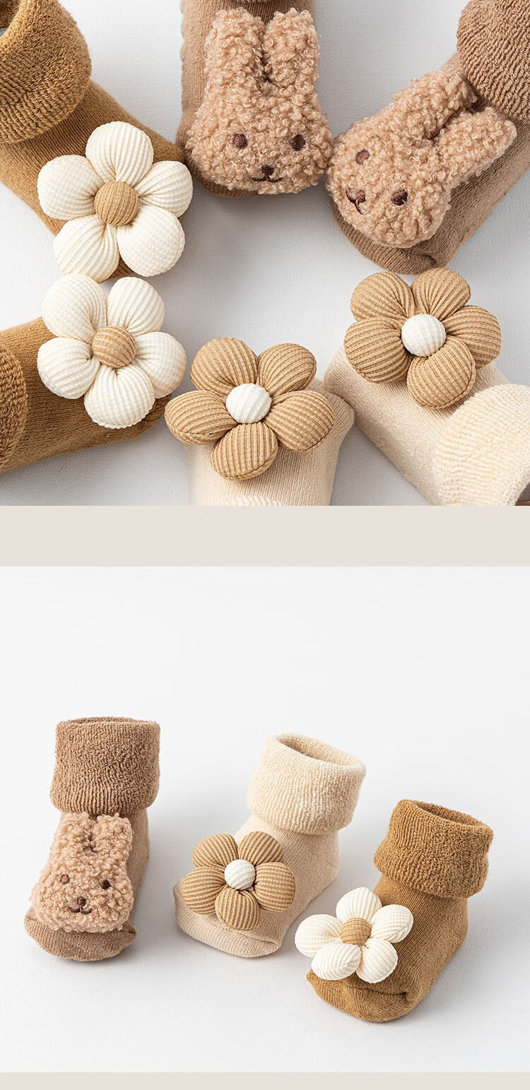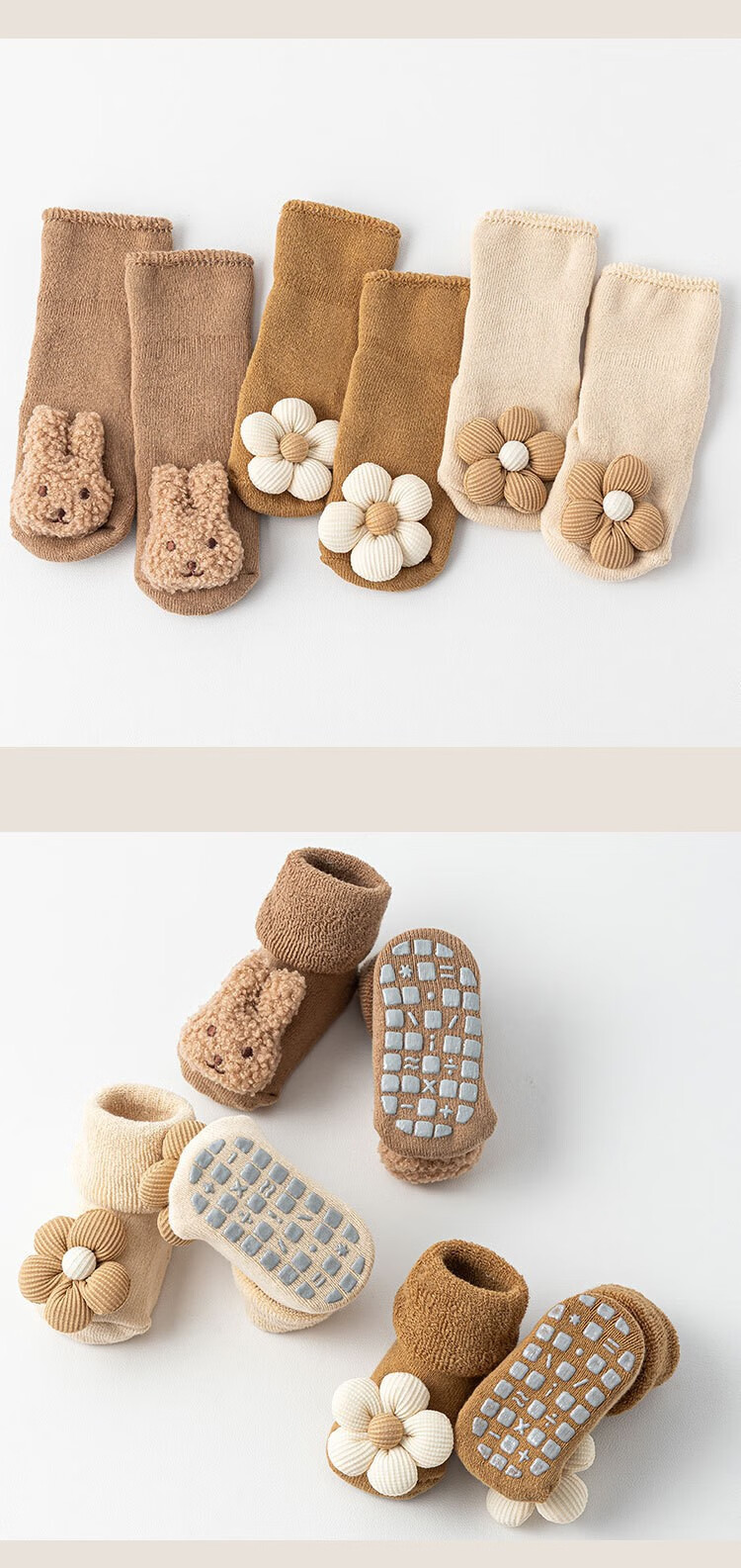 Newborn infants 0-6-12 months baby cotton socks autumn and winter plus velvet thickened warm toddler floor socks white 0-1 years old S size recommended foot length 8-10.5cm