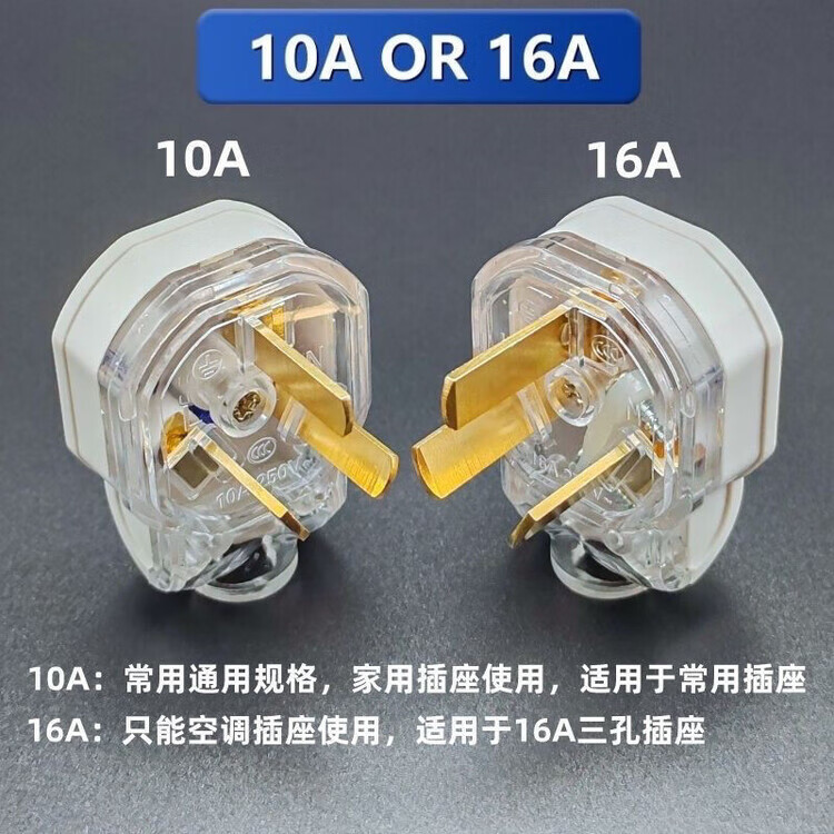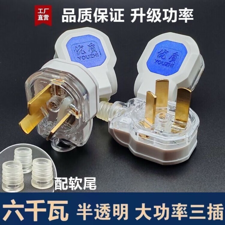 High-power plug 6500w three-pin 16A translucent copper non-rotten explosion-proof 10A three-pin three-phase universal high-power 16A translucent three-pin plug 1