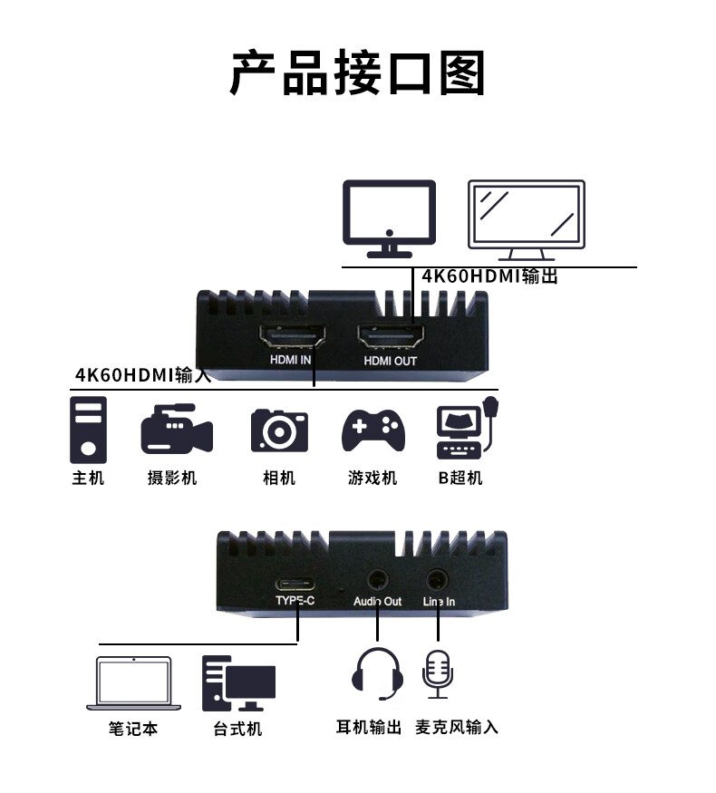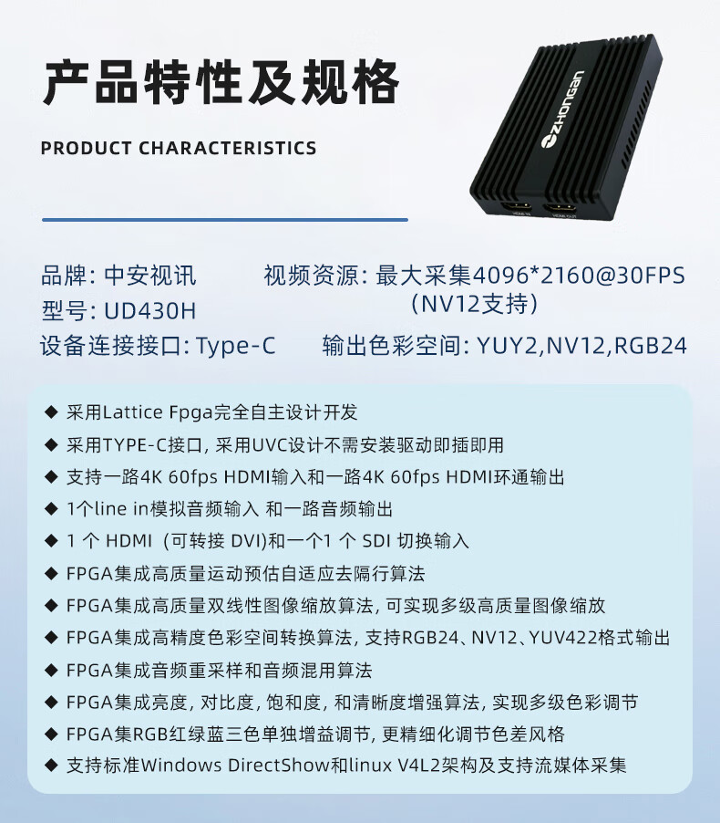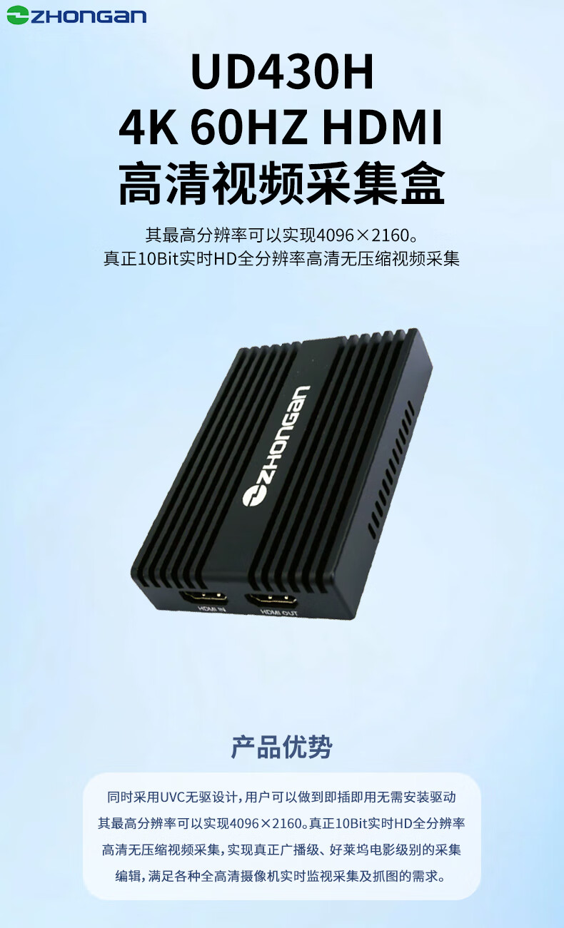 Zhongan Video UD430H HD capture card Sony Canon SLR camera mobile phone tablet PS4/5pro live broadcast USB3.2 driver-free TikTok live companion RGB24 image recording UD430H HD capture card Sony Canon SLR camera