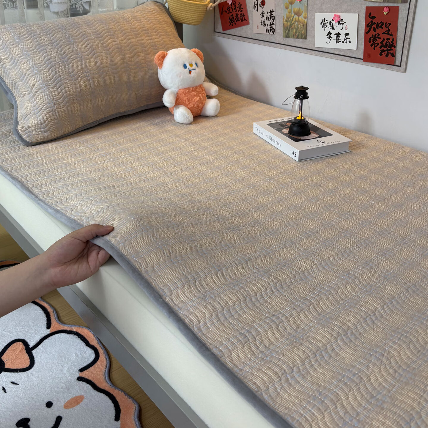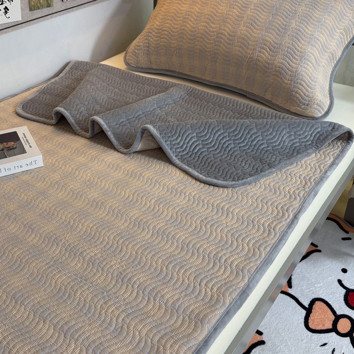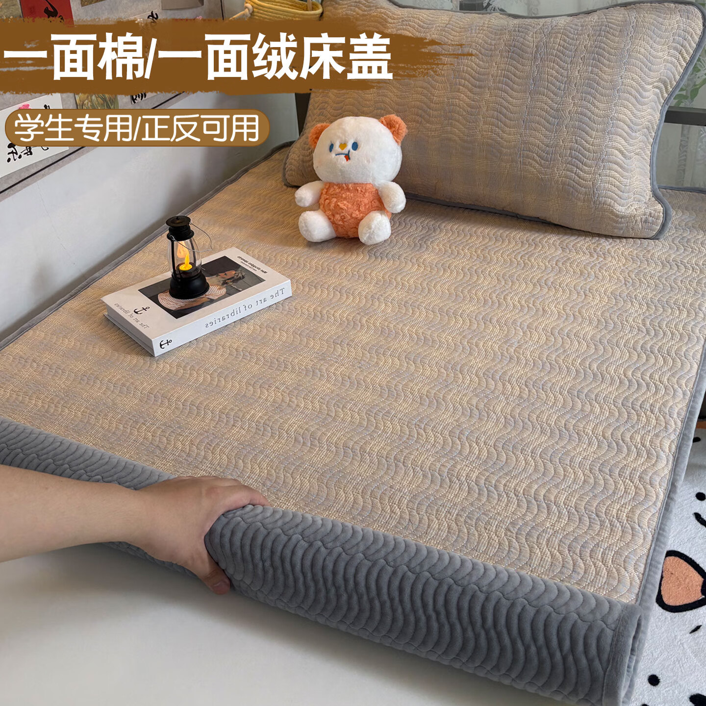TENGAI HOME TEXTILE one side pure cotton and one side baby velvet bed cover single student dormitory three-piece set of cotton quilted sheets mattress cushion lime blue one side pure cotton one side velvet, double-sided single bed cover 90*200cm suitable for 0.9m dormitory bed