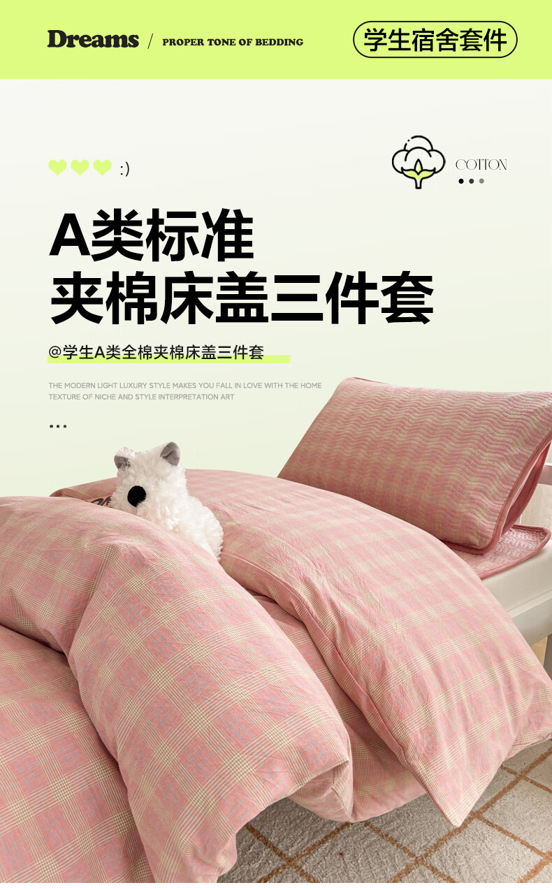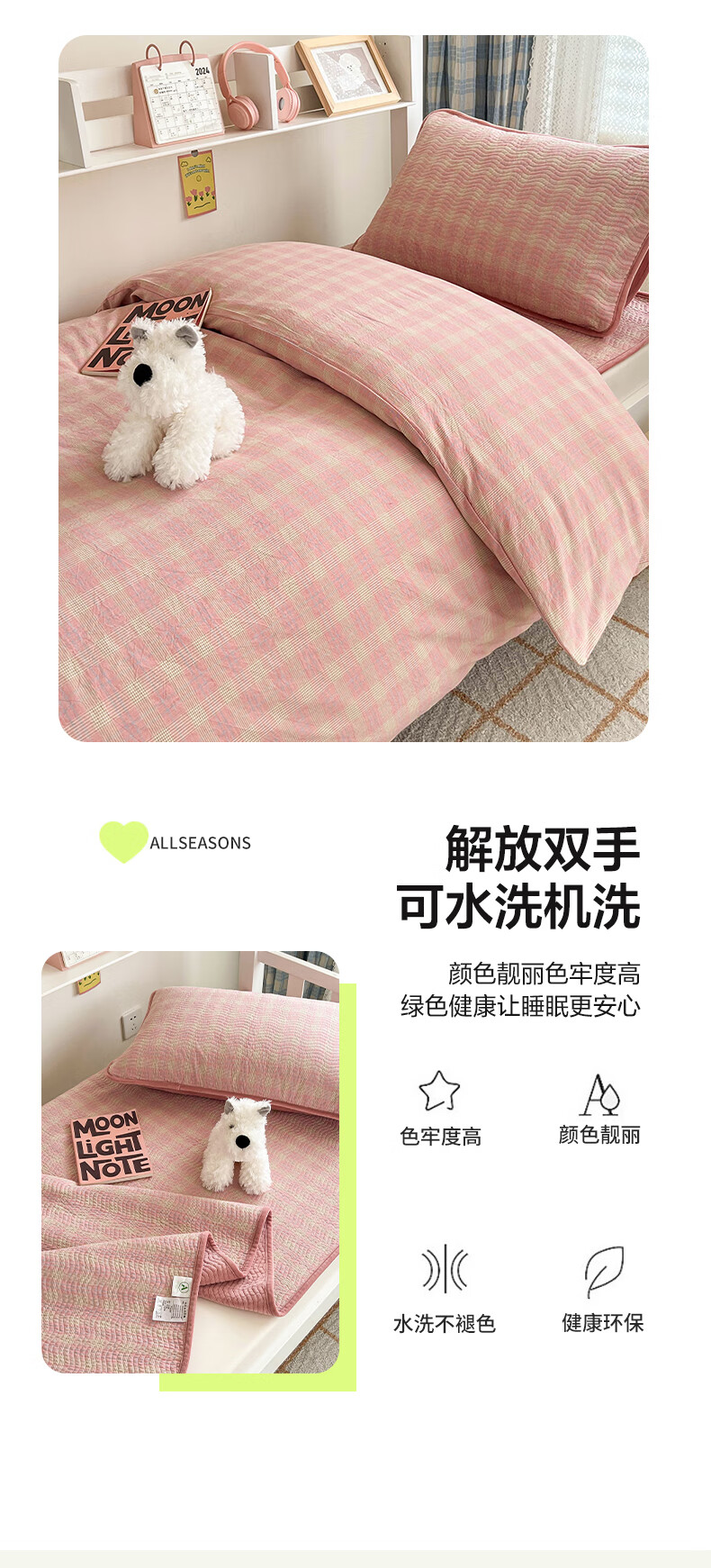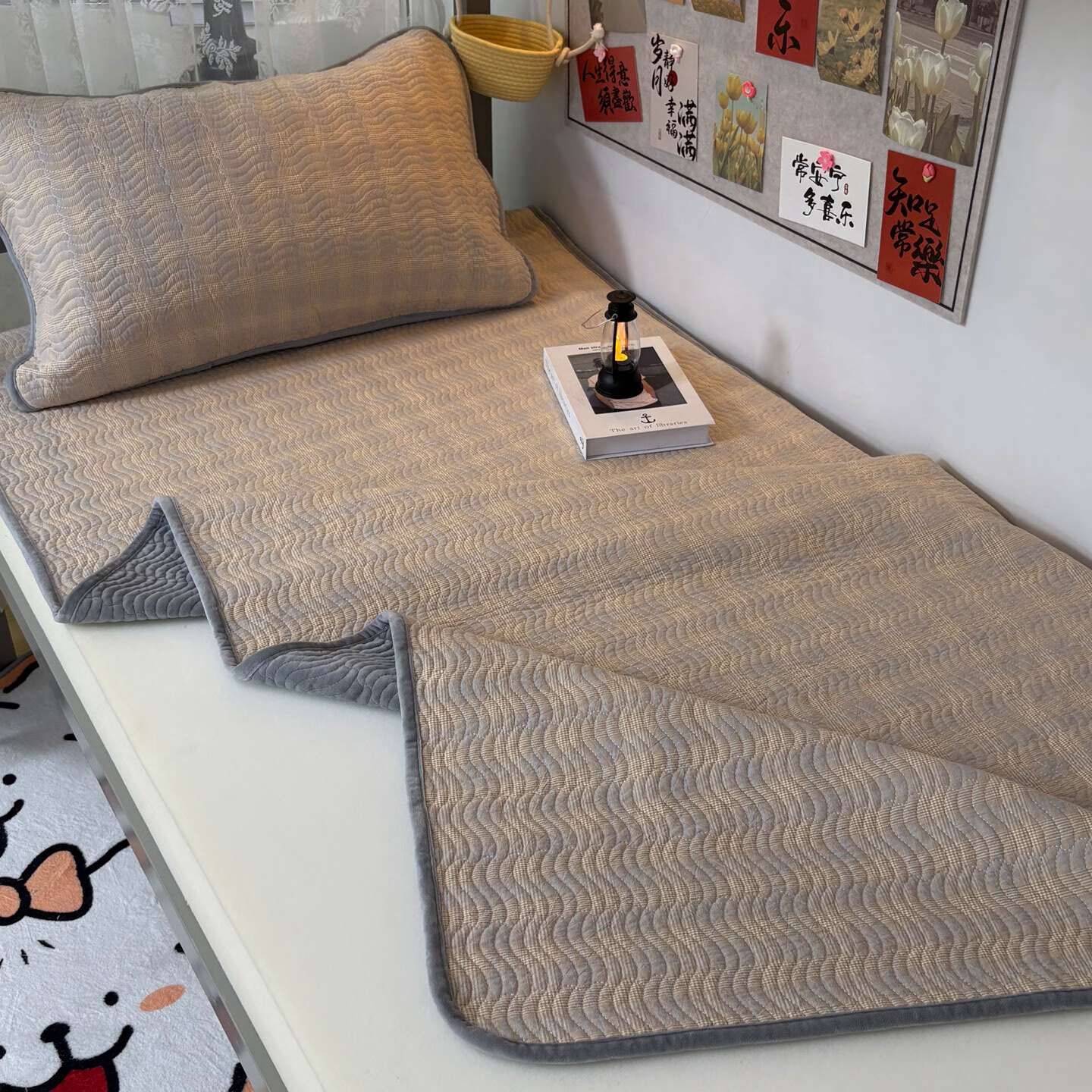 TENGAI HOME TEXTILE one side pure cotton and one side baby velvet bed cover single student dormitory three-piece set of cotton quilted sheets mattress cushion lime blue one side pure cotton one side velvet, double-sided single bed cover 90*200cm suitable for 0.9m dormitory bed