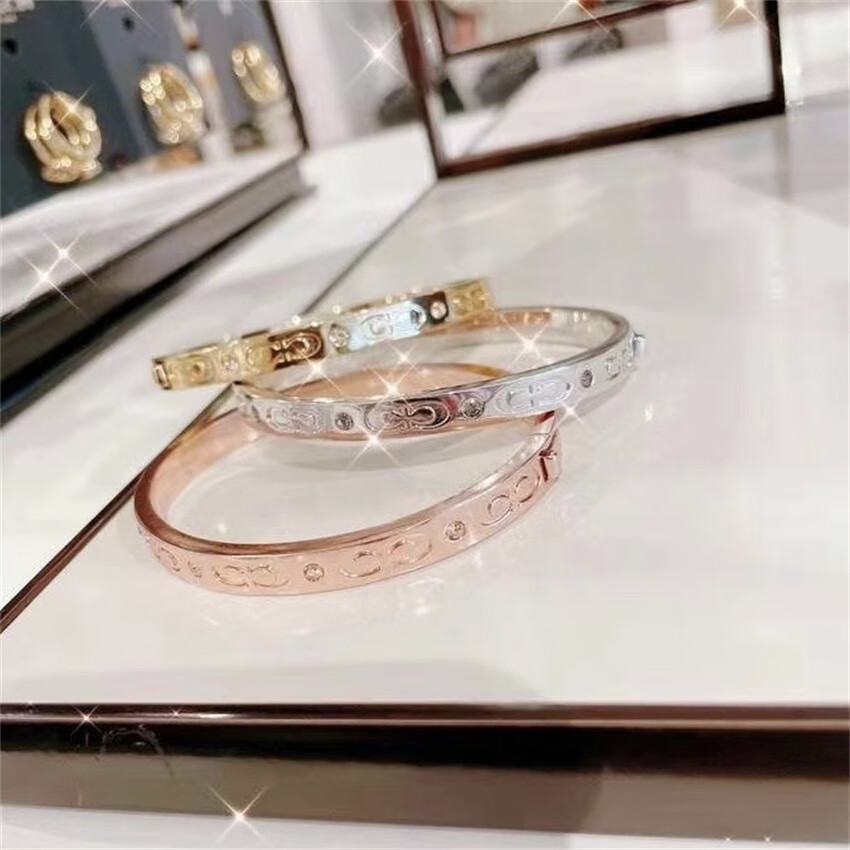 COACH Outlet Women's Bracelet Jewelry Live Buckle Crystal Double C Logo Rose Gold CX686 BLM