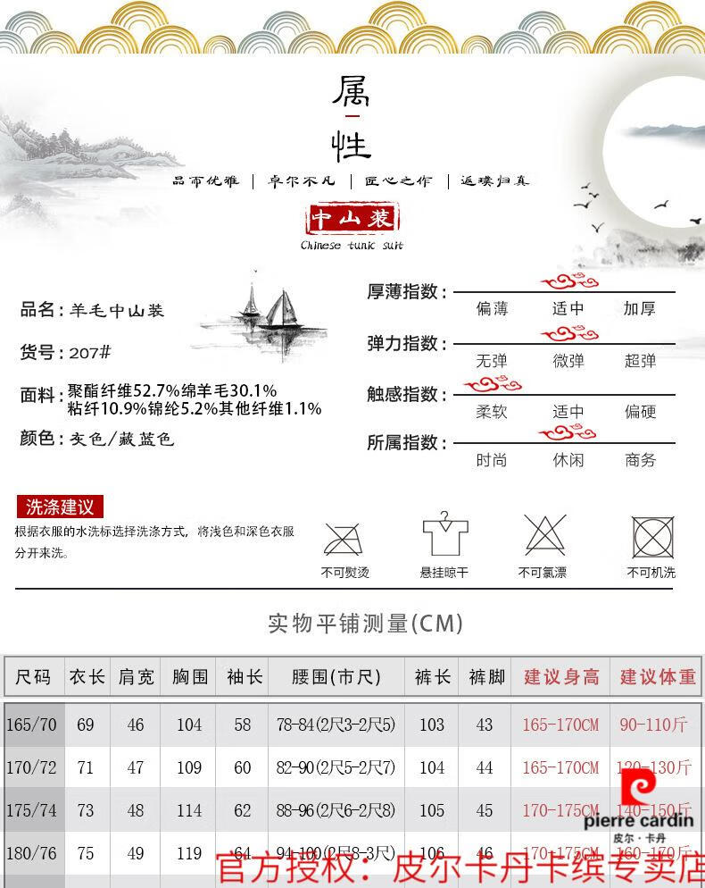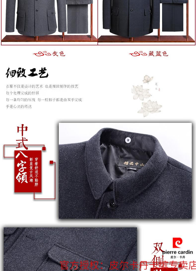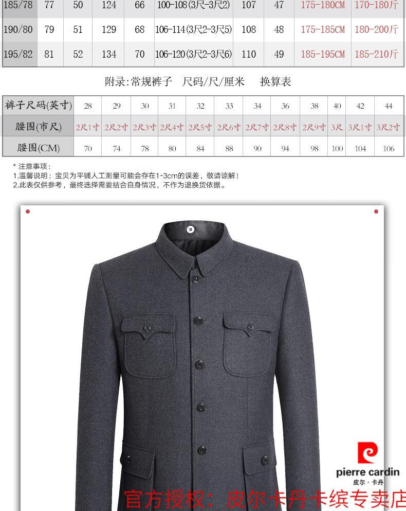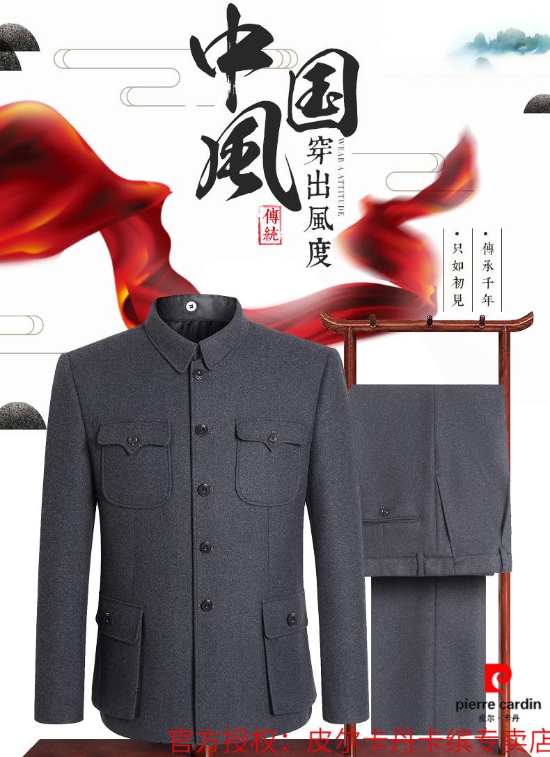 Pierre Cardin high-end wool tunic suit, middle-aged and elderly men's dad's suit, old-fashioned tunic jacket, spring and autumn Tang suit, gray S 165/70 recommended 90-110 Jin Jin equals 0.5 kg