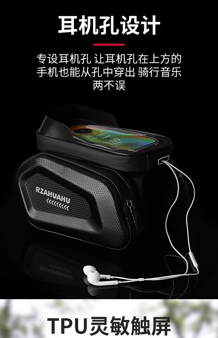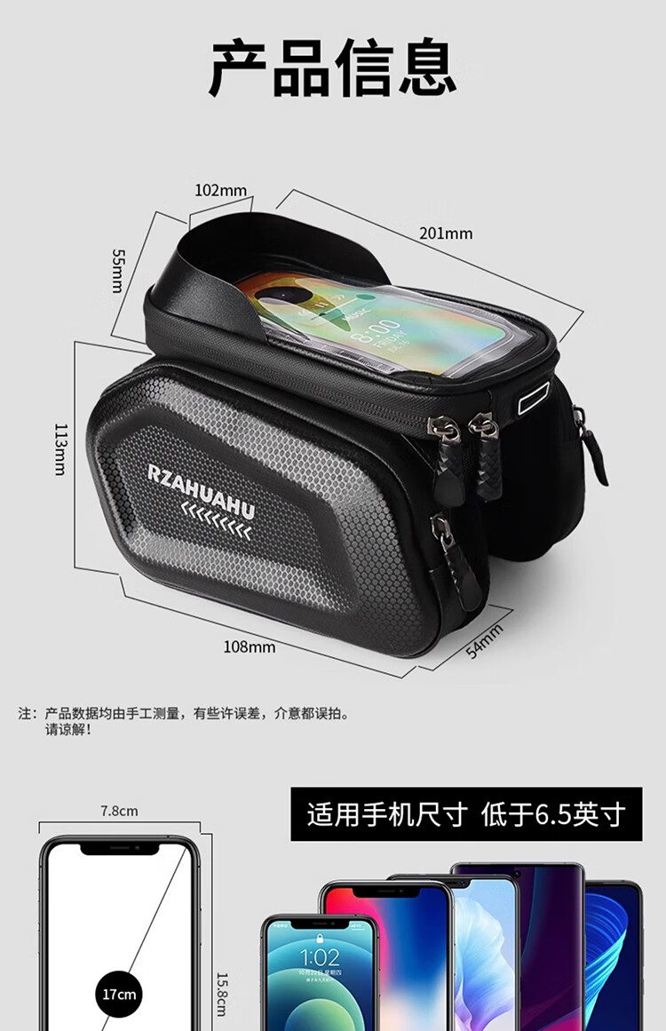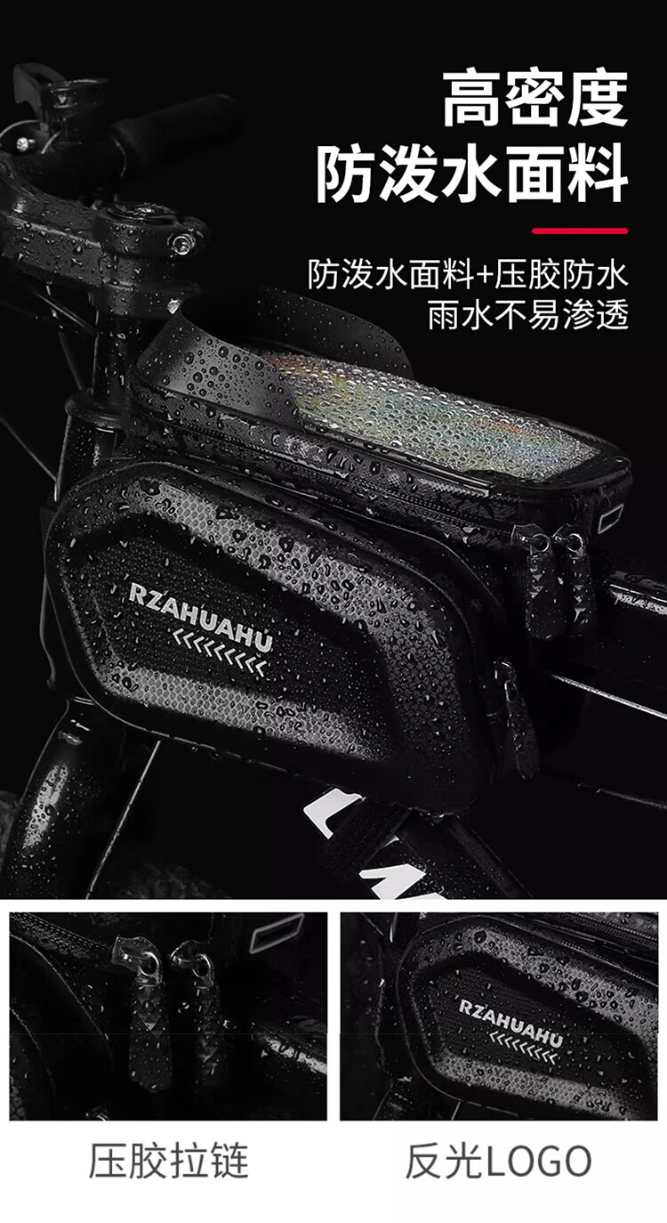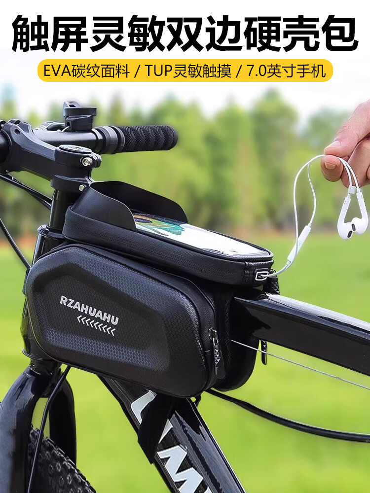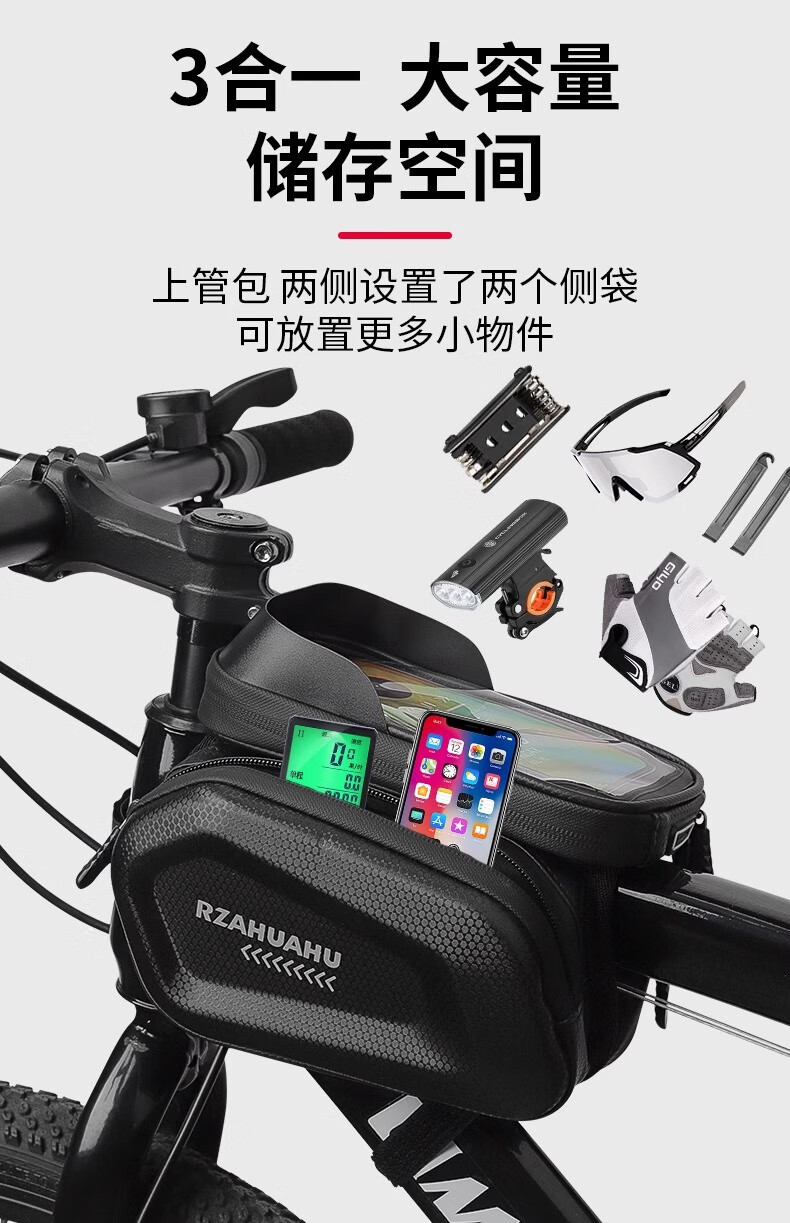 Bicycle hanging bag front beam bag road bike rainproof mobile phone storage bag suitable for Xide Sheng mountain bike three-dimensional touch screen hard shell bag - black 2