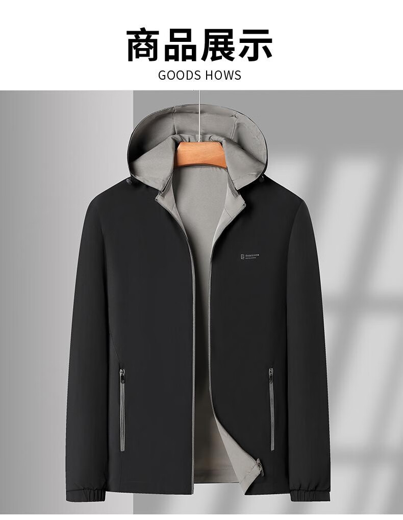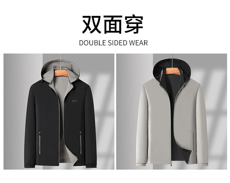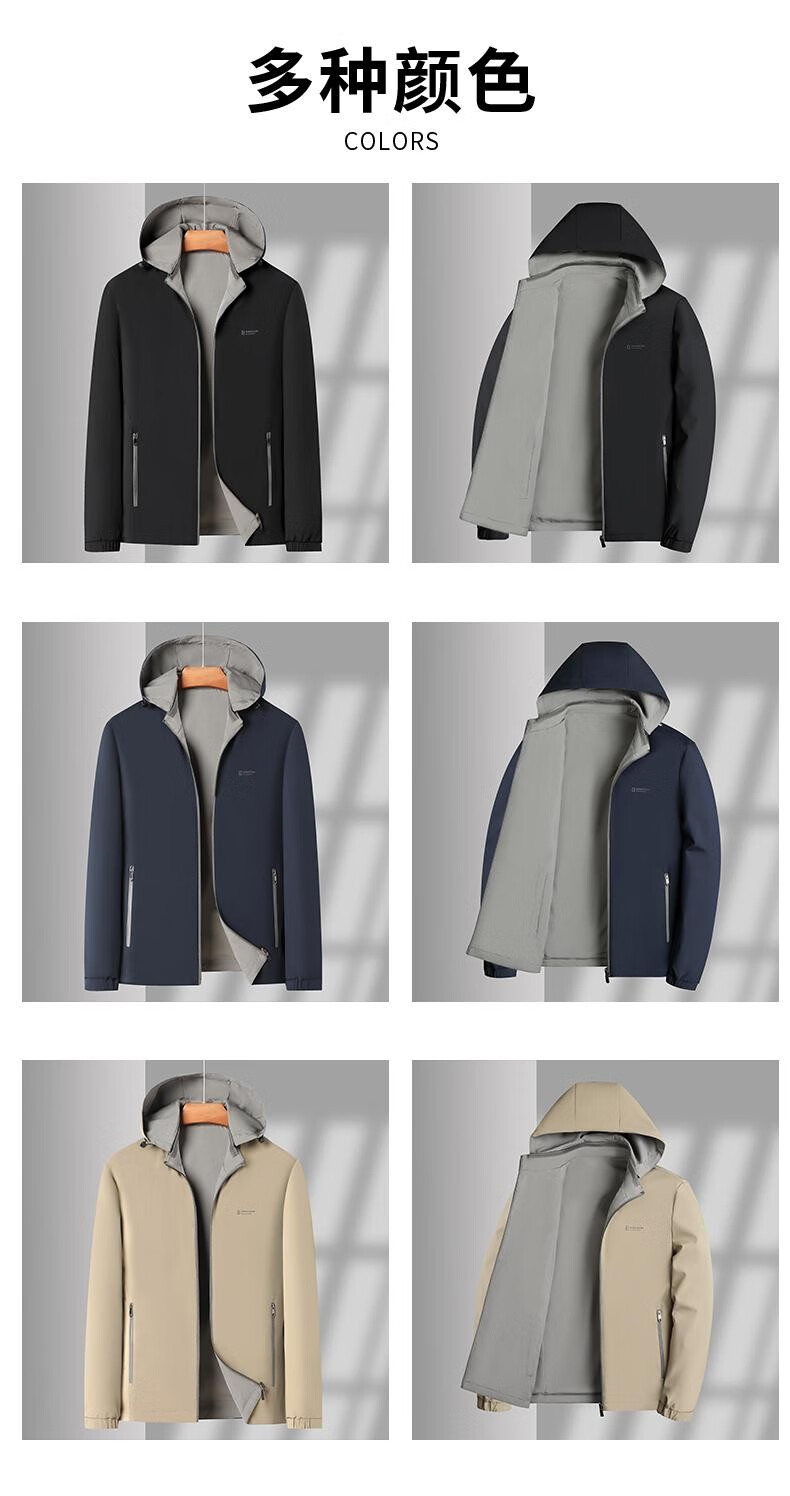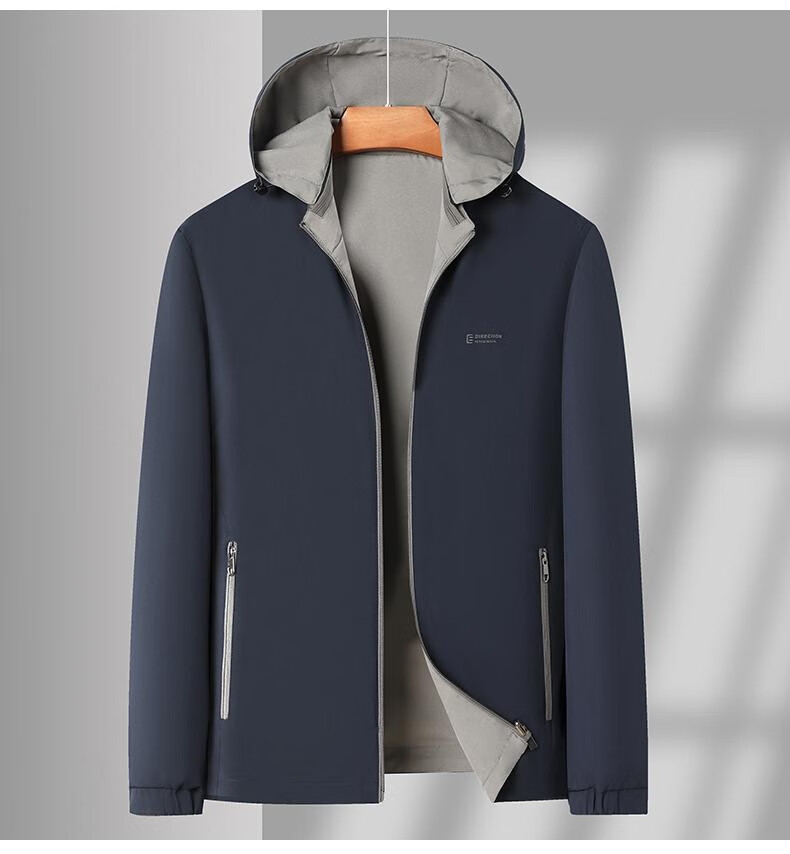 Pierre Cardin Reversible Jacket 2025 Spring and Autumn Men's Hooded Detachable Middle-aged Fashion Loose Men's Jacket Top Dad's Wear Navy XL 180 Recommended 140-155 Jin Jin equals 0.5 kg Wear