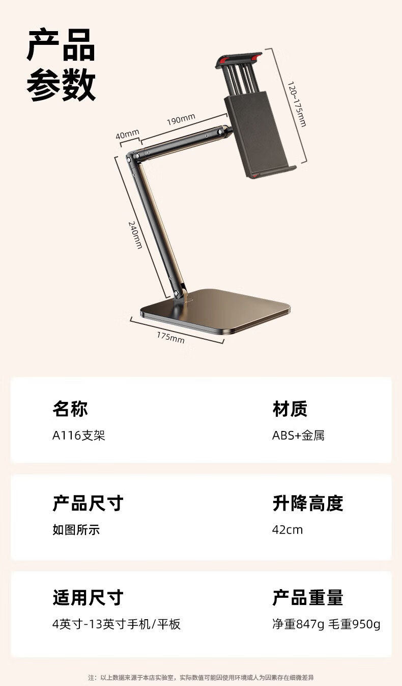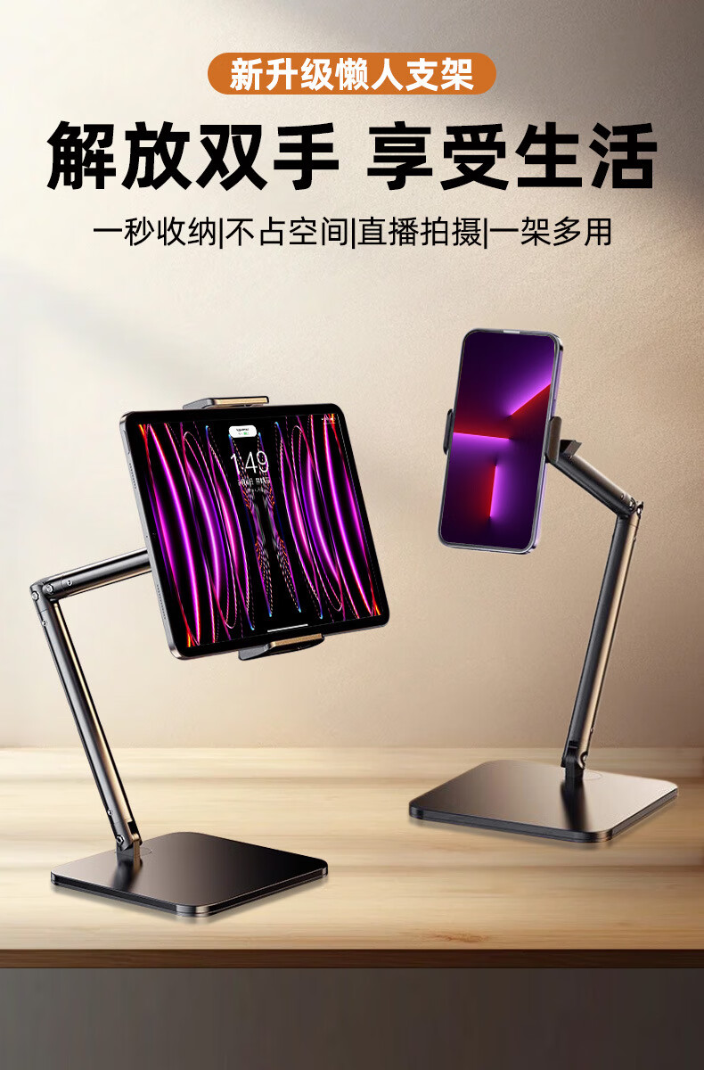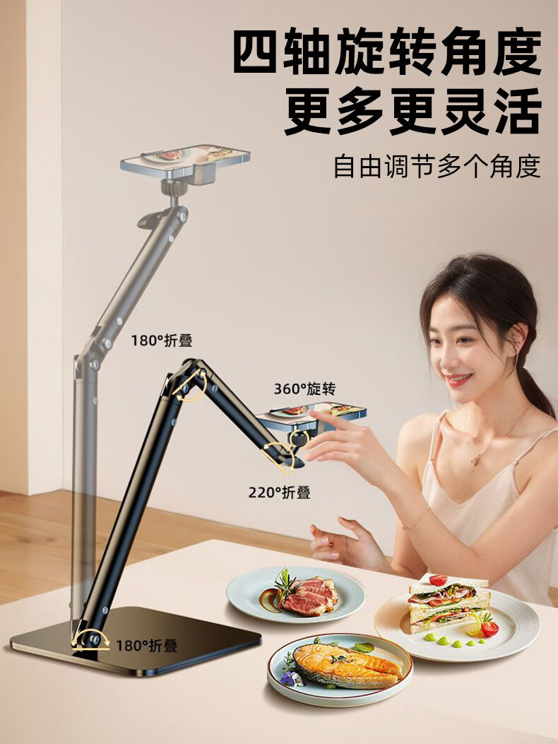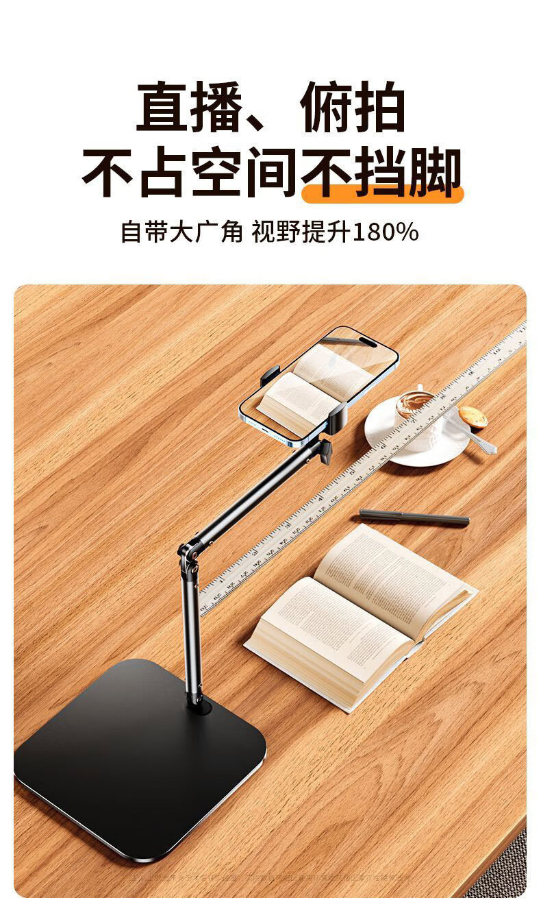 Mobile phone live streaming stand for taking pictures, portable multi-functional universal free-adjustable metal square remake desktop stand A116 cantilever stand (tablet clamp)