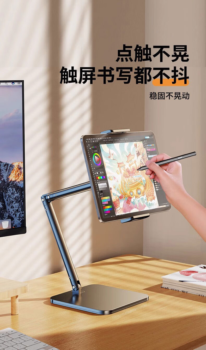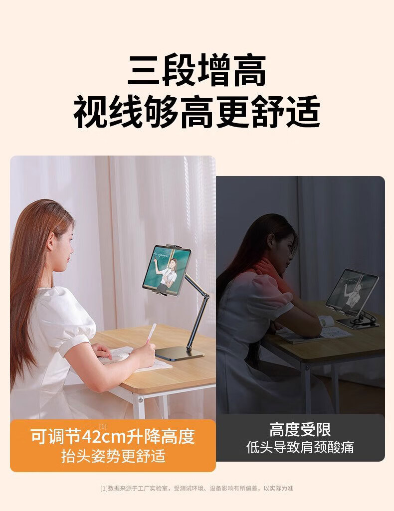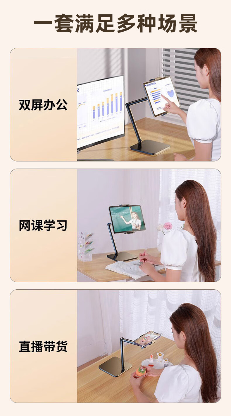 Mobile phone live streaming stand for taking pictures, portable multi-functional universal free-adjustable metal square remake desktop stand A116 cantilever stand (tablet clamp)