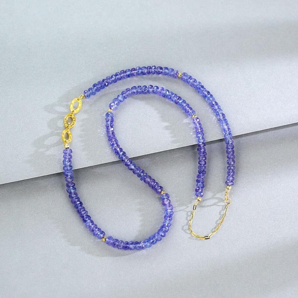 Fat Donglai's same style tanzanite necklace with high-looking ethnic style and white beaded clavicle chain 2025 new temperament free tanzanite necklace