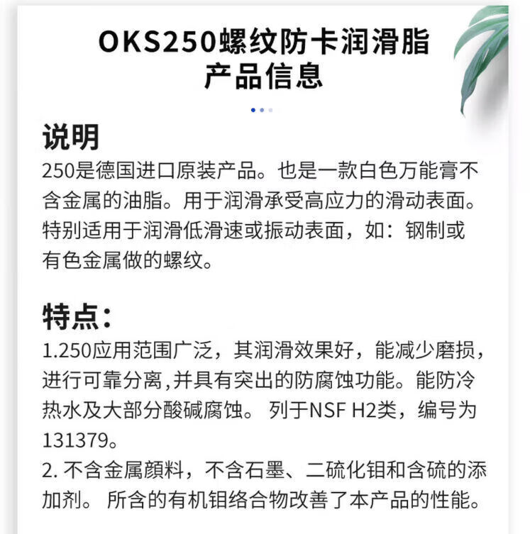 Screw mold ejector oil German original OKS lubrication and high temperature resistant white oil OKS250 (1kg/can) threaded bolt screw anti-jamming
