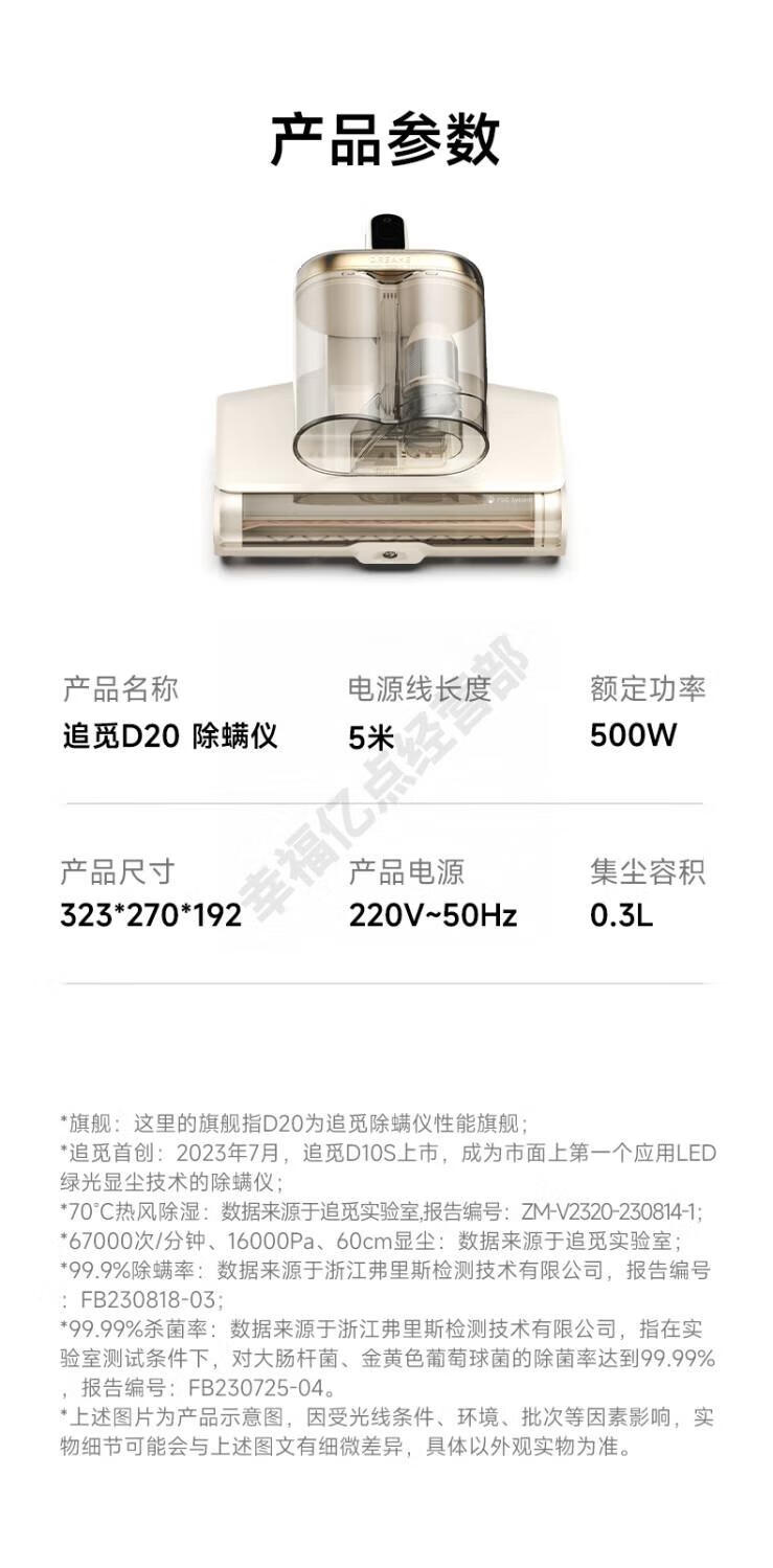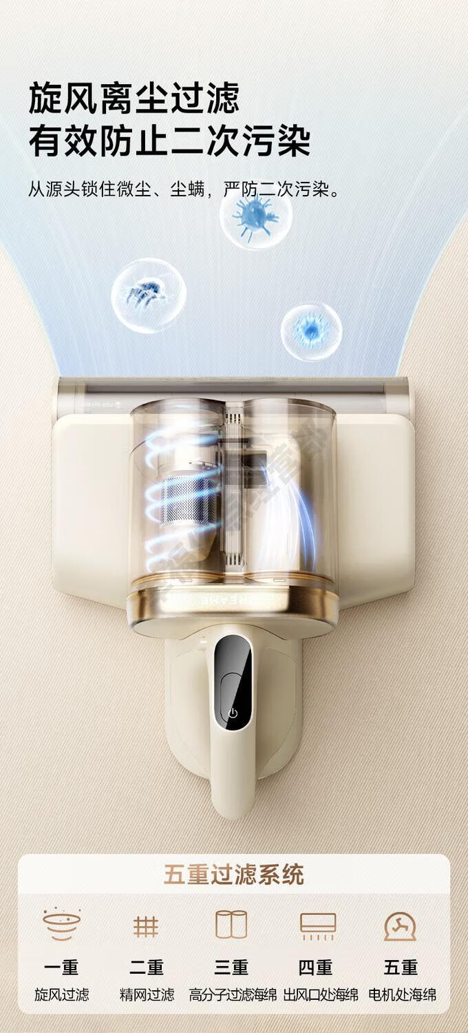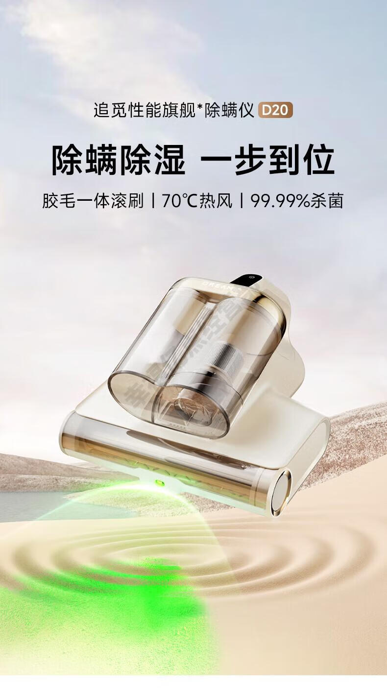 Chai Mi Mite Remover, household large suction bed mite remover, hot air dehumidification, UV D20 D20 green light dust display technology + original filter element*2