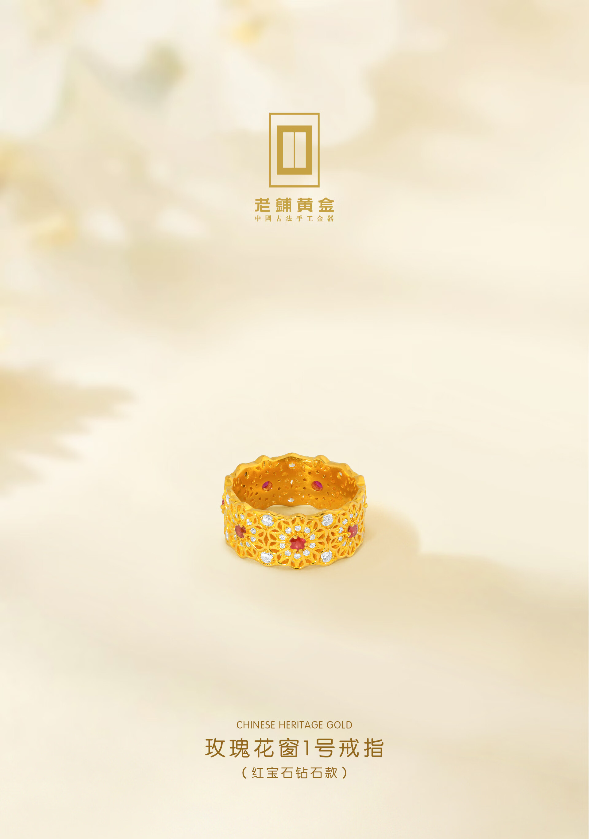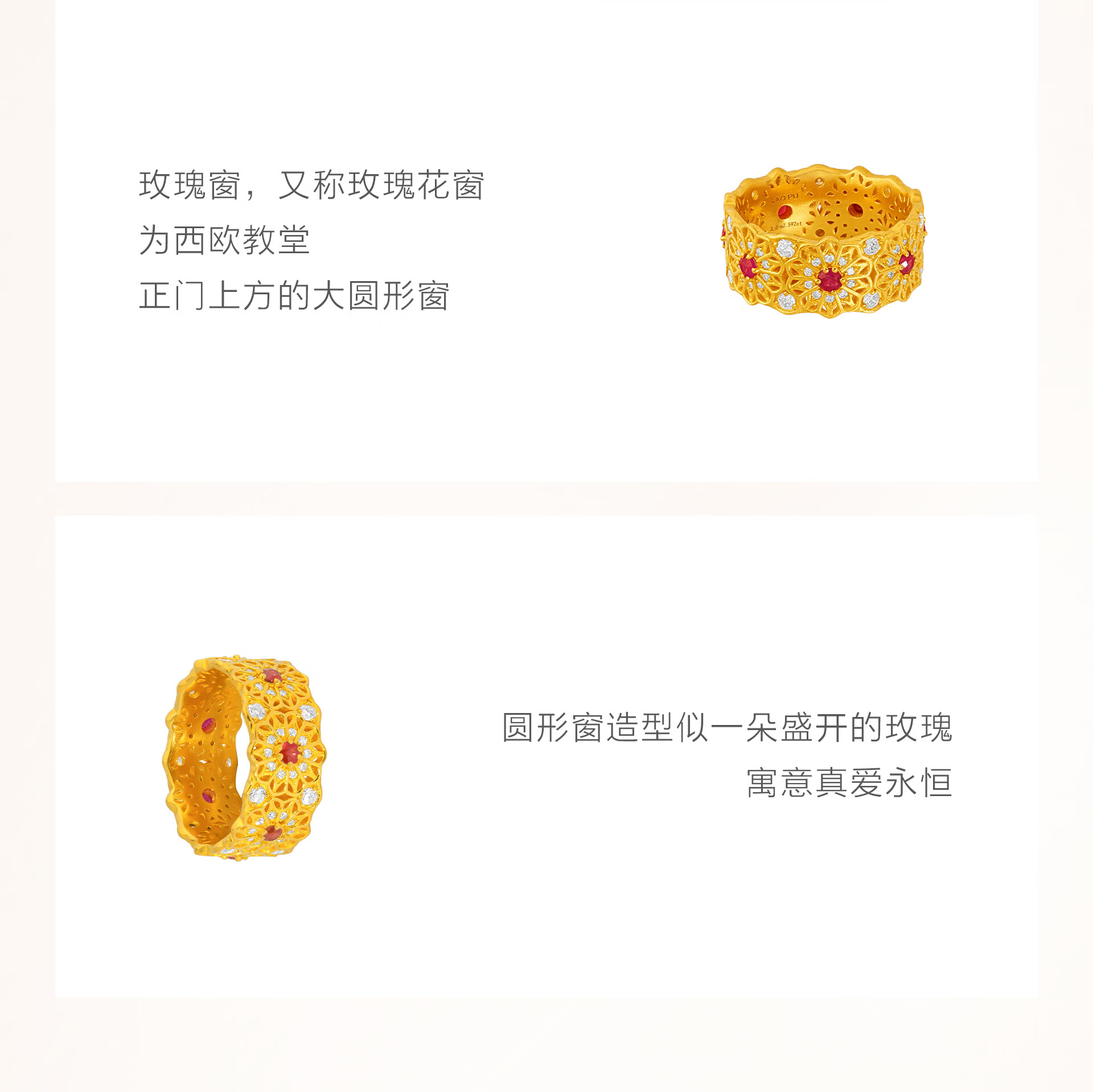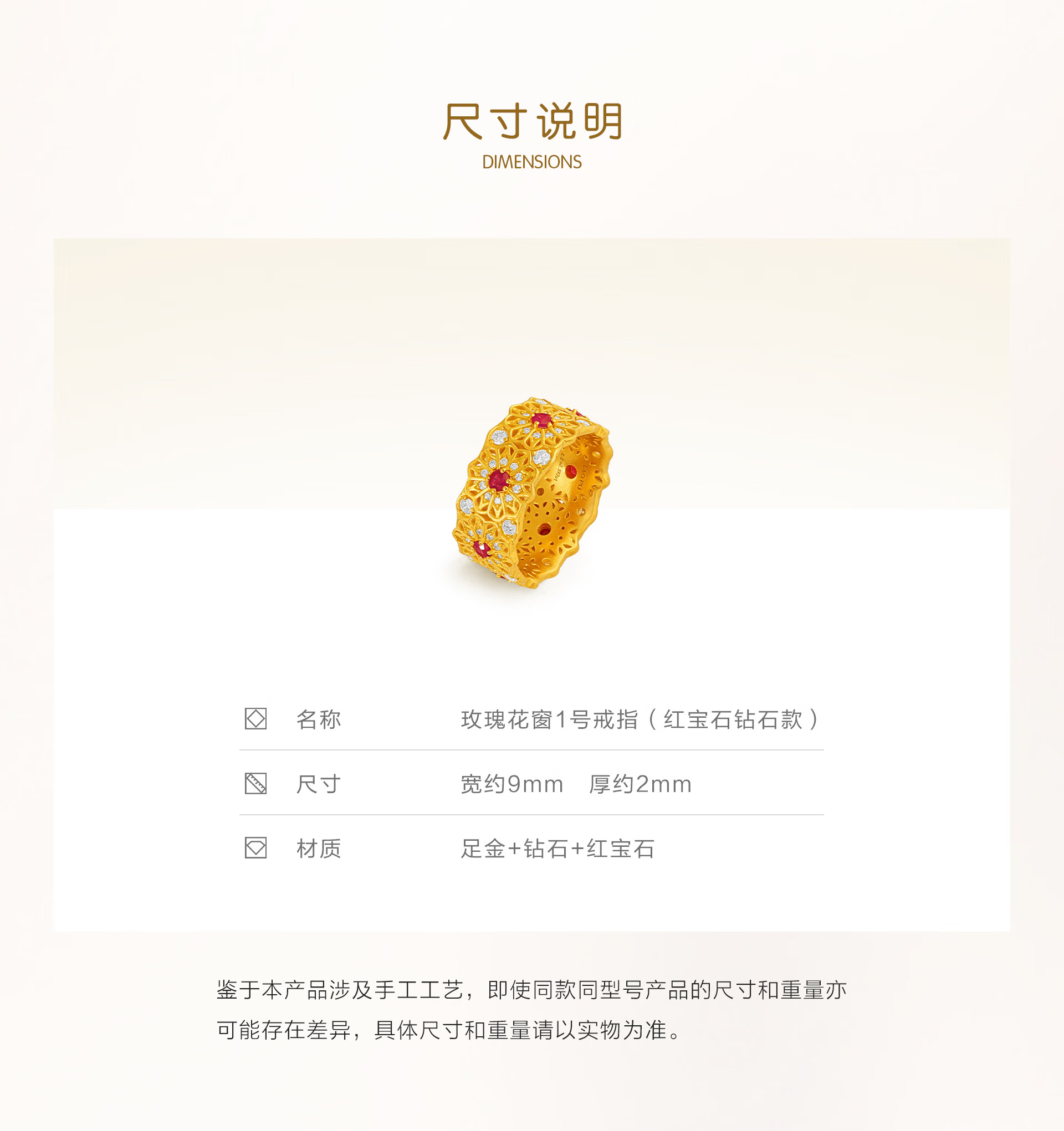 Laopu Gold Ancient Method Handmade Pure Gold Ring Rose Window (No. 1) Diamond Ring Gem Style No. 15 Gold Weight Approximately 9.6g