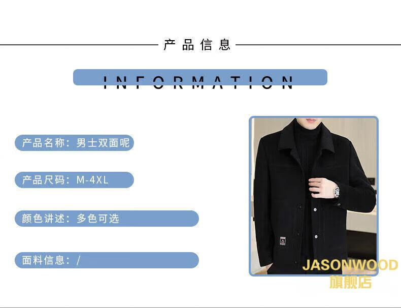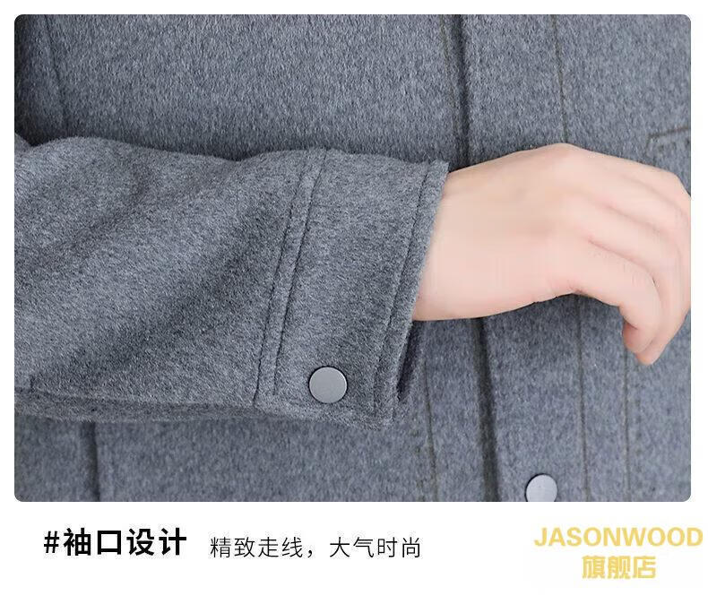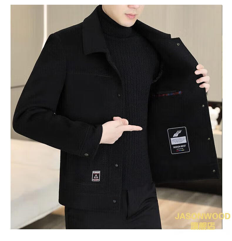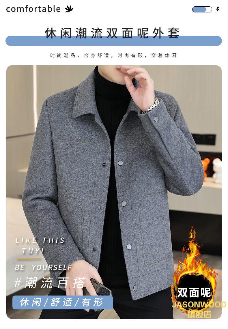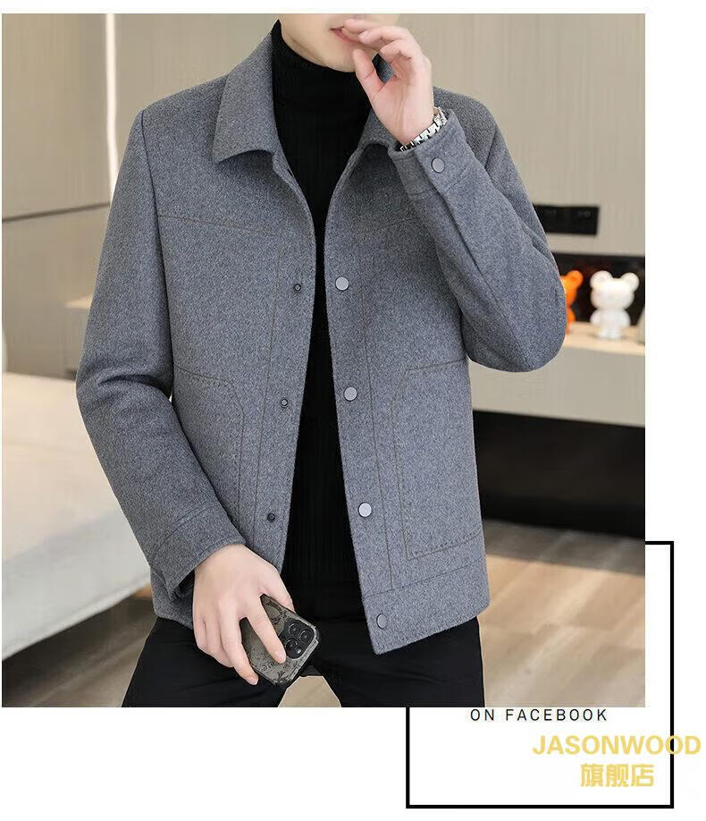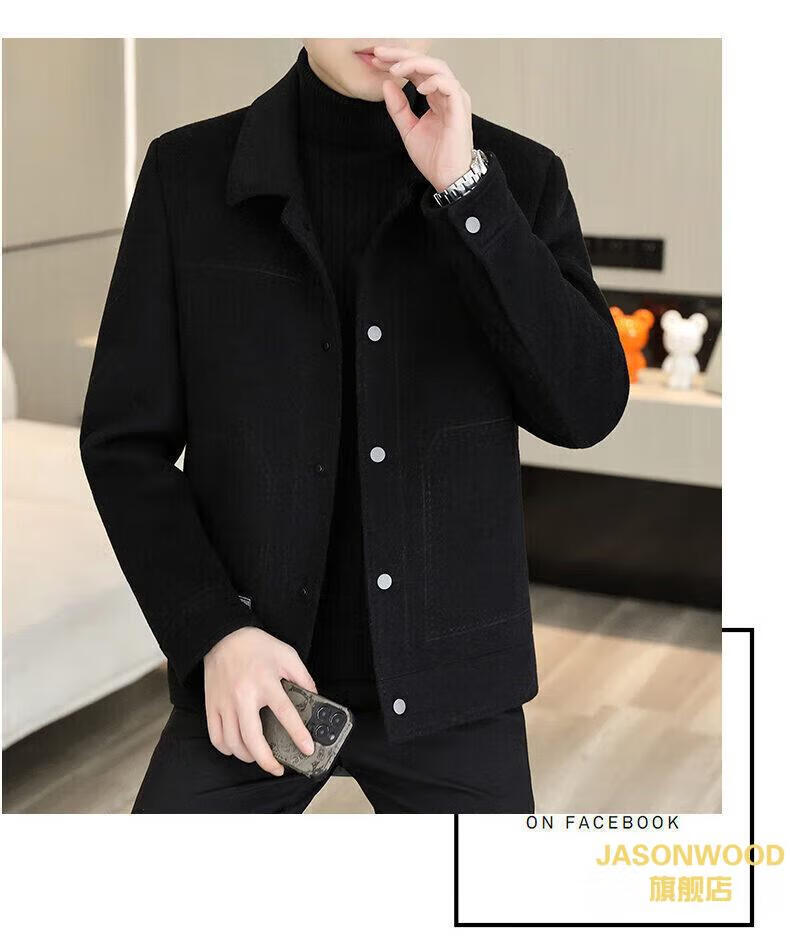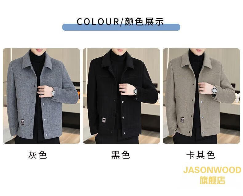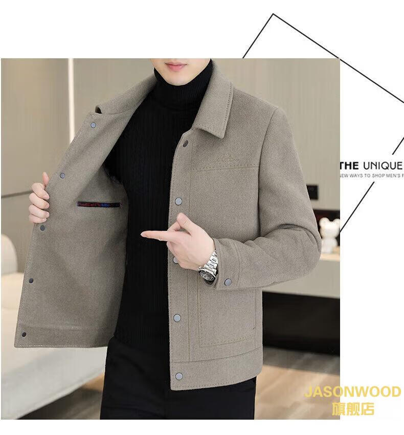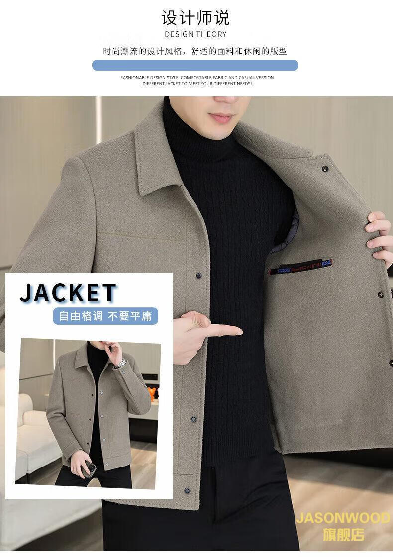 JASONWOOD official authentic high-end brand luxury jacket men's 2025 autumn and winter new middle-aged woolen short coat high-end khaki ready in stock autumn and winter XL