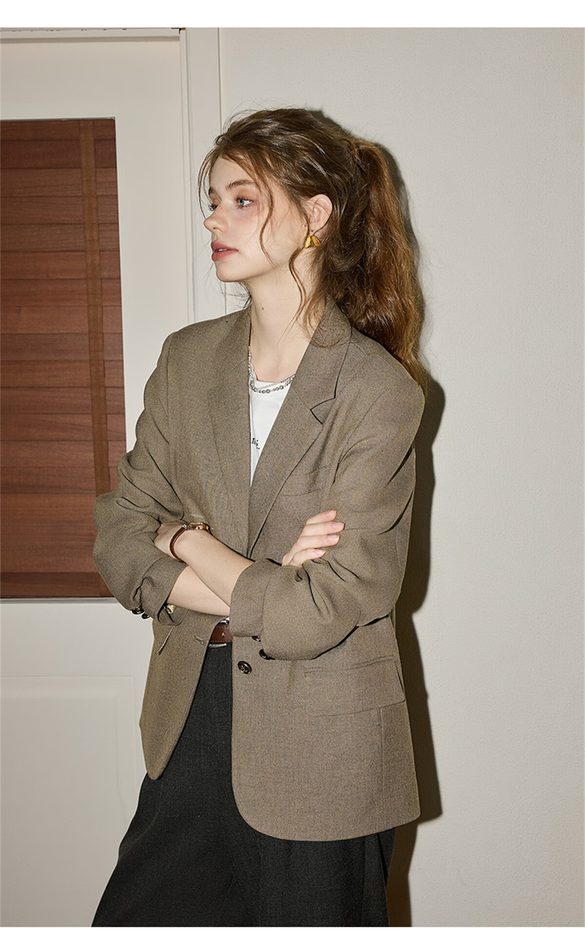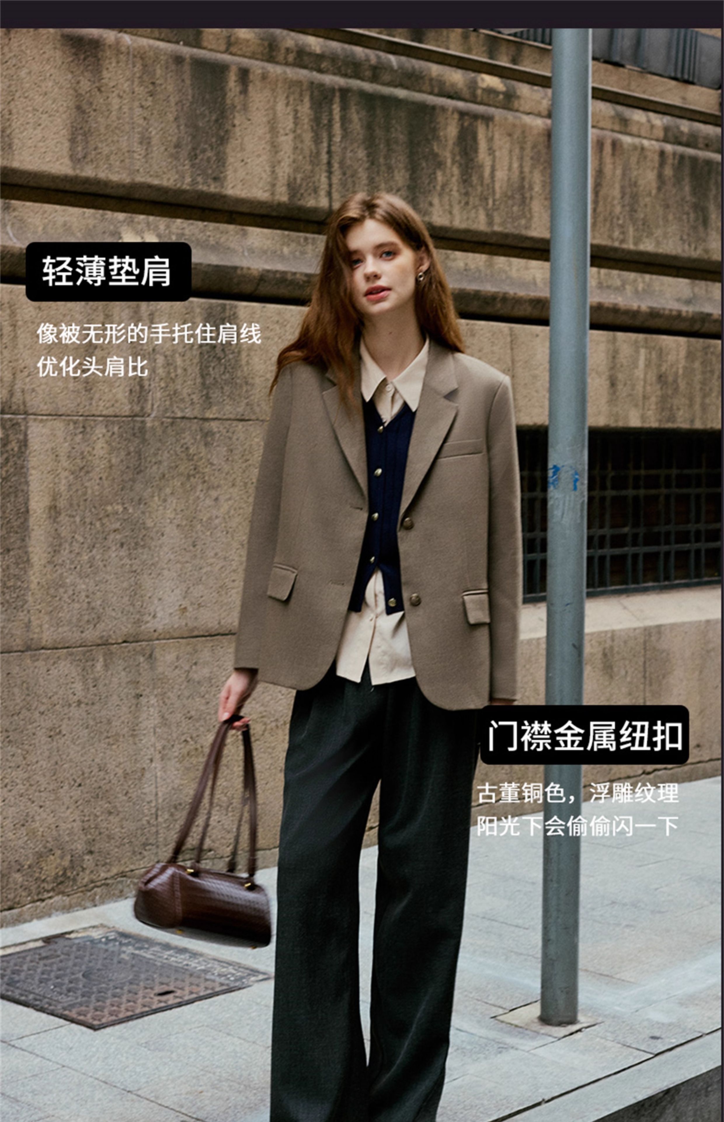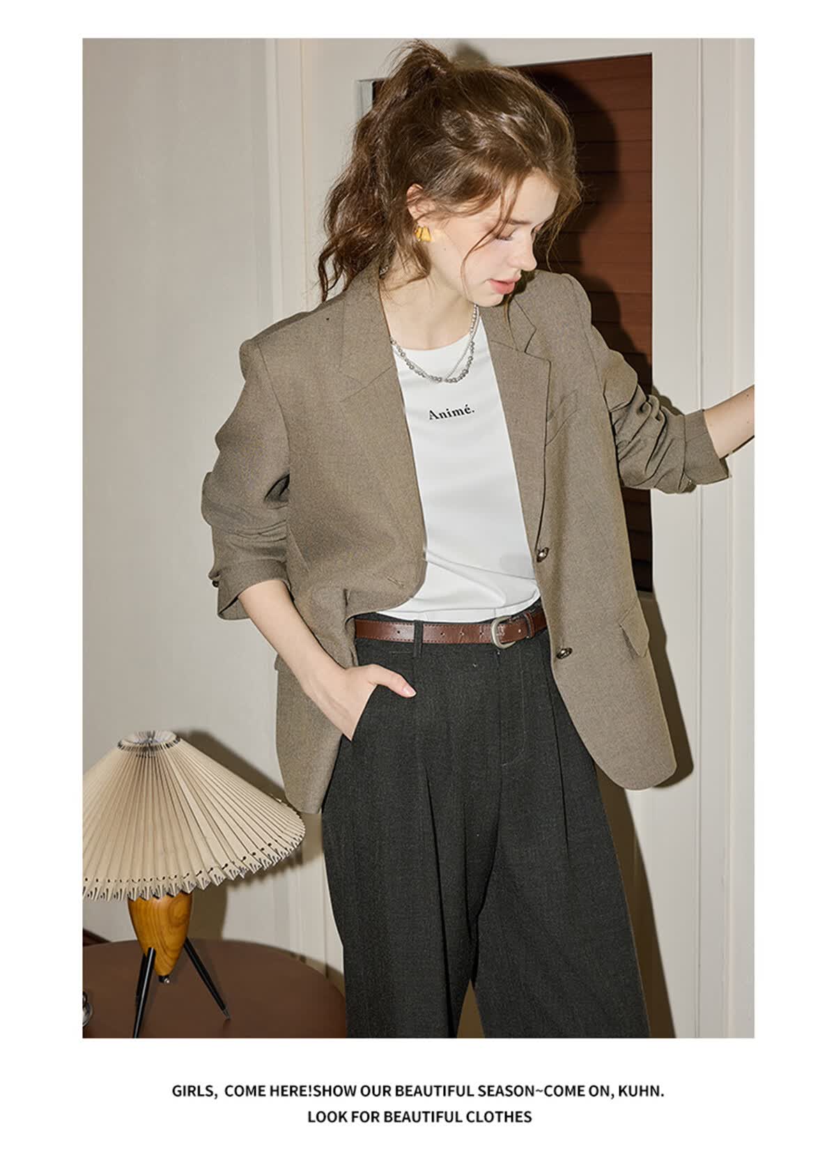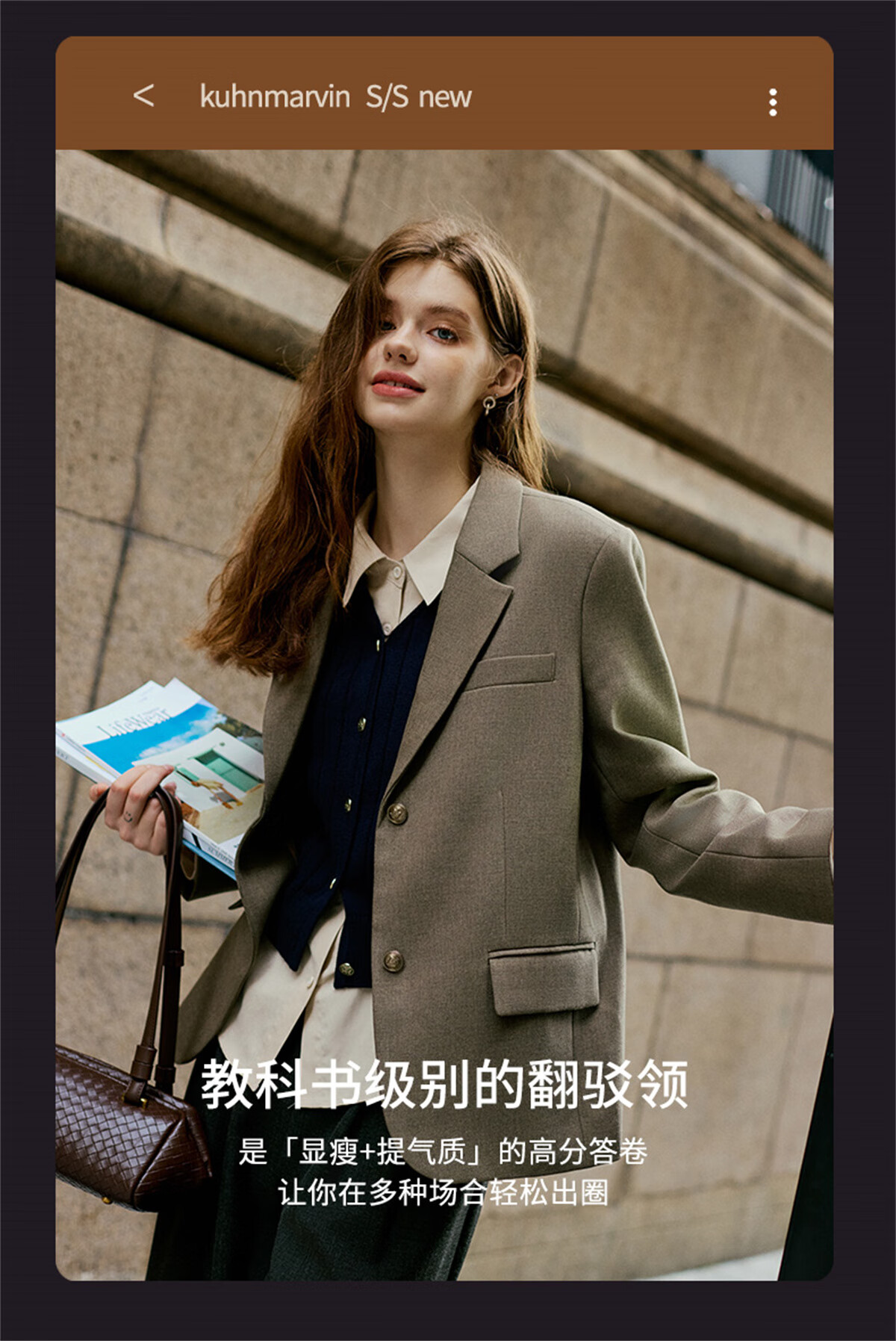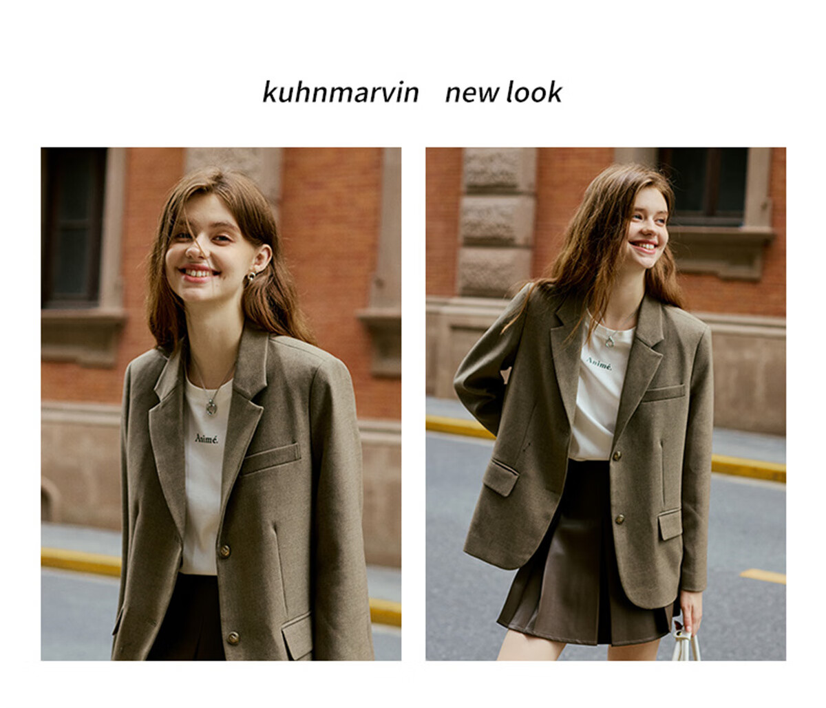 KUHNMARVIN American retro tan suit jacket for women 2025 autumn new shoulder pad silhouette commuter suit K38257 tan S