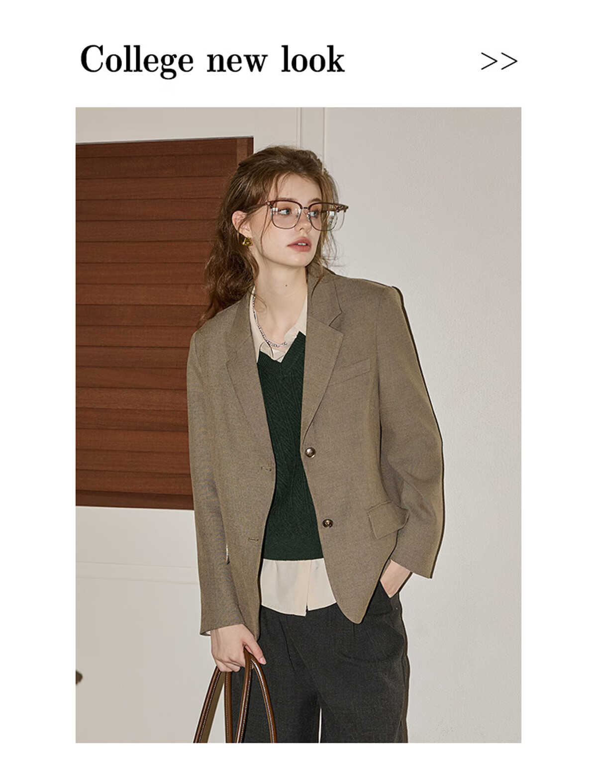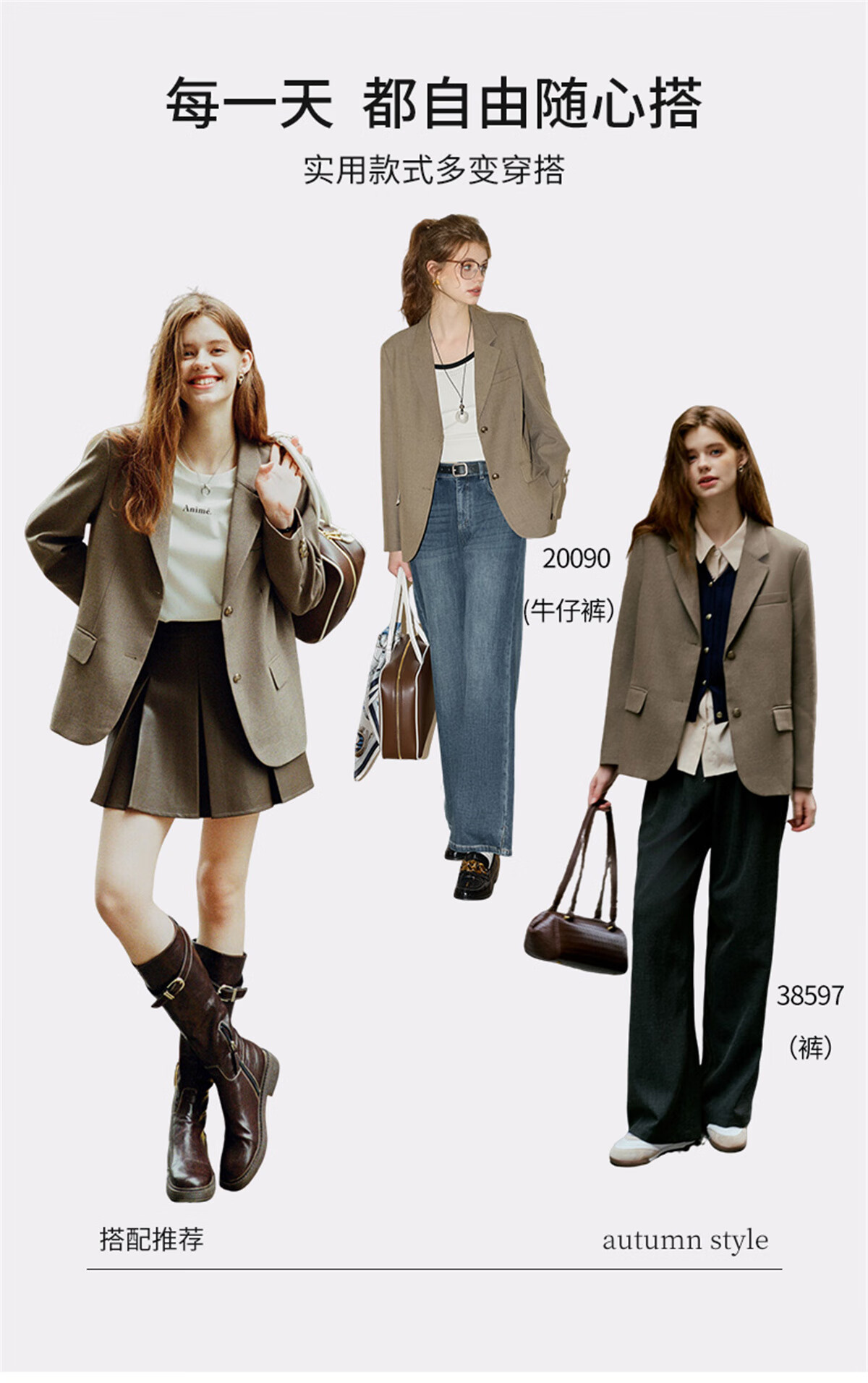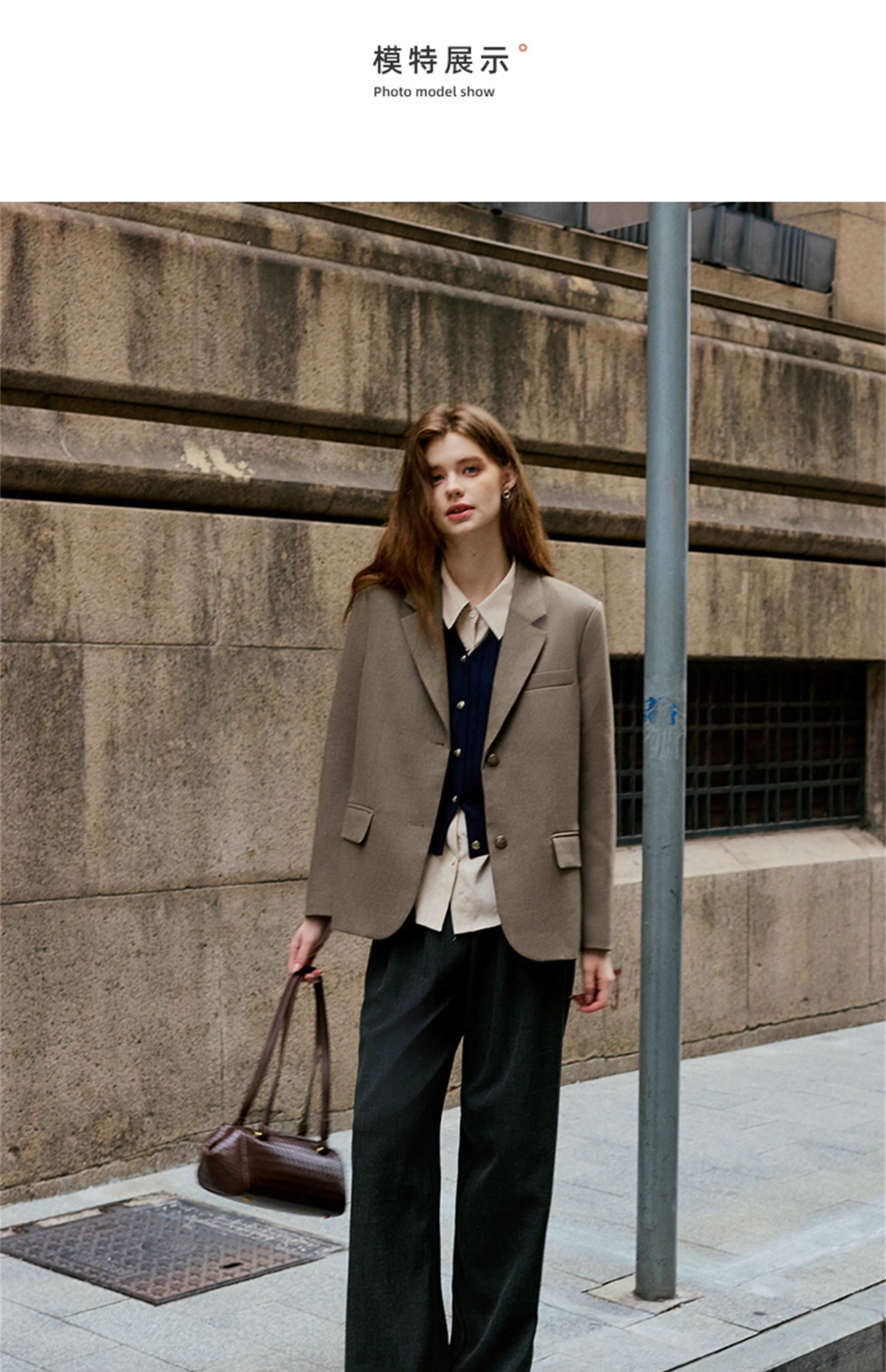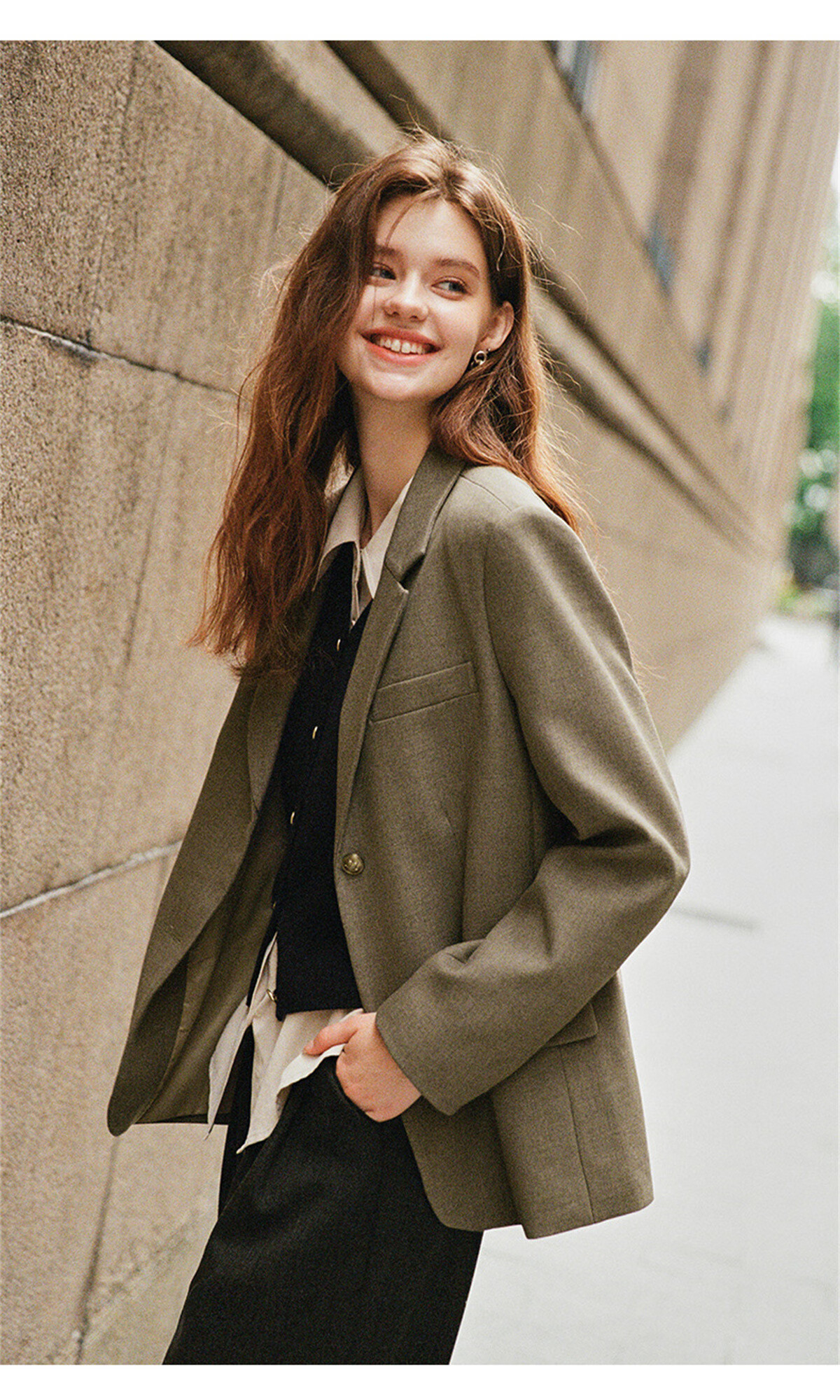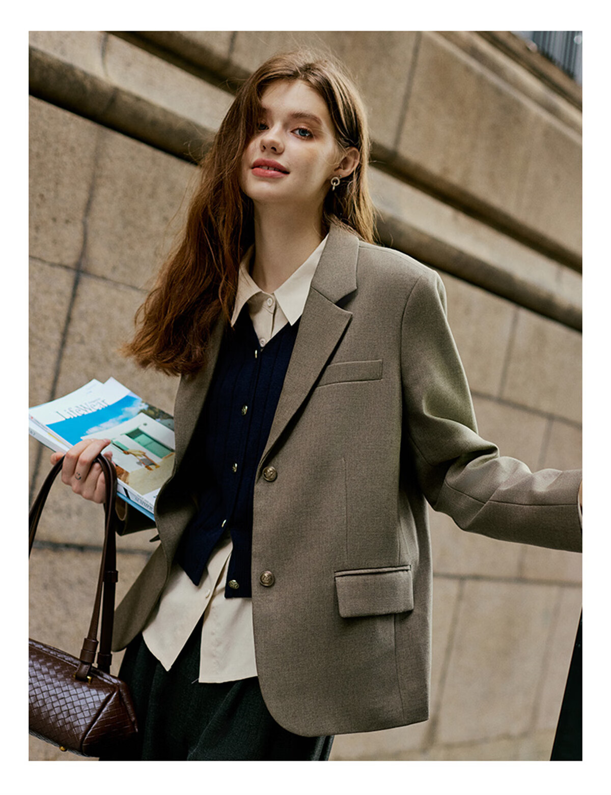 KUHNMARVIN American retro tan suit jacket for women 2025 autumn new shoulder pad silhouette commuter suit K38257 tan S