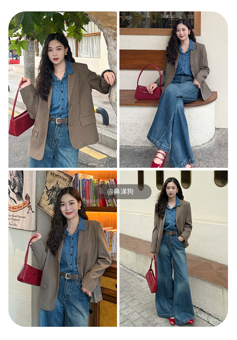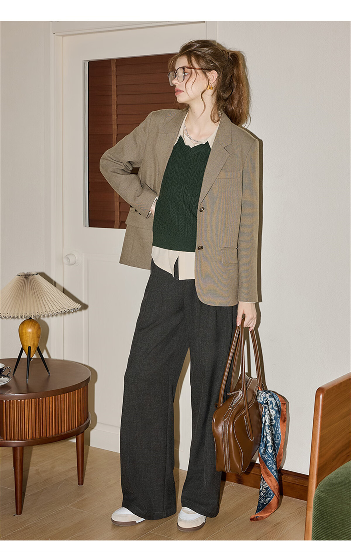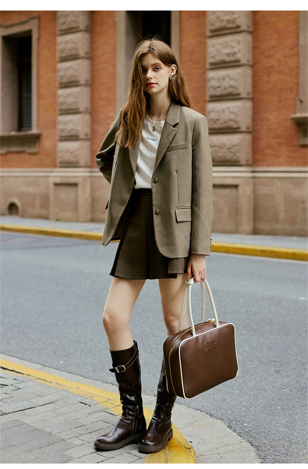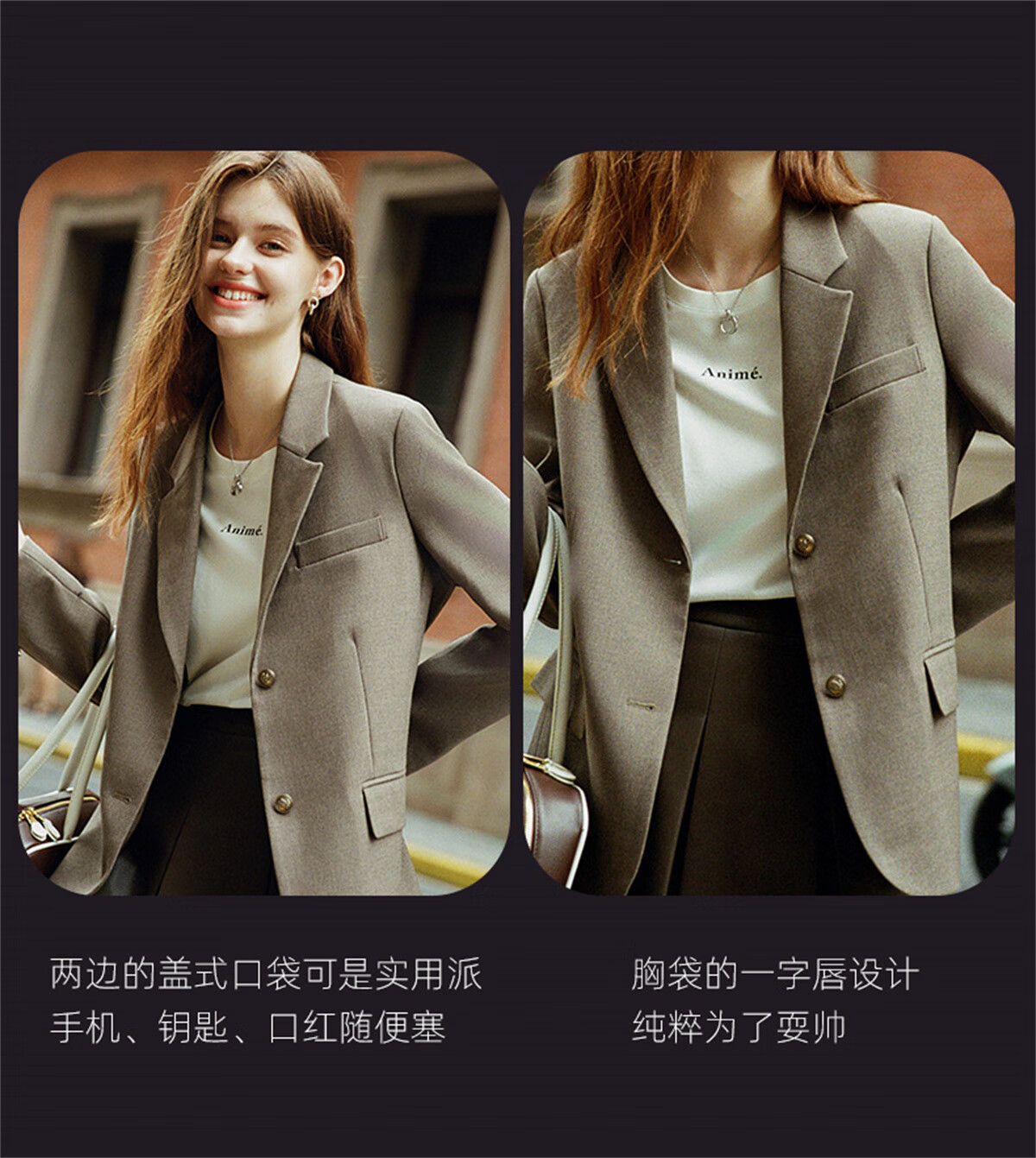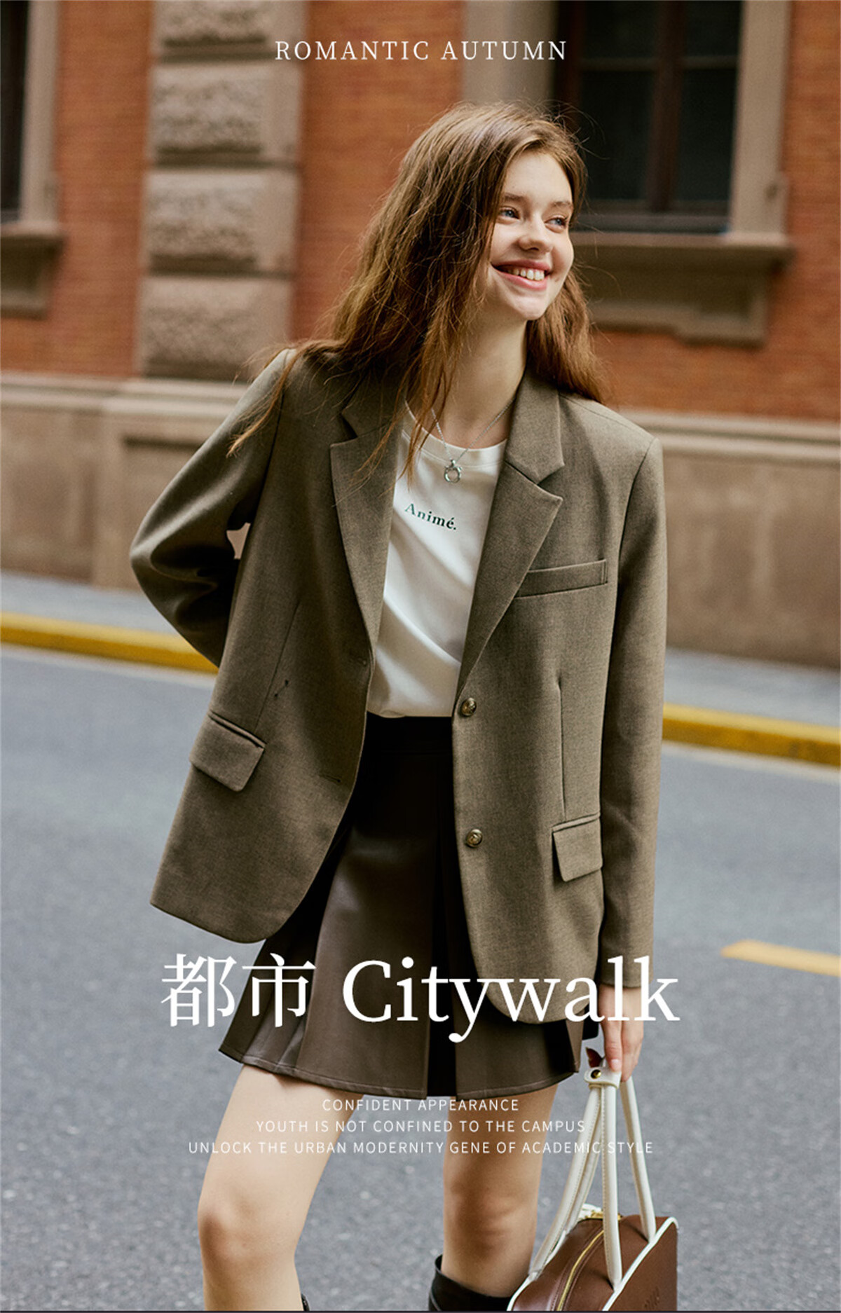 KUHNMARVIN American retro tan suit jacket for women 2025 autumn new shoulder pad silhouette commuter suit K38257 tan S