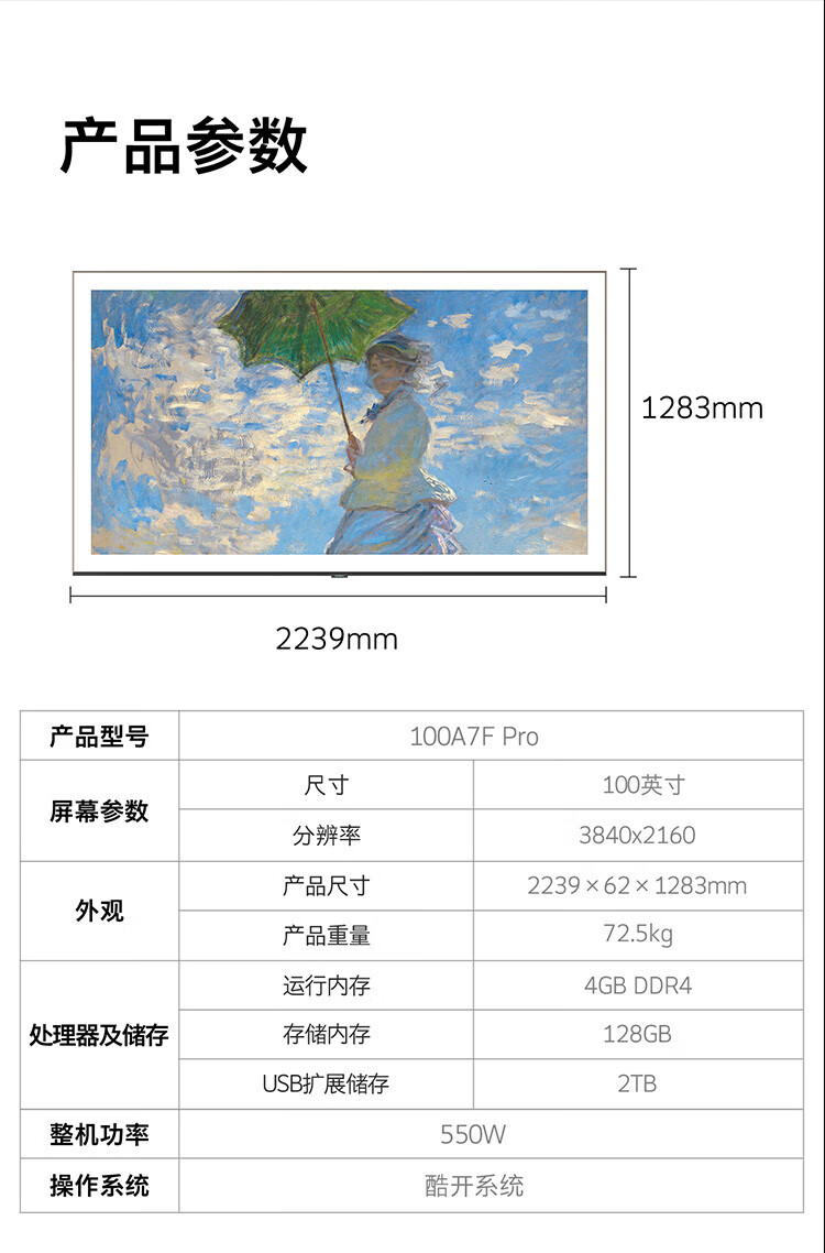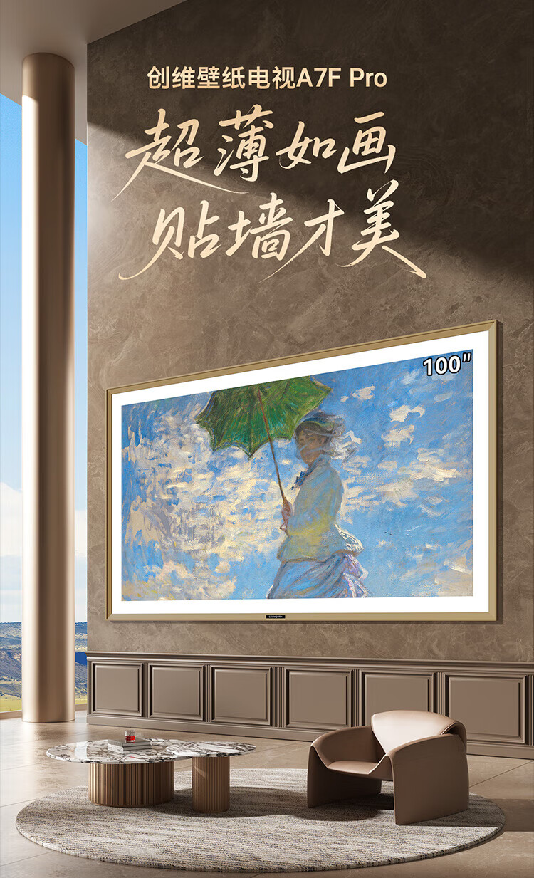 Skyworth Wallpaper TV 100A7F Pro 100-inch ultra-thin mural art mini led smart 4K LCD flat-panel TV 100-inch A7EPro upgraded model 100-inch National subsidy discount of 2000 new product official standard configuration first-class energy efficiency
