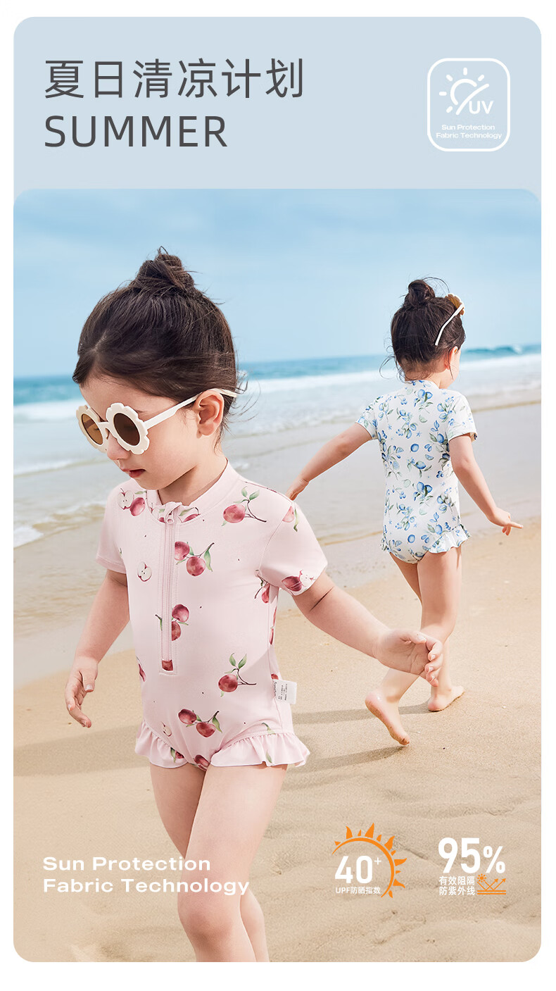JELLYBABY new quick-drying sunscreen girls' swimsuit summer one-piece children's beach suit baby swimsuit pink 80 cm