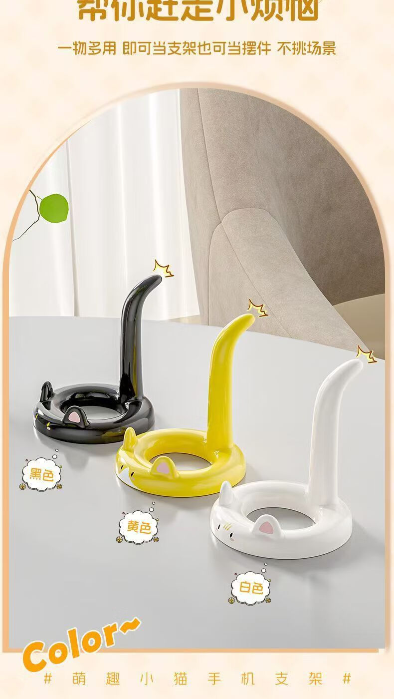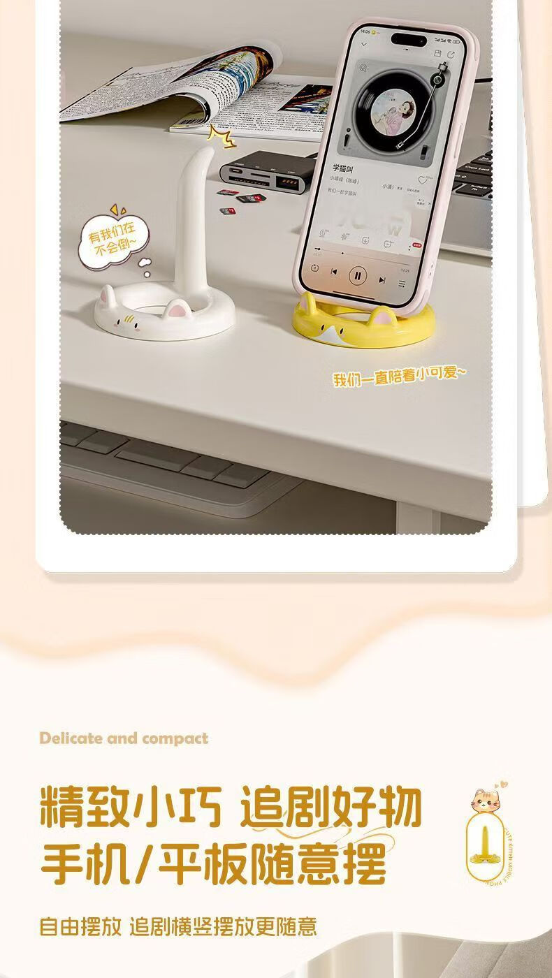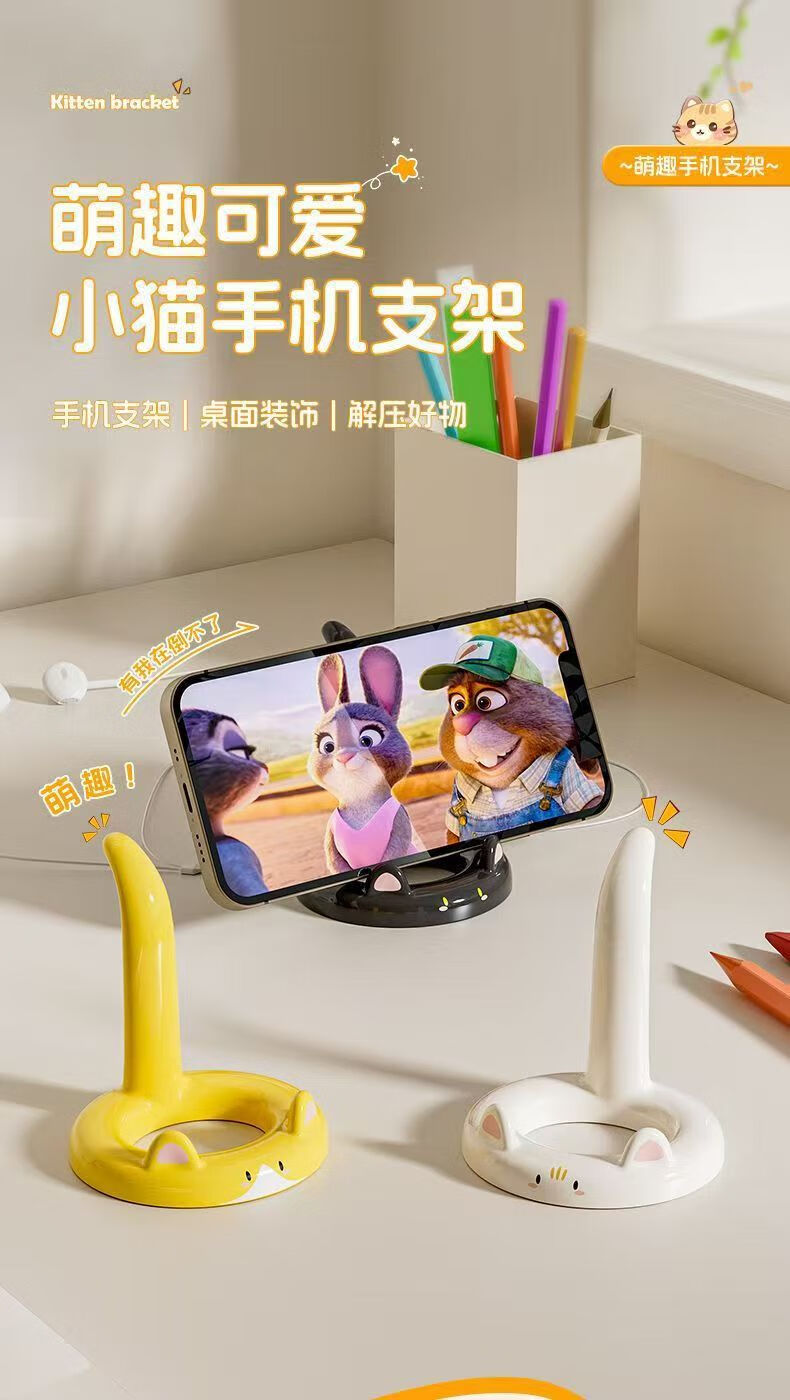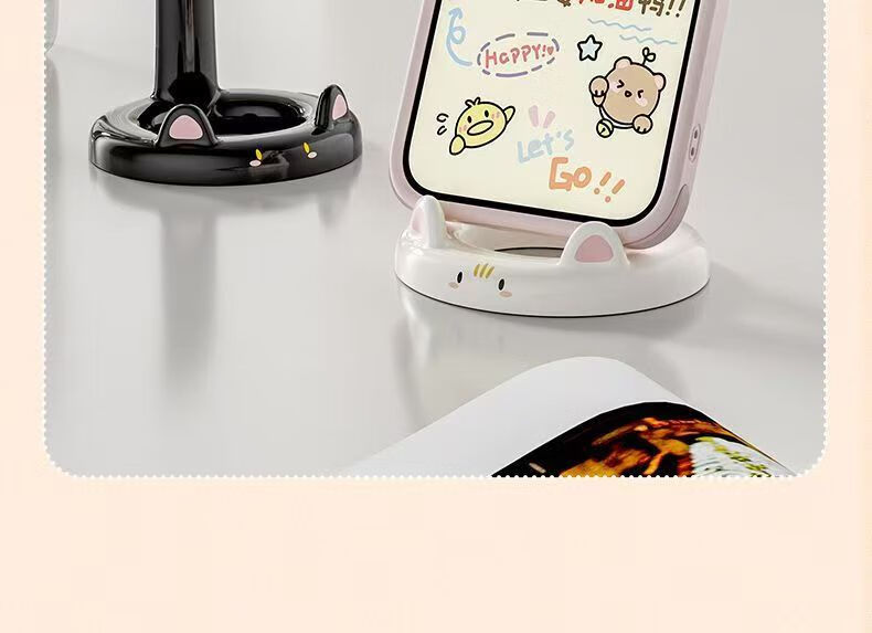 Creative kitten mobile phone holder, cute kitten mobile phone holder, plastic cartoon cute stand, artifact for eating and watching dramas, can be placed horizontally and vertically, cute kitten mobile phone holder, random color