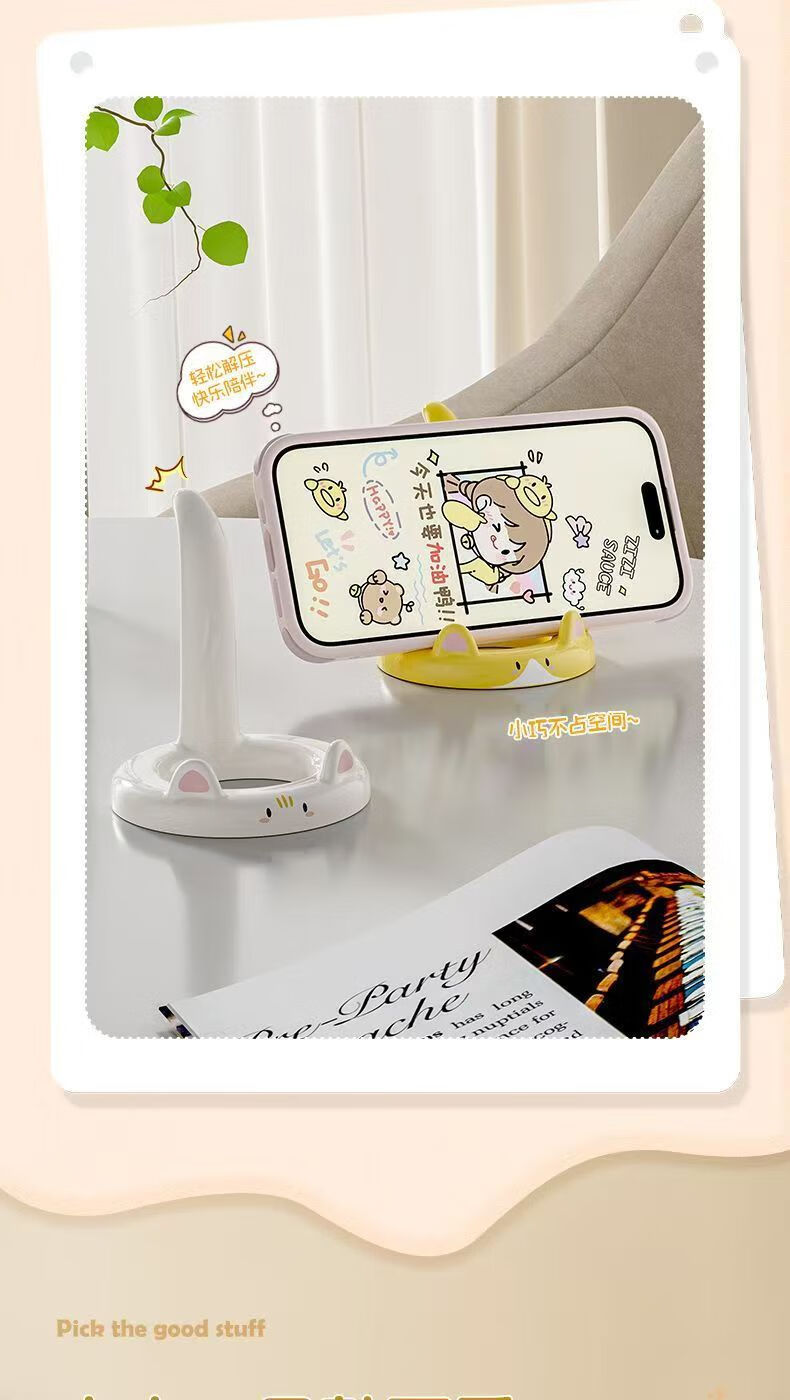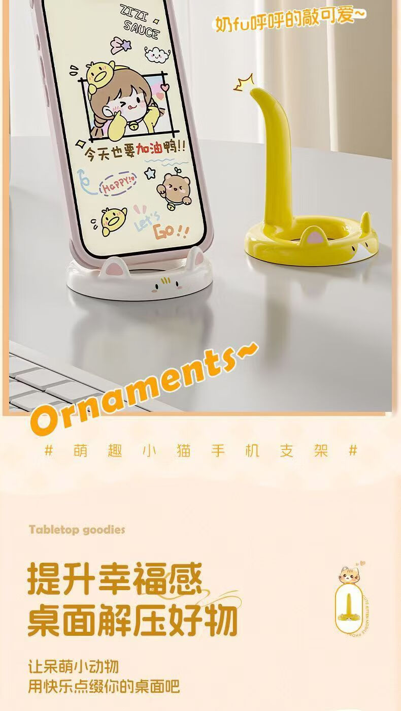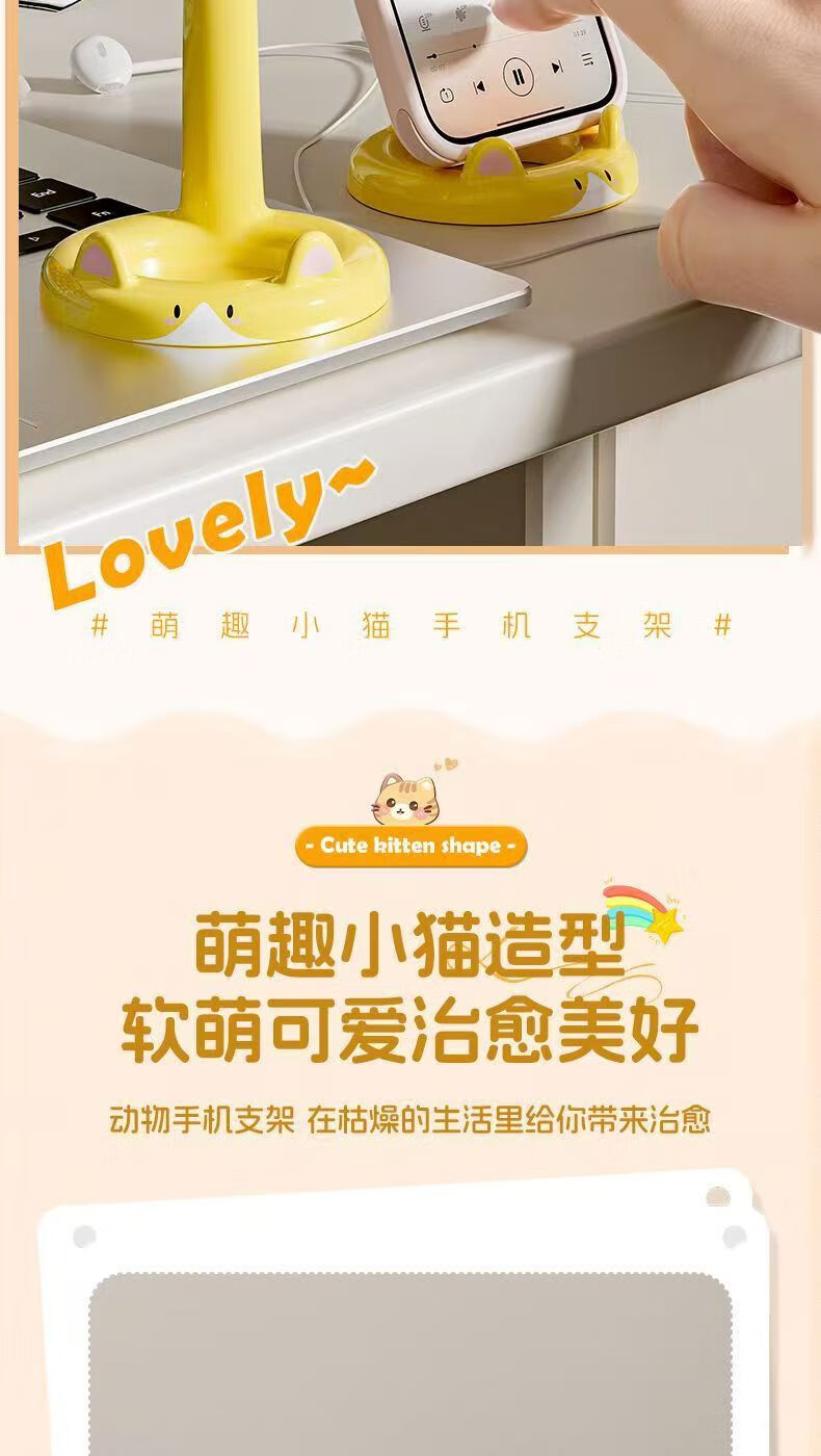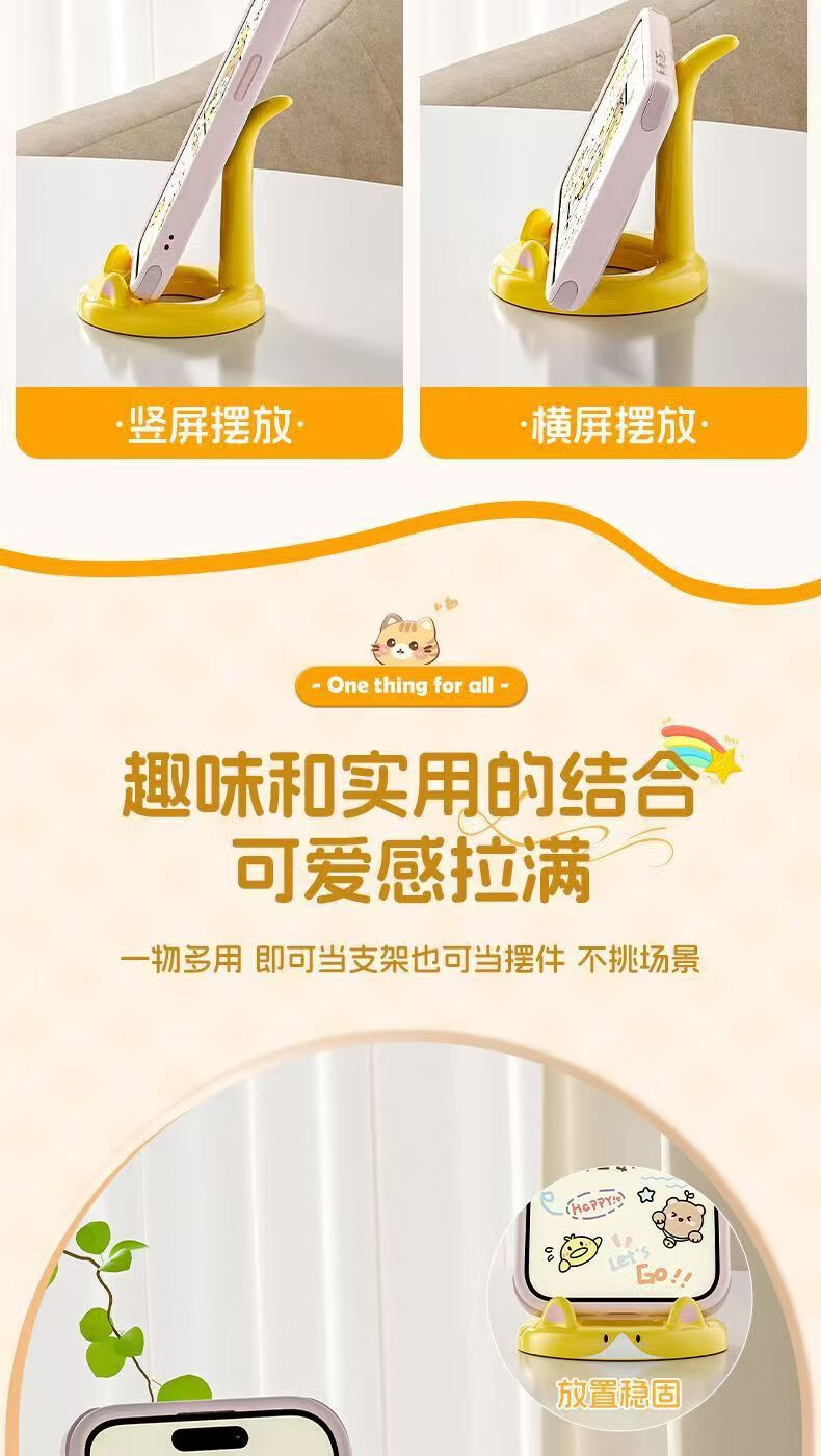 Creative kitten mobile phone holder, cute kitten mobile phone holder, plastic cartoon cute stand, artifact for eating and watching dramas, can be placed horizontally and vertically, cute kitten mobile phone holder, random color