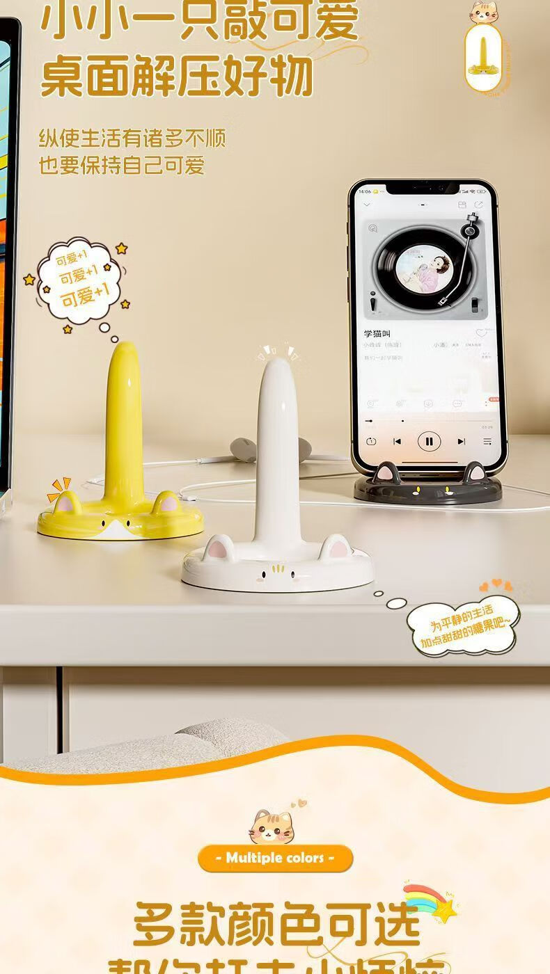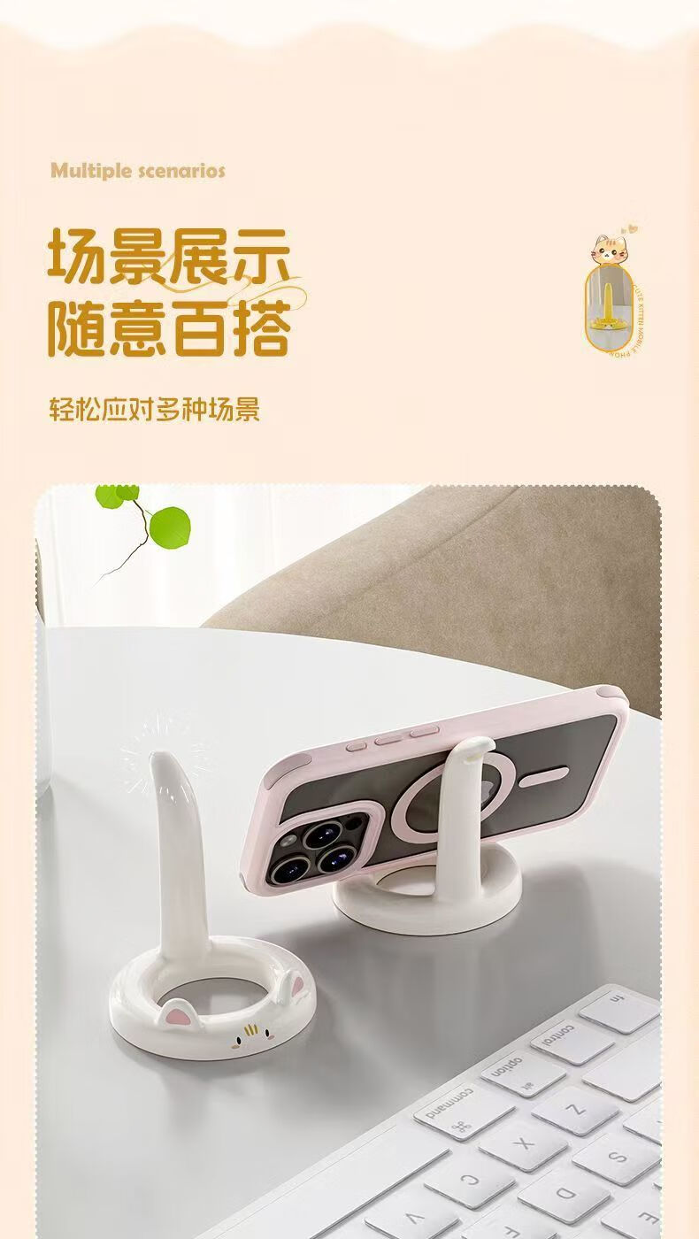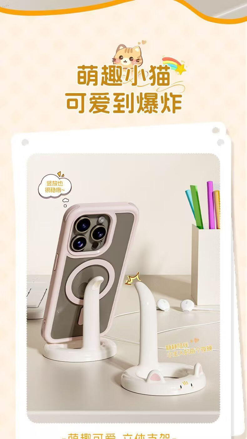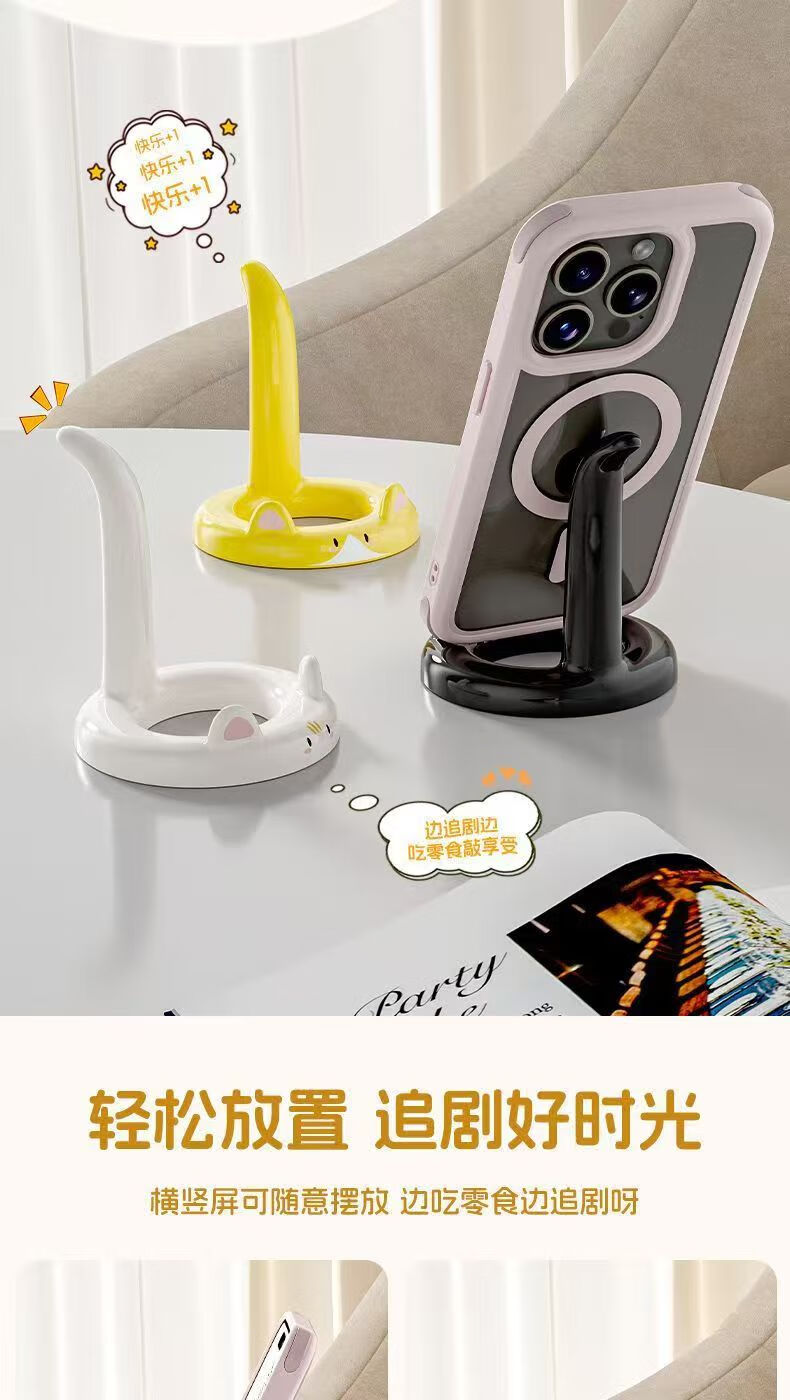 Creative kitten mobile phone holder, cute kitten mobile phone holder, plastic cartoon cute stand, artifact for eating and watching dramas, can be placed horizontally and vertically, cute kitten mobile phone holder, random color