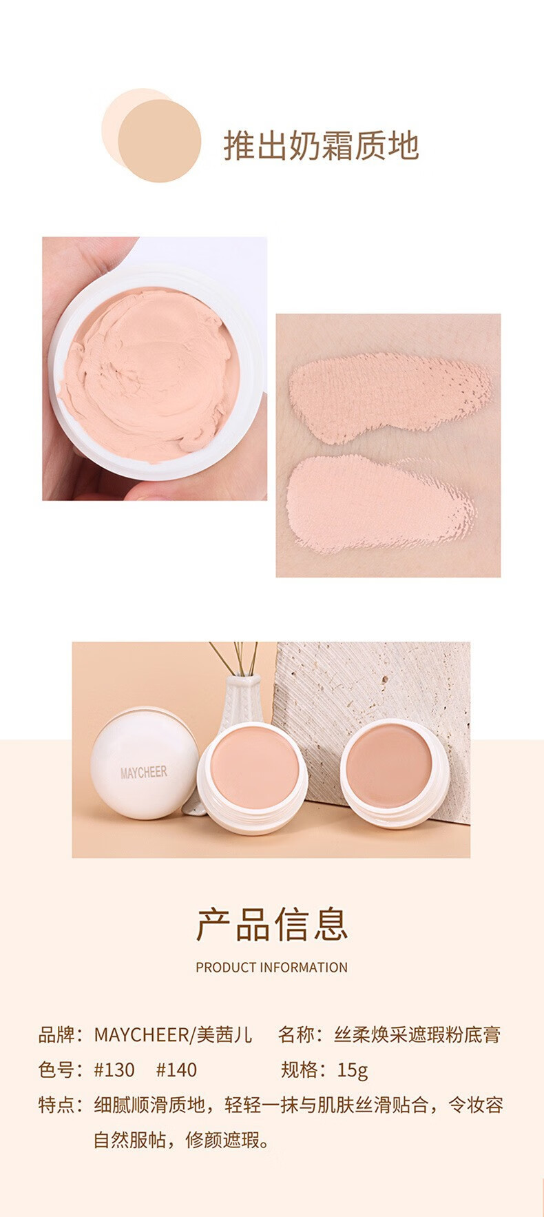 Concealer, spots, acne marks, moist foundation, waterproof, dark circles concealer foundation, beauty makeup 140# dark skin tone