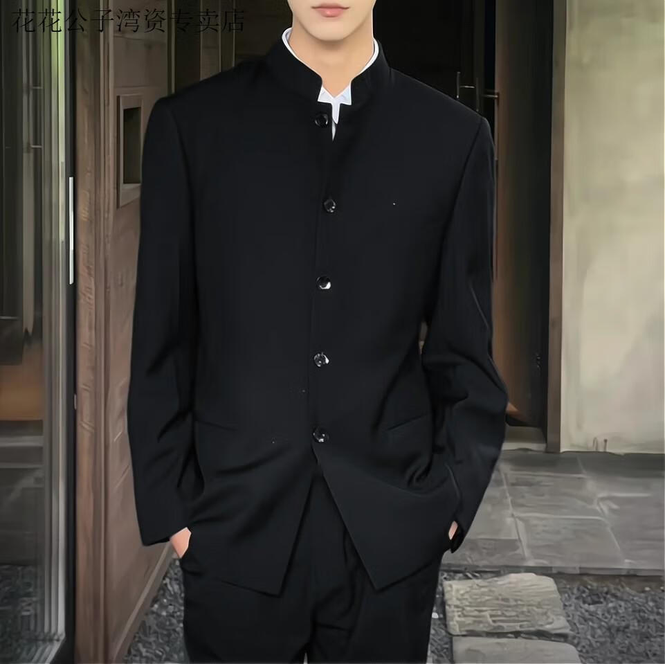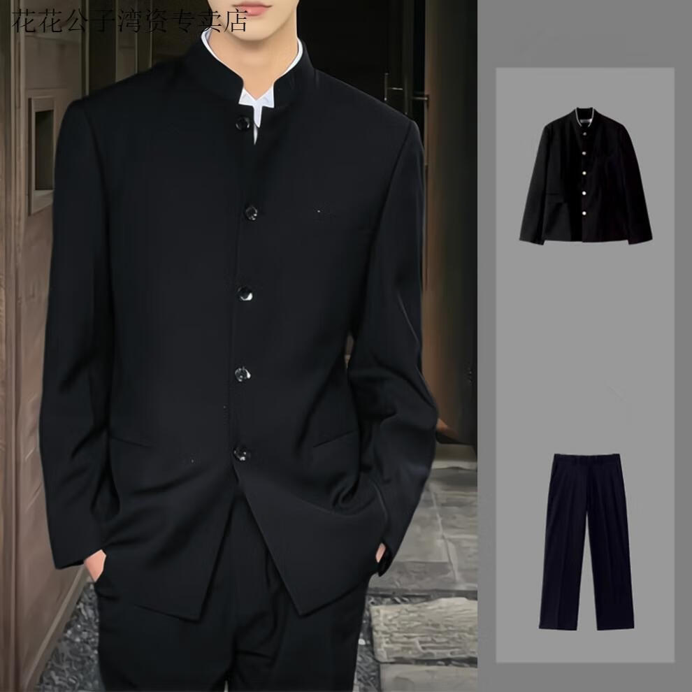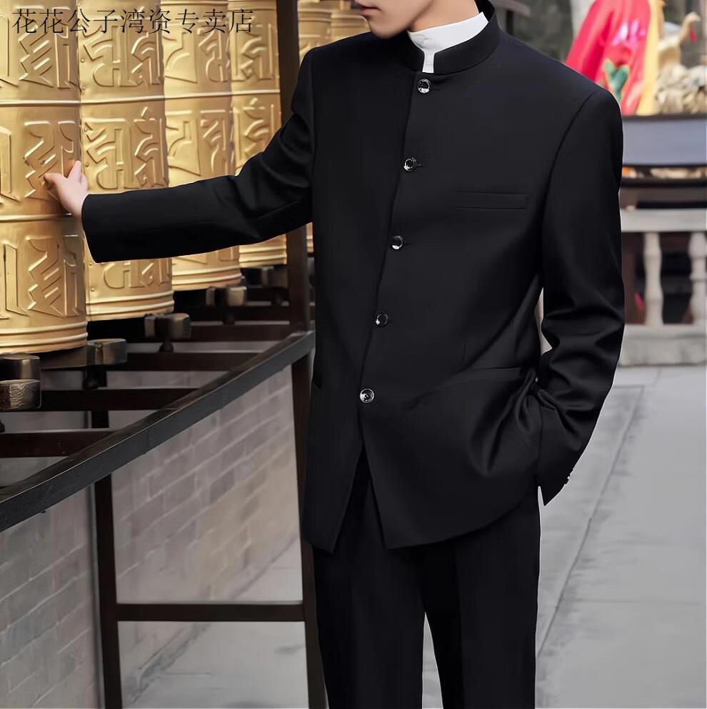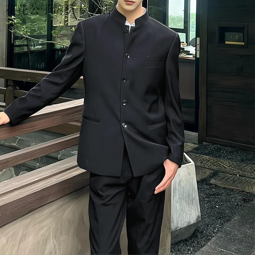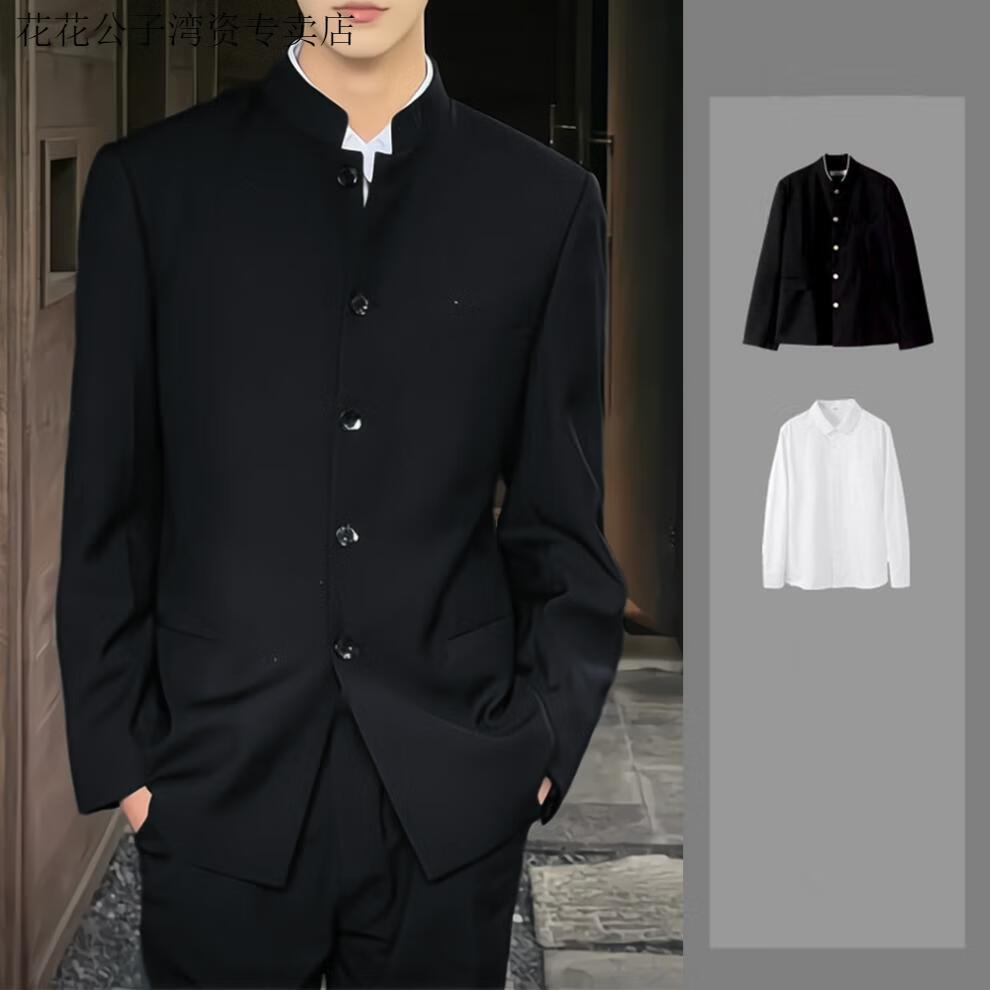 Playboy (PLAYBOY) dk uniform new Chinese style stand-collar tunic suit for men, a complete set of spring and autumn trendy slim shoulder pads, Chinese style suit jacket, tunic suit, white shirt, trousers (free black collar 5XL