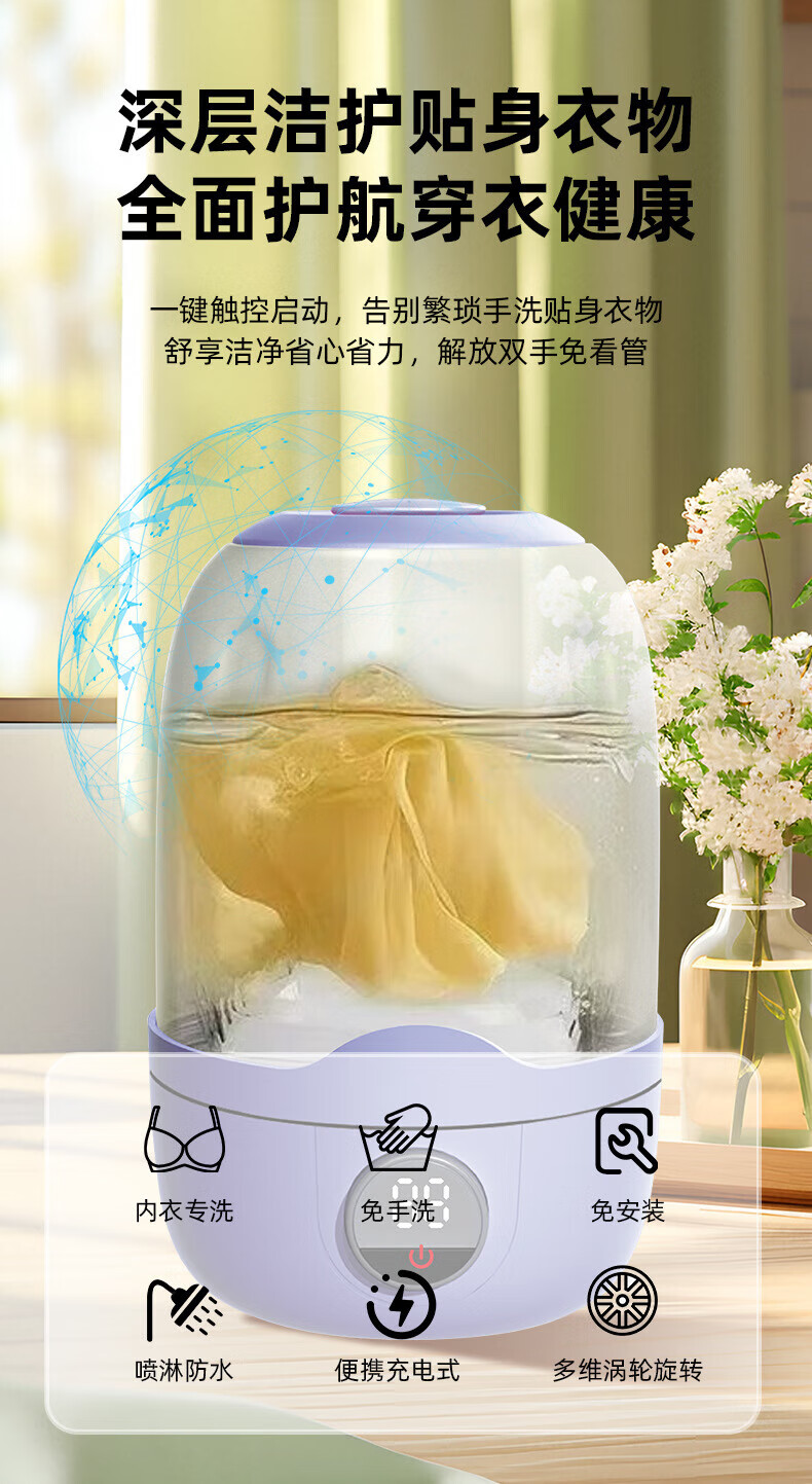 Xiaomi Guoba Trendy Life Appliances Mini Washing Machine Infant and Toddler Separation Washing Small Socks Underwear Underwear Lazy Dormitory Portable Washing Machine Sock Washing Machine Travel Outdoors Limited Time Special Purple
