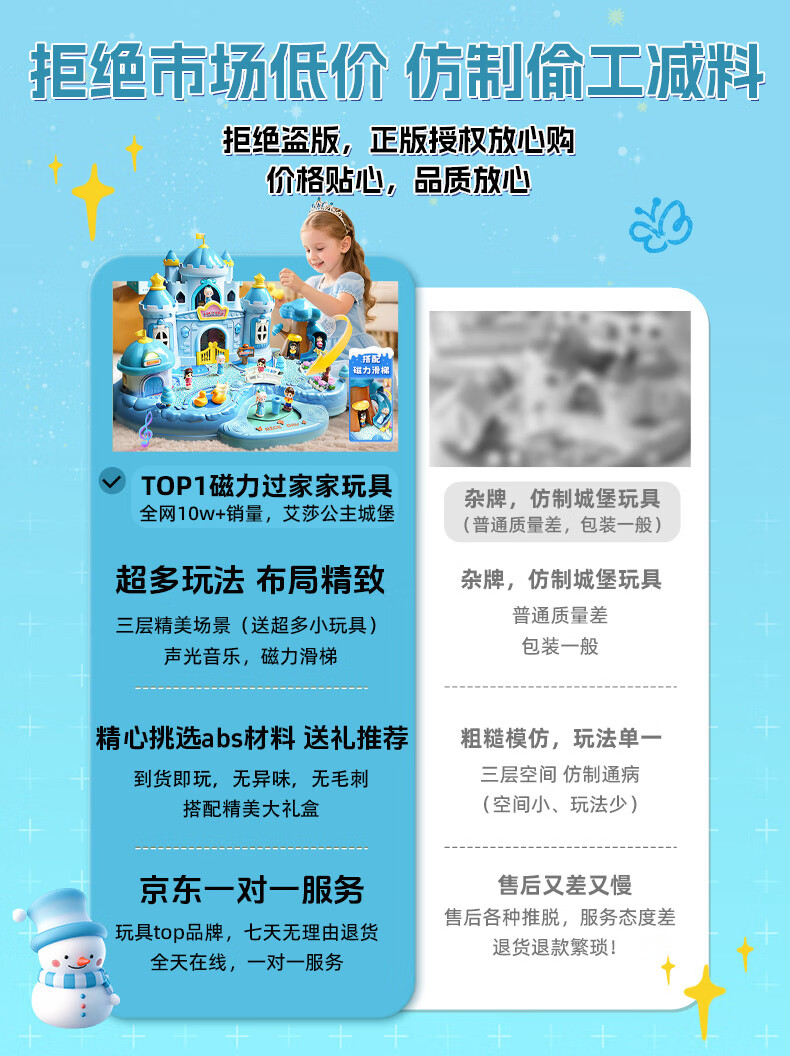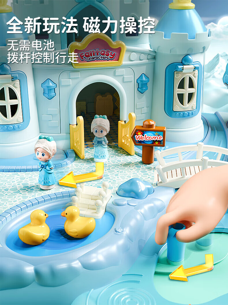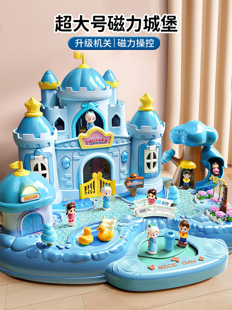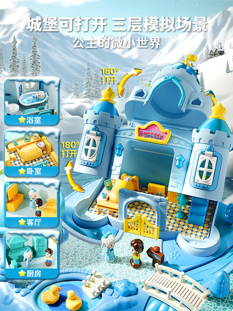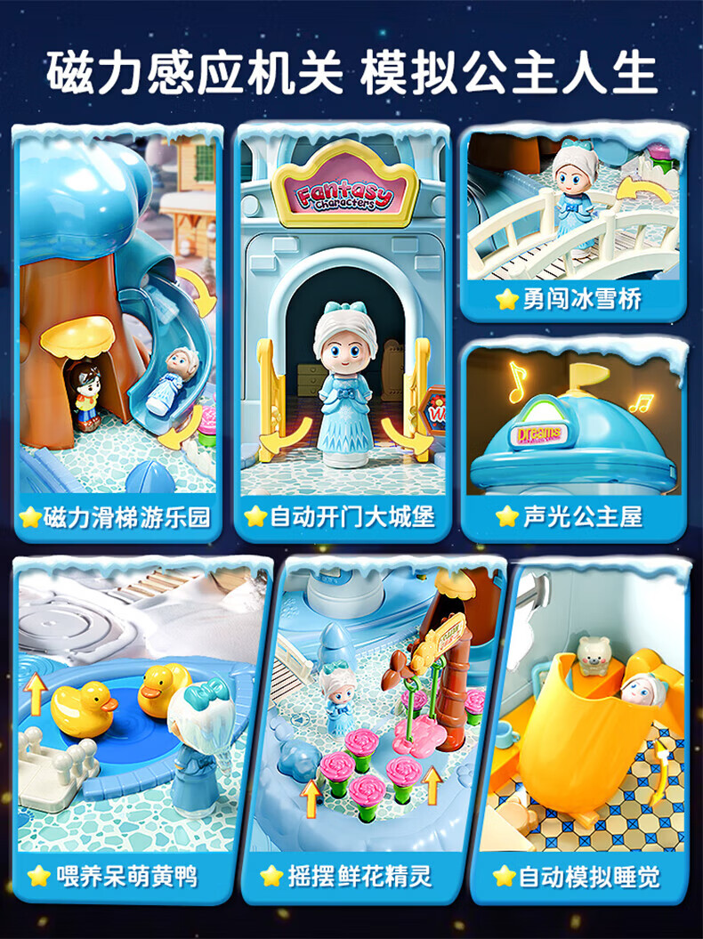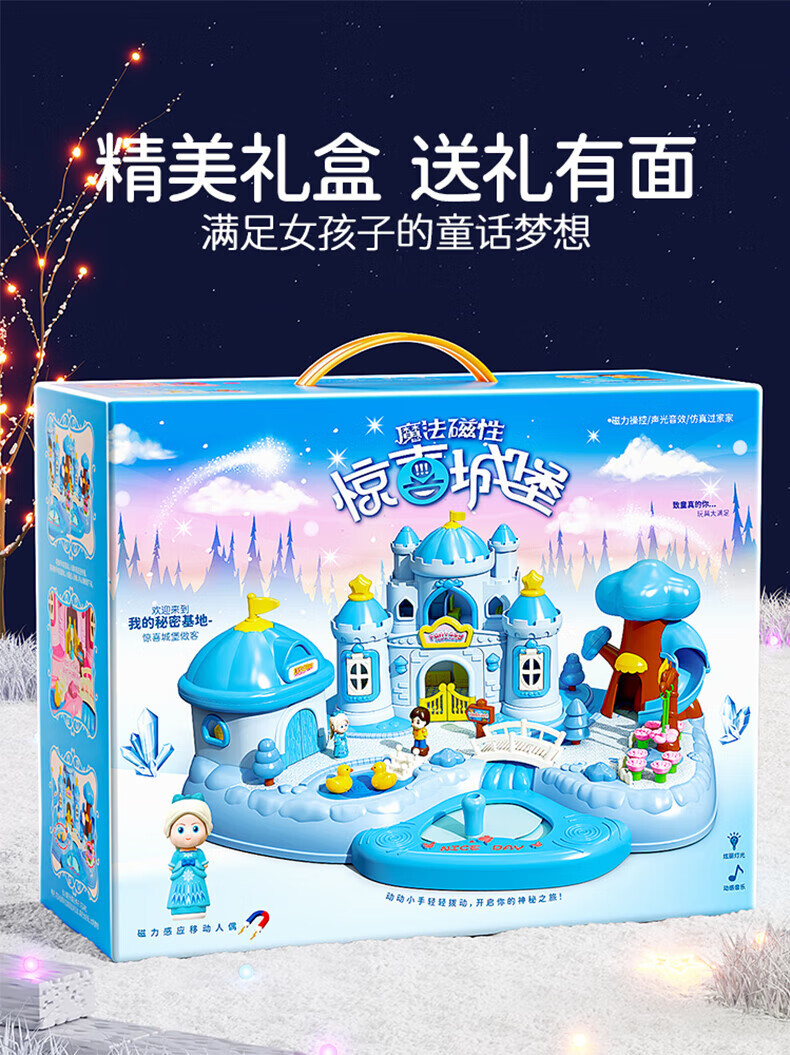 Bei Chuzhong Children's Toy Girls Birthday Gift 3-6-10 Years Old Educational Little Girls Magnetic Play House Castle Large Ice and Snow Castle Three-Layer Simulation + Slide + Sound and Light Music Princess Elsa 7-14 High-End Gift Box Elsa