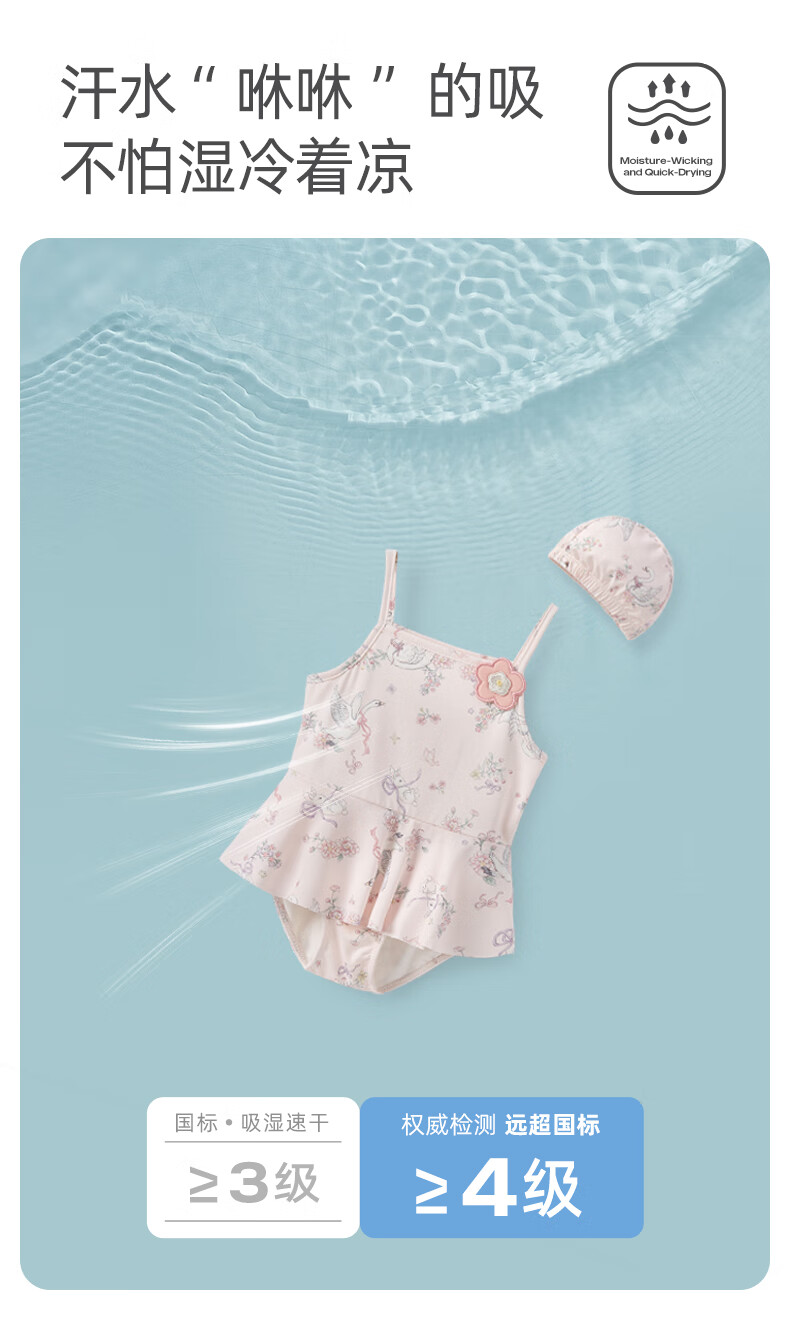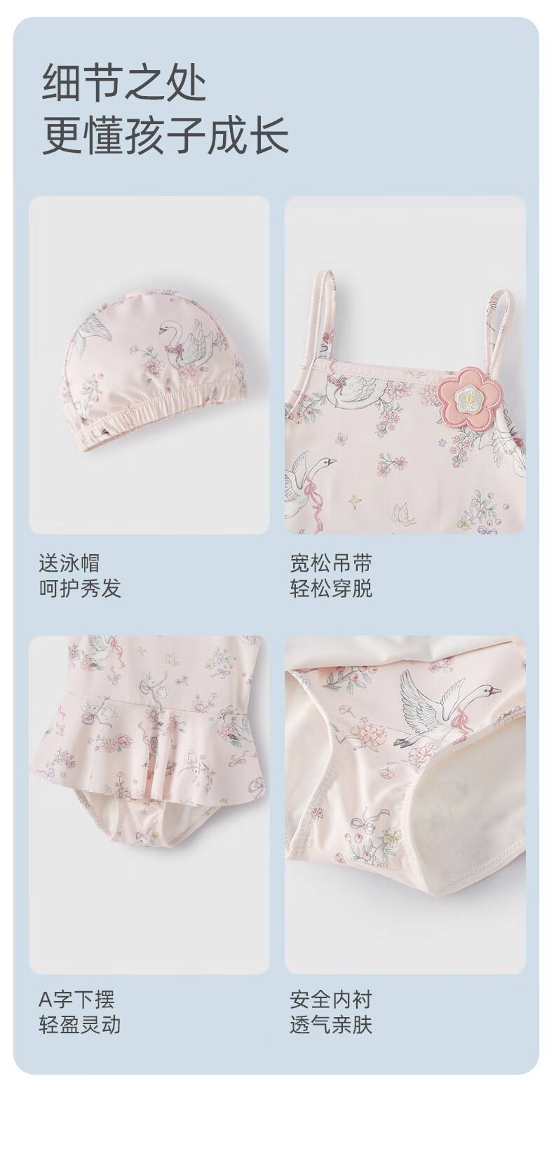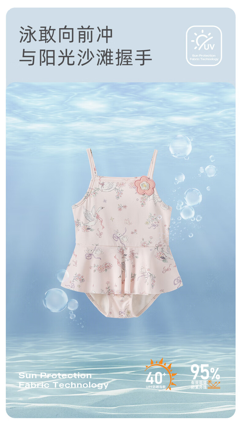 JELLYBABY new quick-drying sun protection girls' swimsuit summer suspender beach wear children's swimsuit pink 90 cm