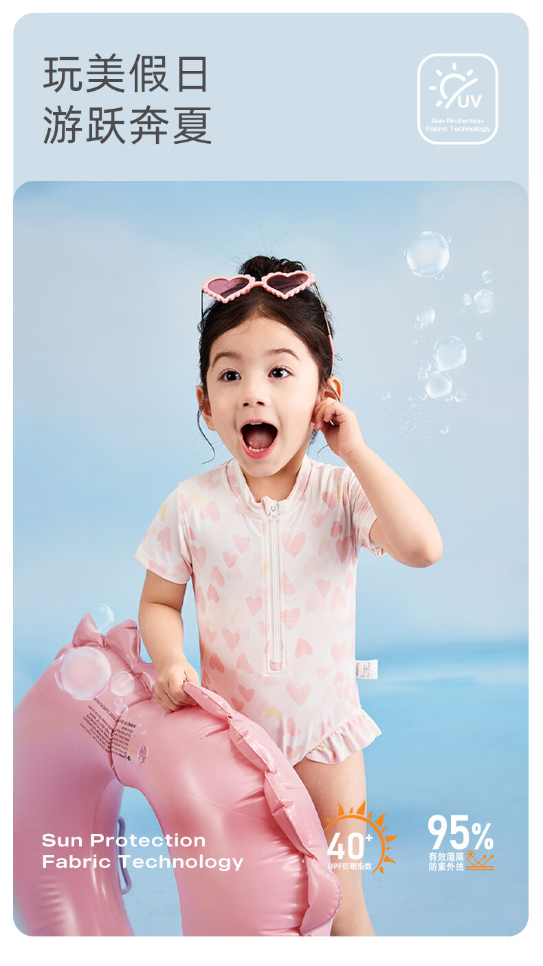 JELLYBABY new quick-drying sun protection girls' swimsuit children's short-sleeved swimsuit summer baby swimsuit purple 90 cm