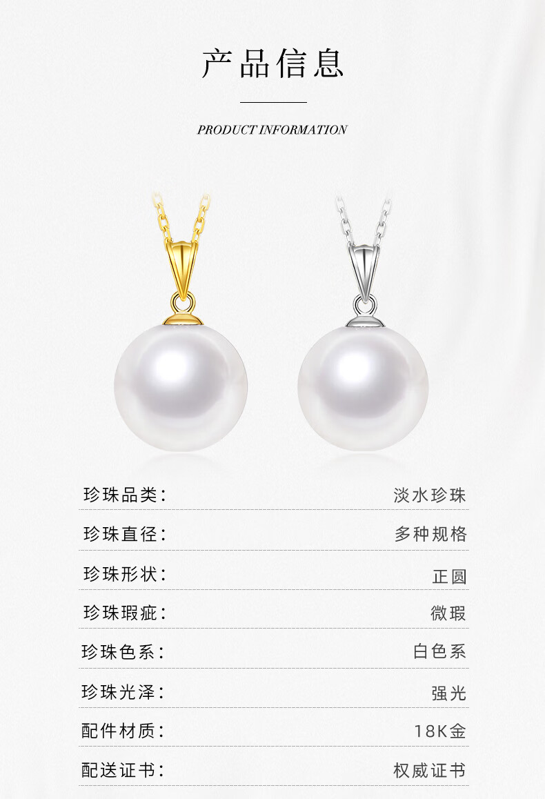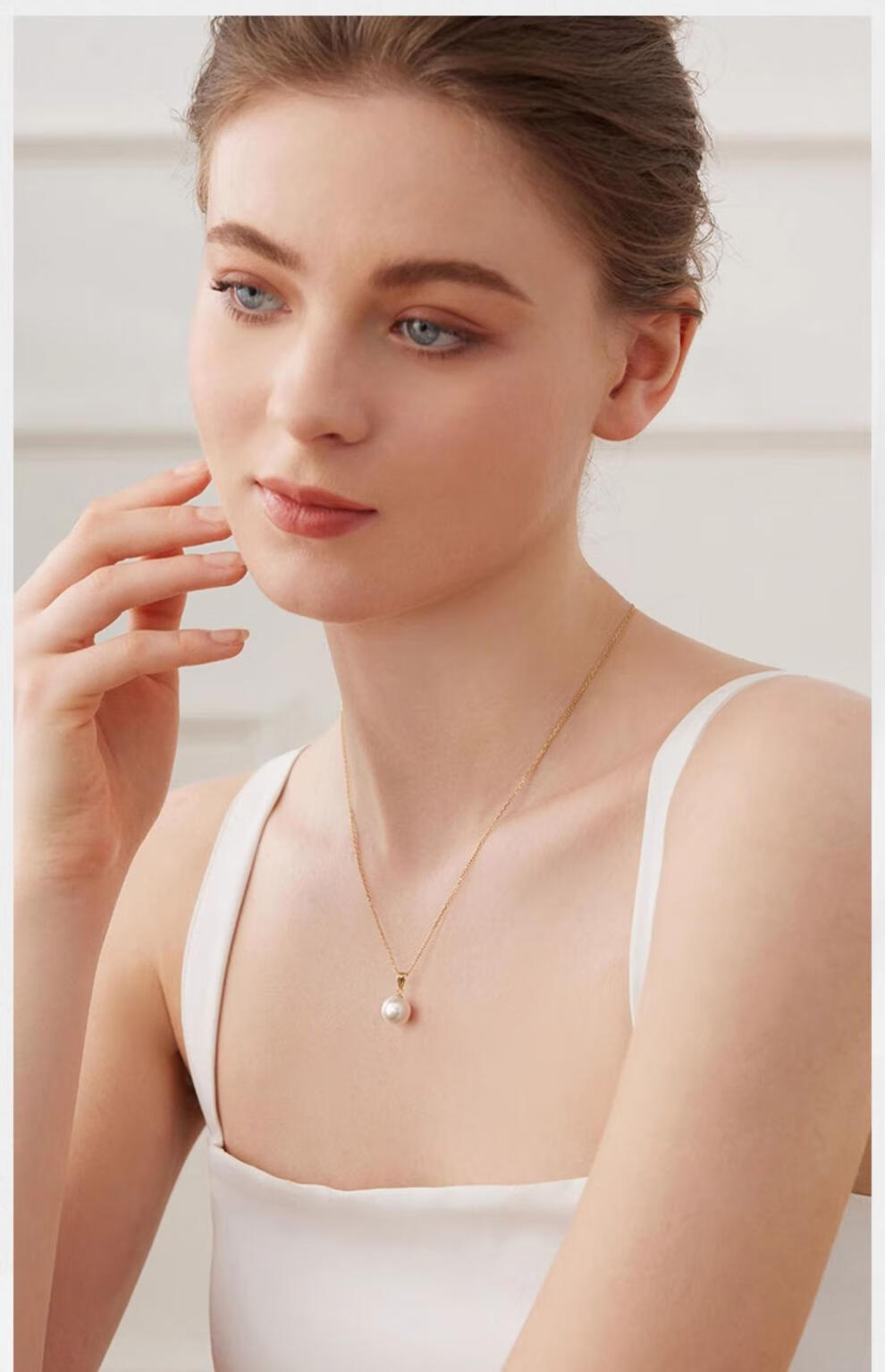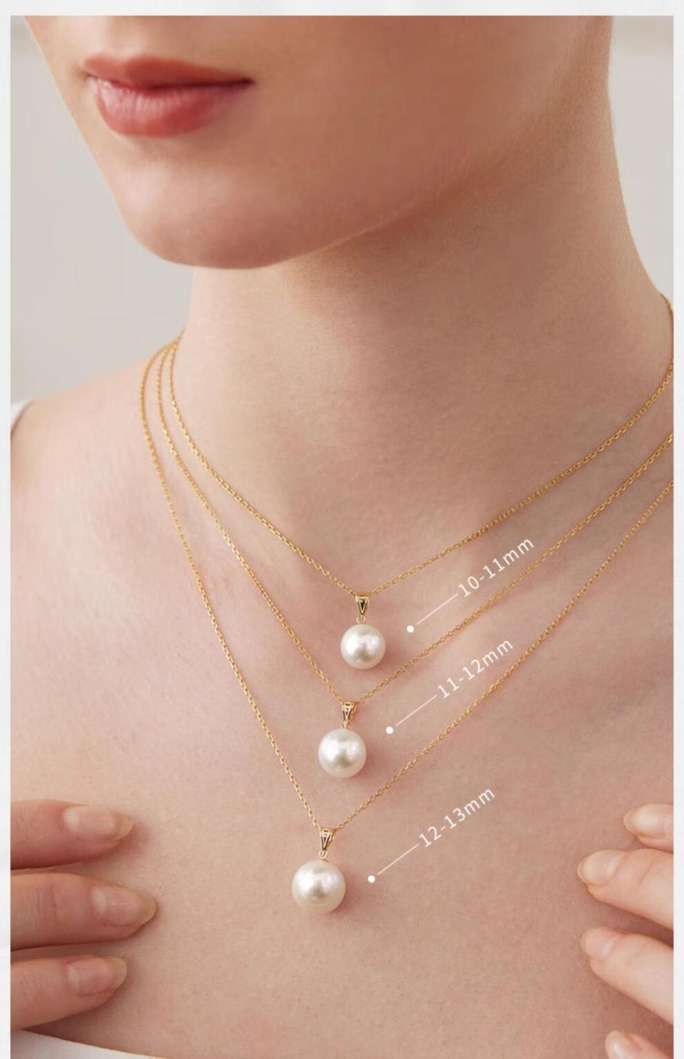 Tahitian Edison pendant necklace 18K gold strong light natural freshwater necklace mother gift yellow 18K gold_thick melon seed buckle white Edison 10-11mm