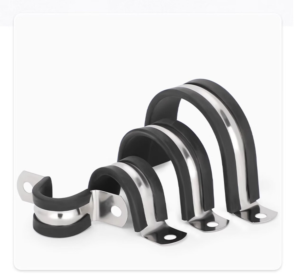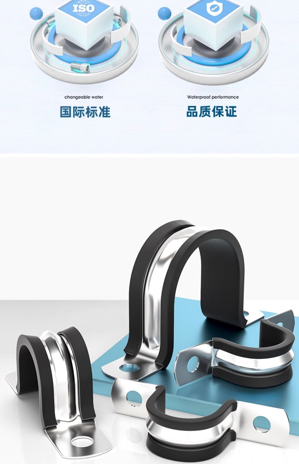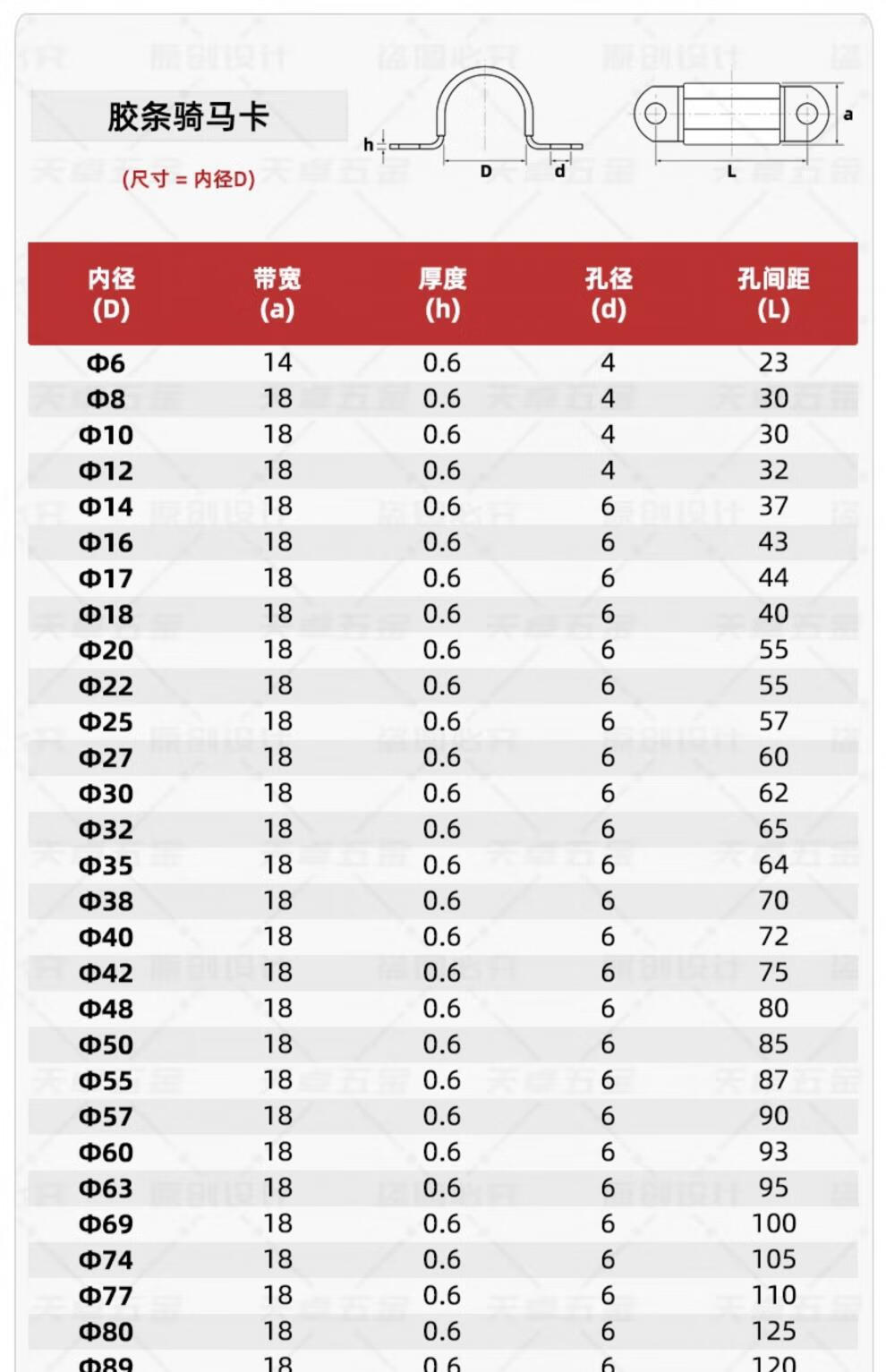 Tianzhuo Hardware 304 stainless steel U-shaped belt with adhesive strip riding clip steel pipe buckle clamp cable holder hose hoop 6mm-20 pcs