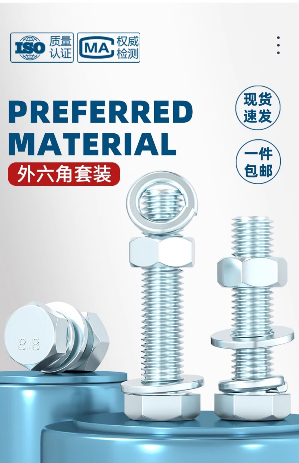 Tianzhuo Hardware Grade 8.8 high-strength galvanized external hexagonal bolt set complete screw nut screw combination M12 M10*25 15 sets