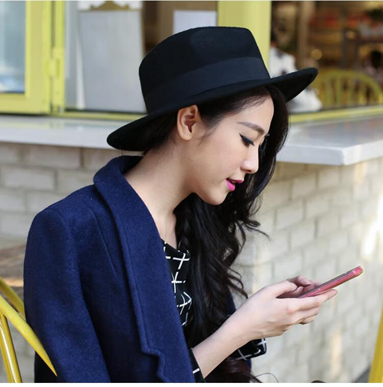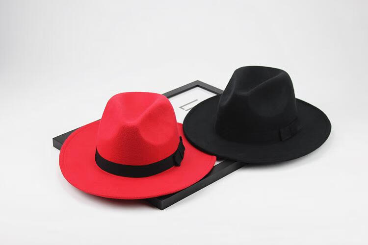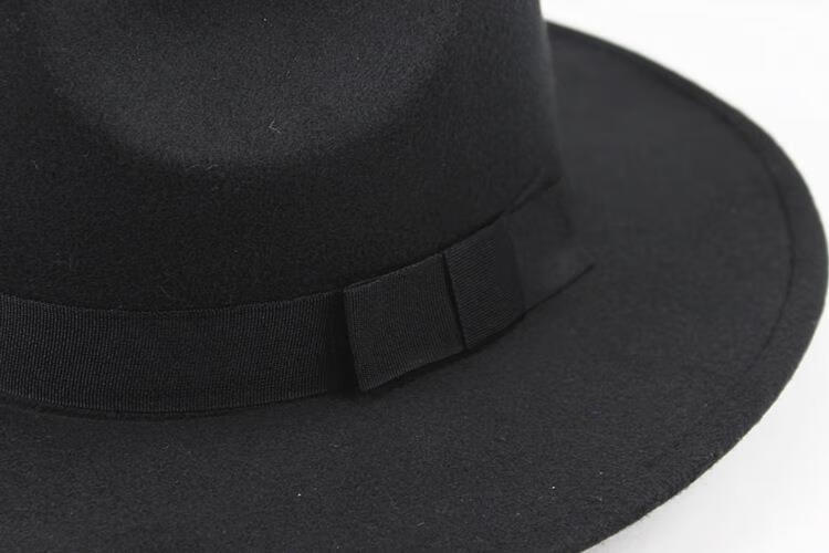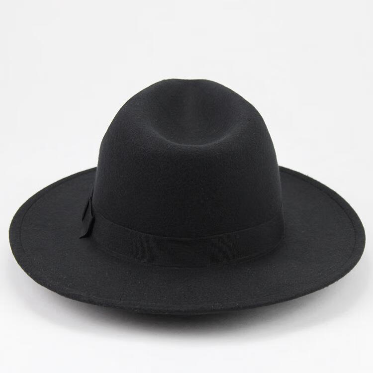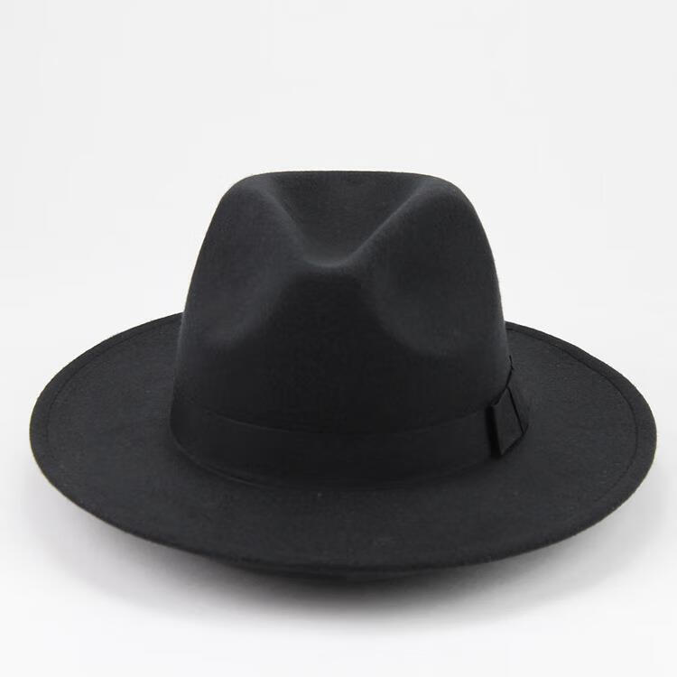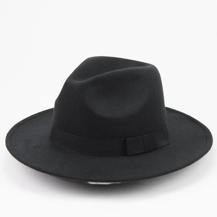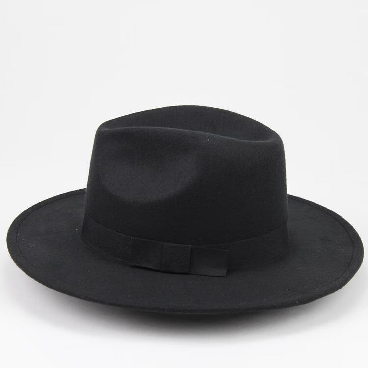 Aibido Michael Jackson Hat European and American Jazz Street Dance Hat Large Brim Top Hat Performance Dance Hat Fashion Couple Black 56-59cm Built-in Adjustment Cord