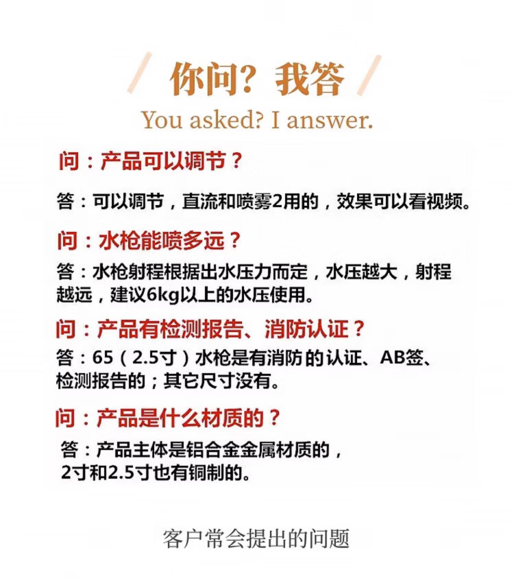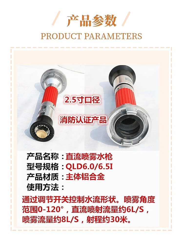 MDUG65 fire multi-function nozzle 3 inches 2.5 inches blooming spray DC water gun shower head high-pressure hose hose gun head 65 DC spray water gun dual-purpose (2.5 inches) fire certification