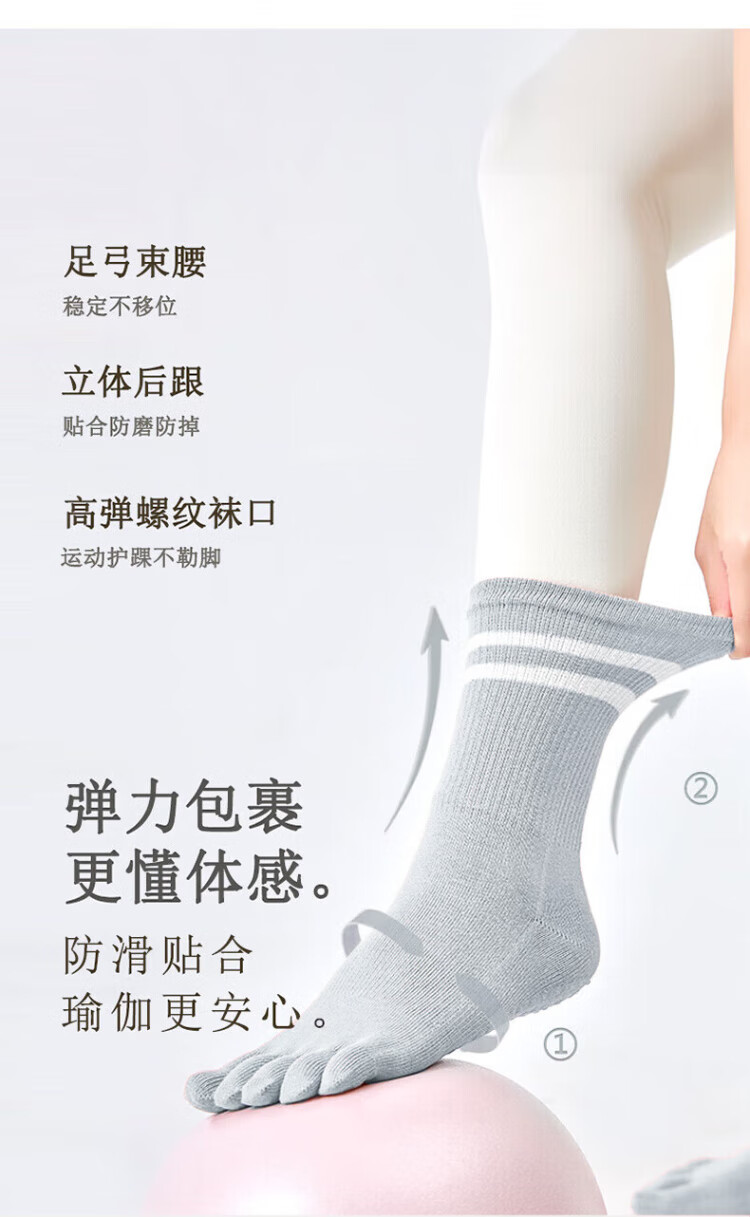 Duweck yoga socks five-finger split-toe professional non-slip sports Pilates mid-length indoor fitness sports socks sky blue