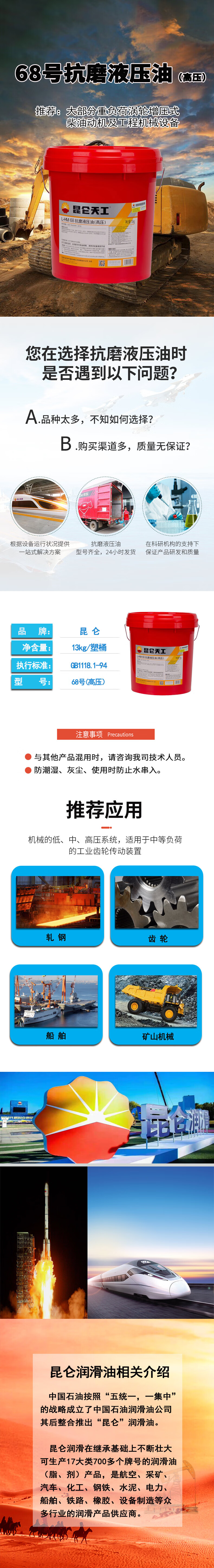 Kunlun L-HM68 Tiangong anti-wear hydraulic oil (high pressure) 13kg