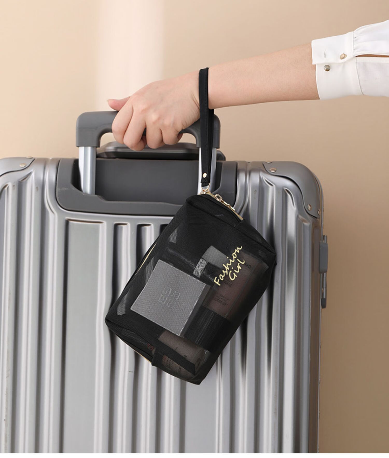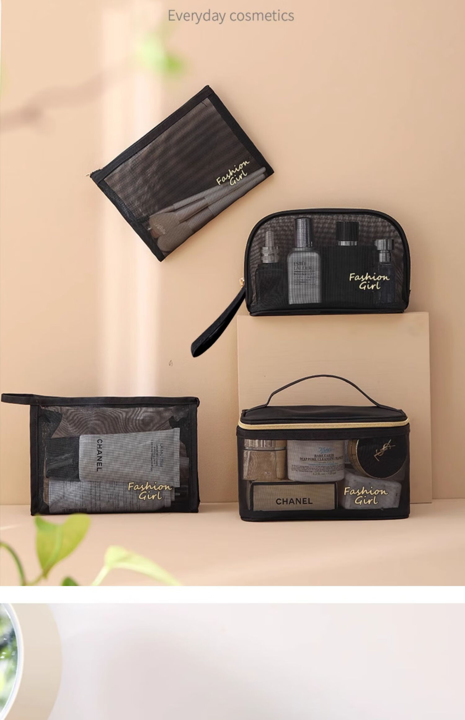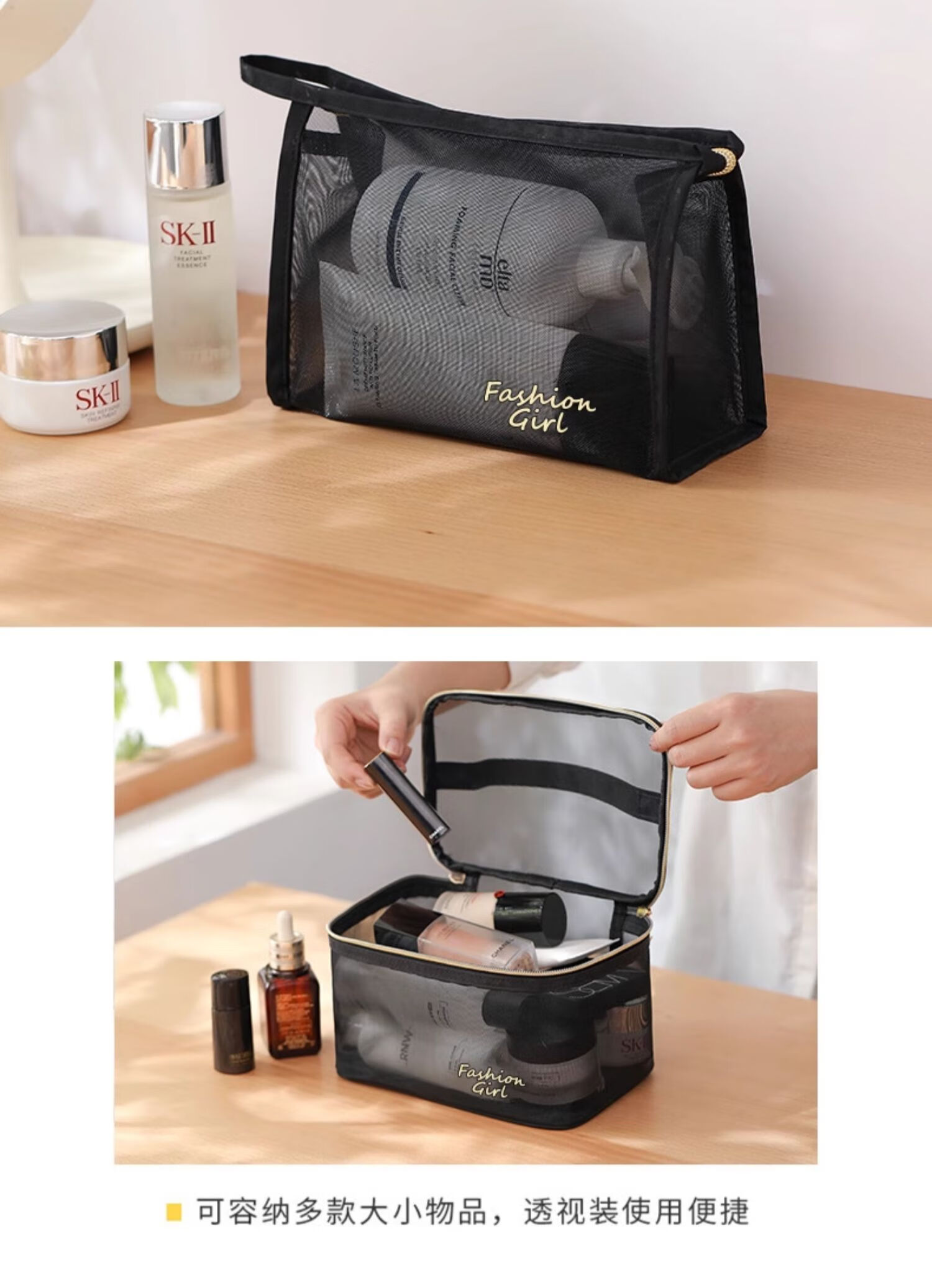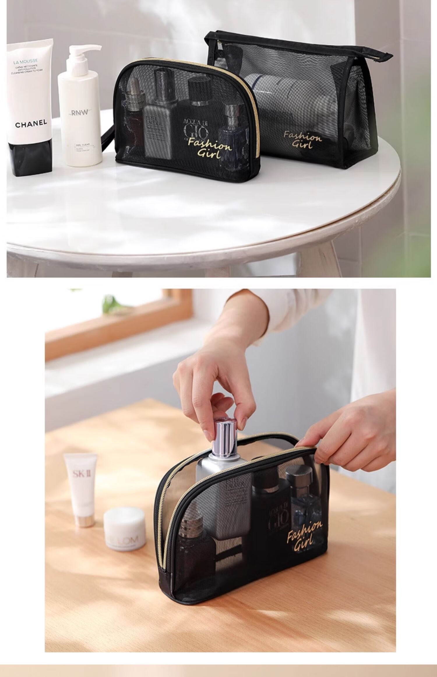 EACHY cosmetic bag for women 2025 new mesh transparent travel toiletry bag cosmetics portable storage bag cosmetic bag bag semi-circular style