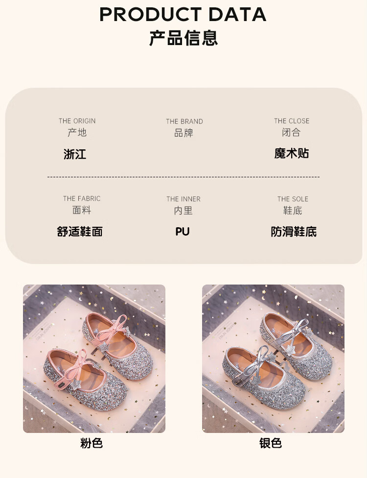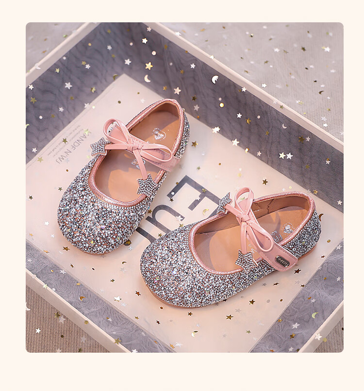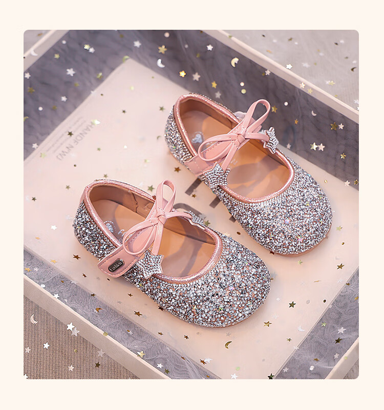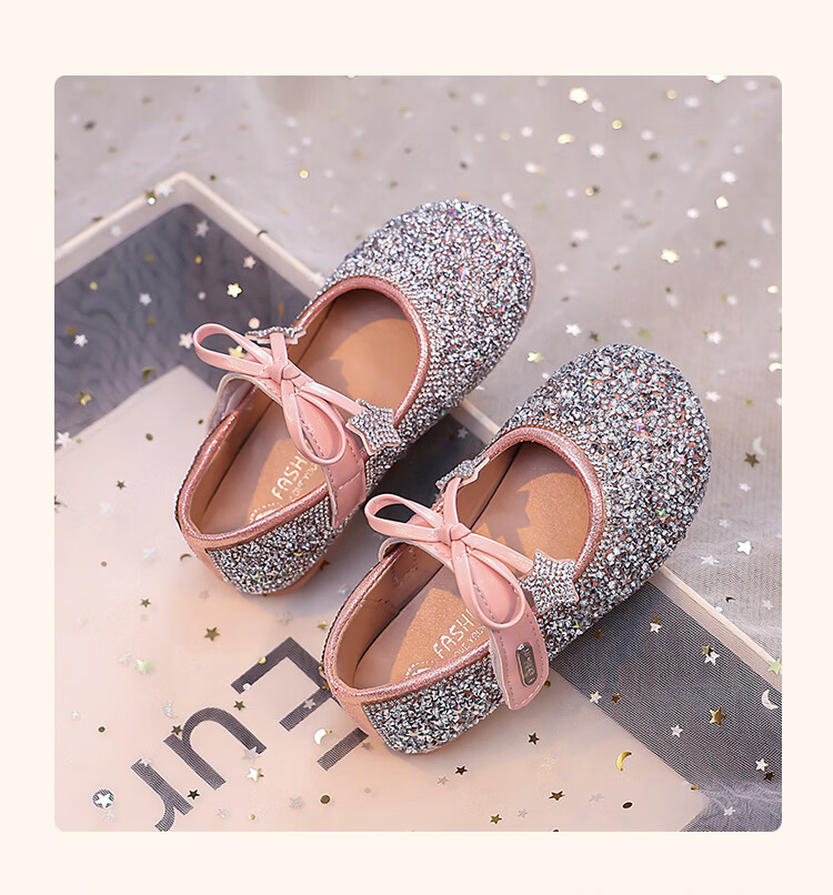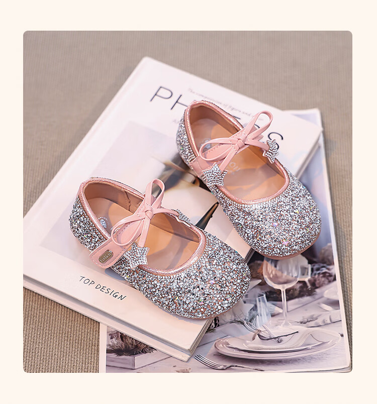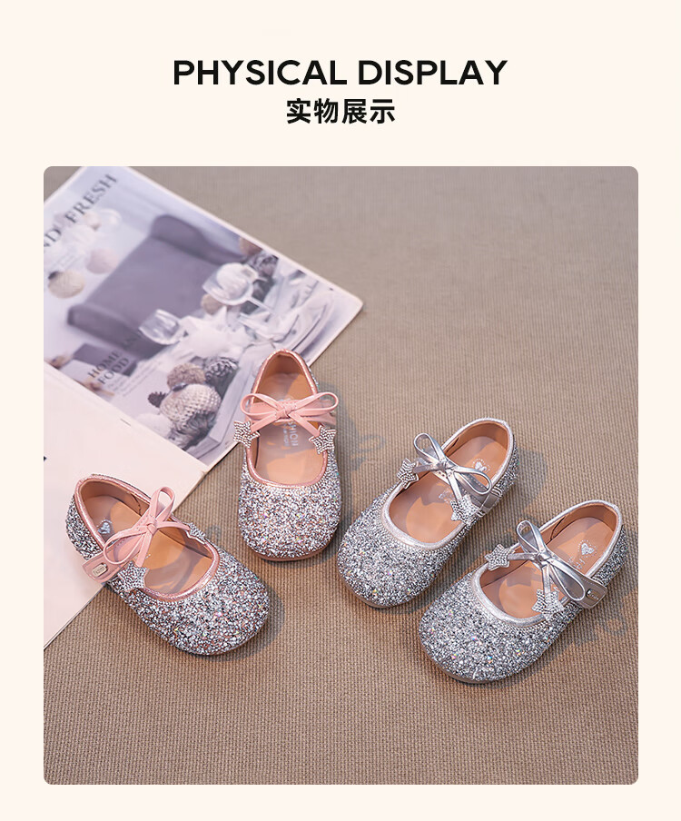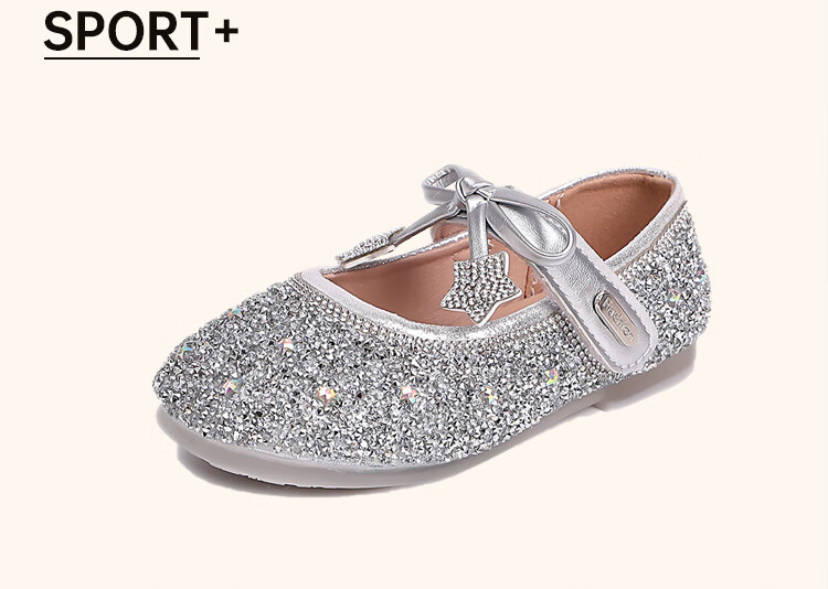 Girls Princess Shoes 2025 Spring and Autumn New Soft Sole Genuine Leather Children's Elsa Sparkling Crystal Shoes with Dress Shoes Silver 29