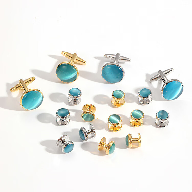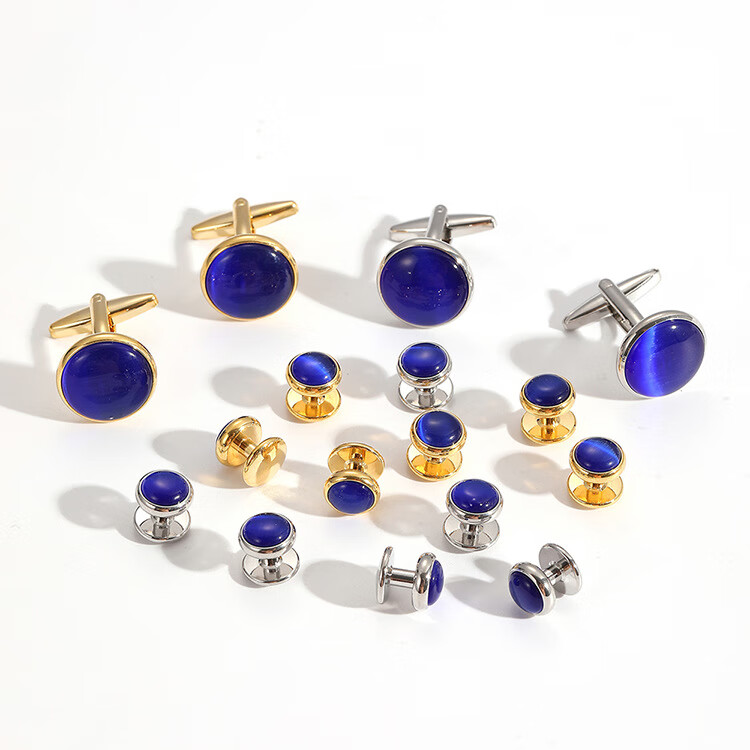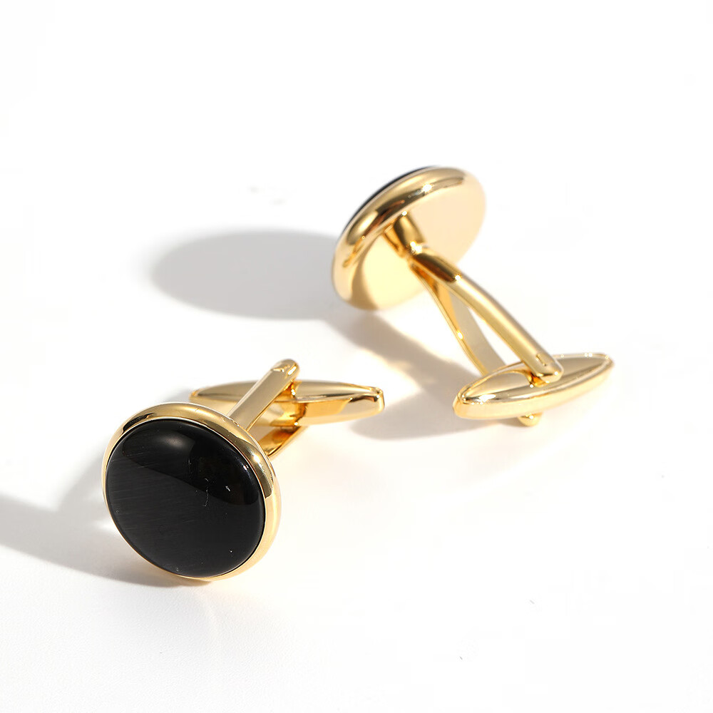 Preferred straight hair cat's eye cufflinks set French cufflinks high-end men's and women's suit shirt buttons men's sleeve nails black + gold 1 piece