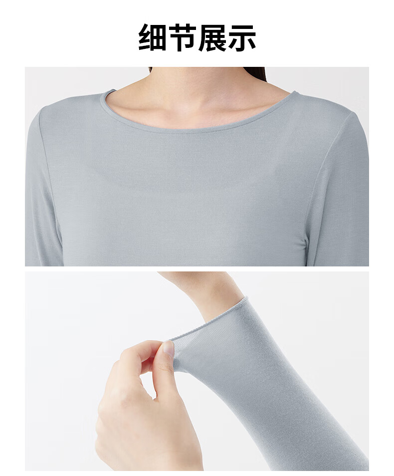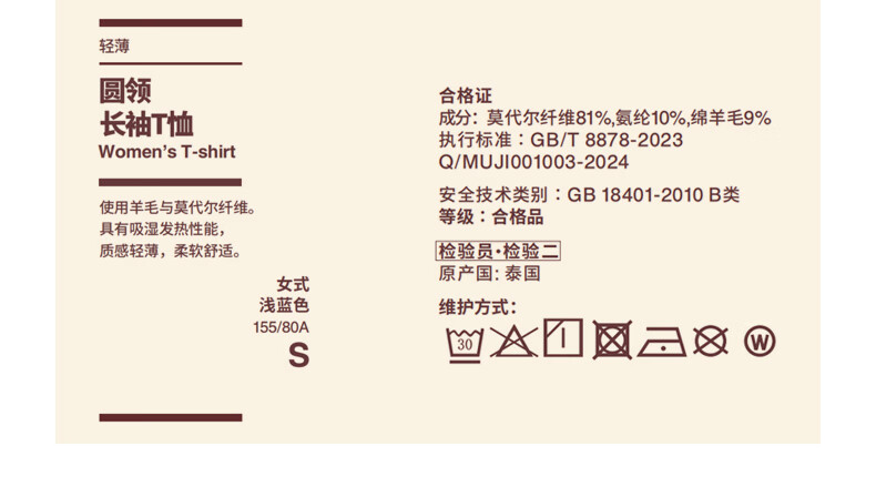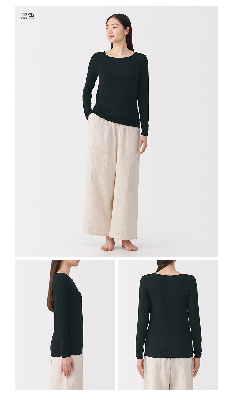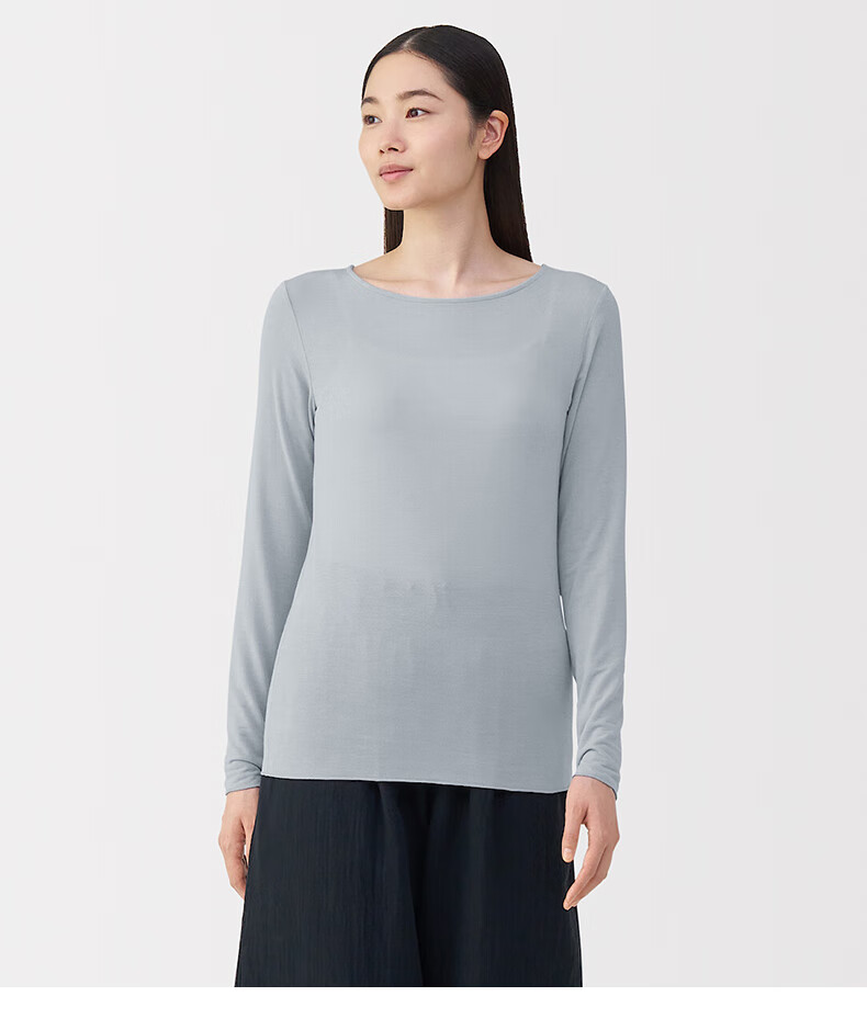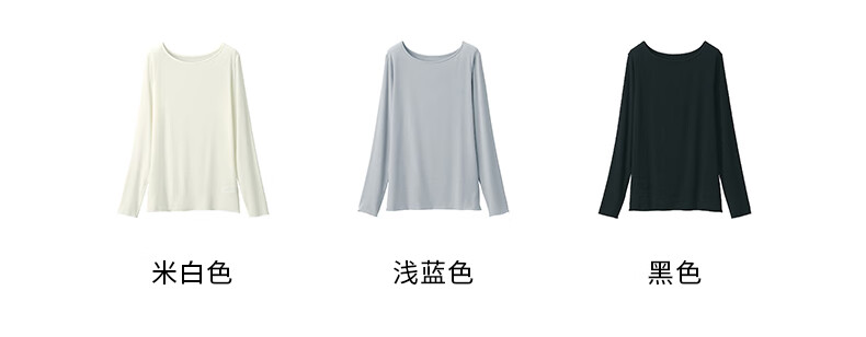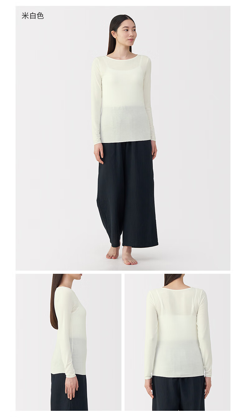 MUJI Women's Lightweight Round Neck Long Sleeve T-shirt Women's 25th Autumn Women's Basement FCD37A5A Off-White S (155/80A)
