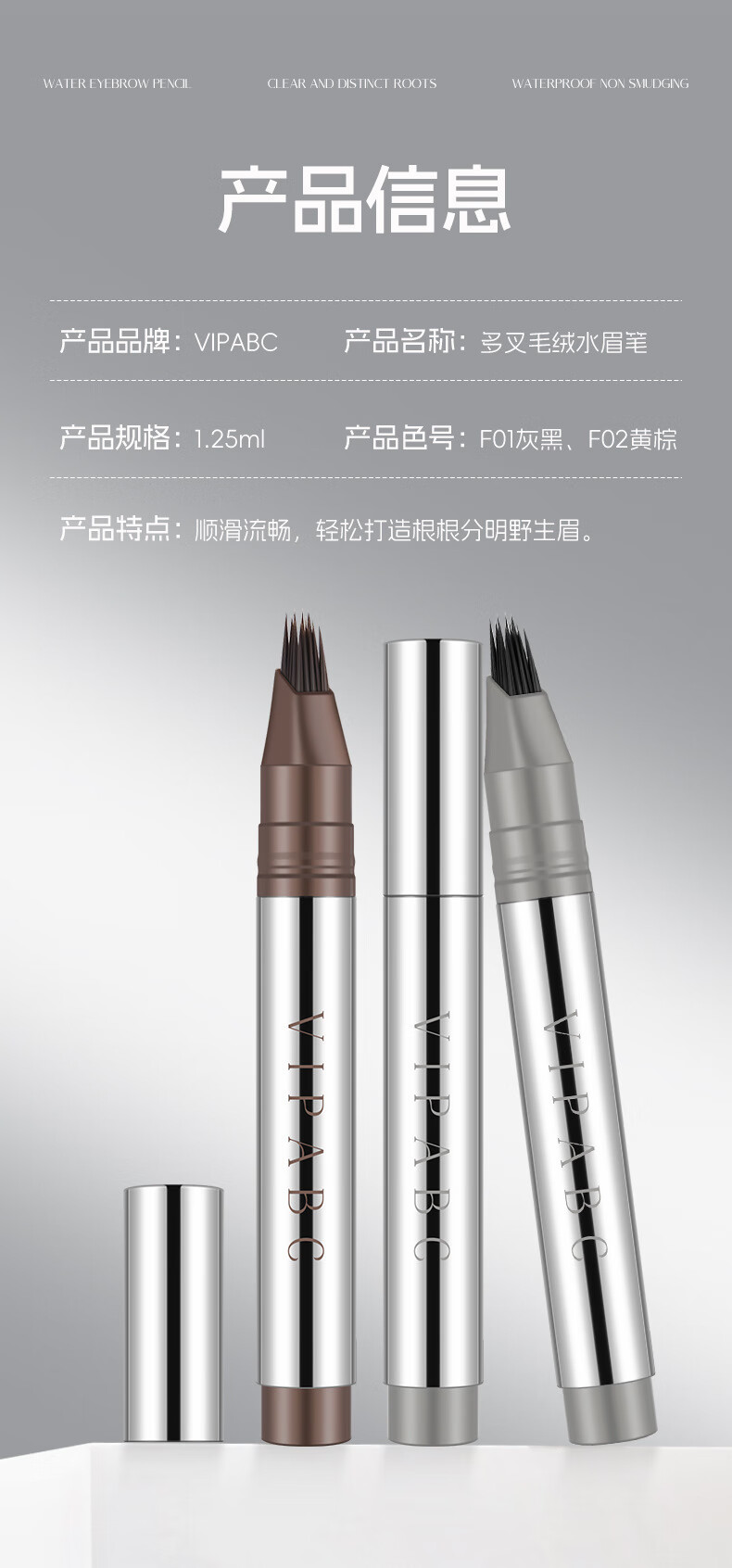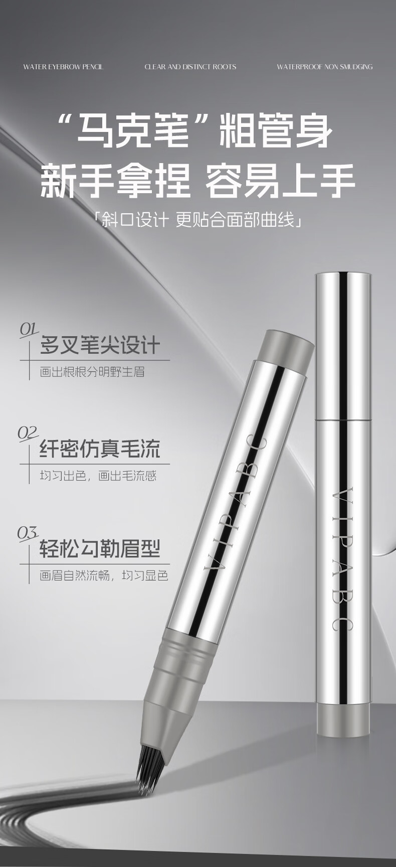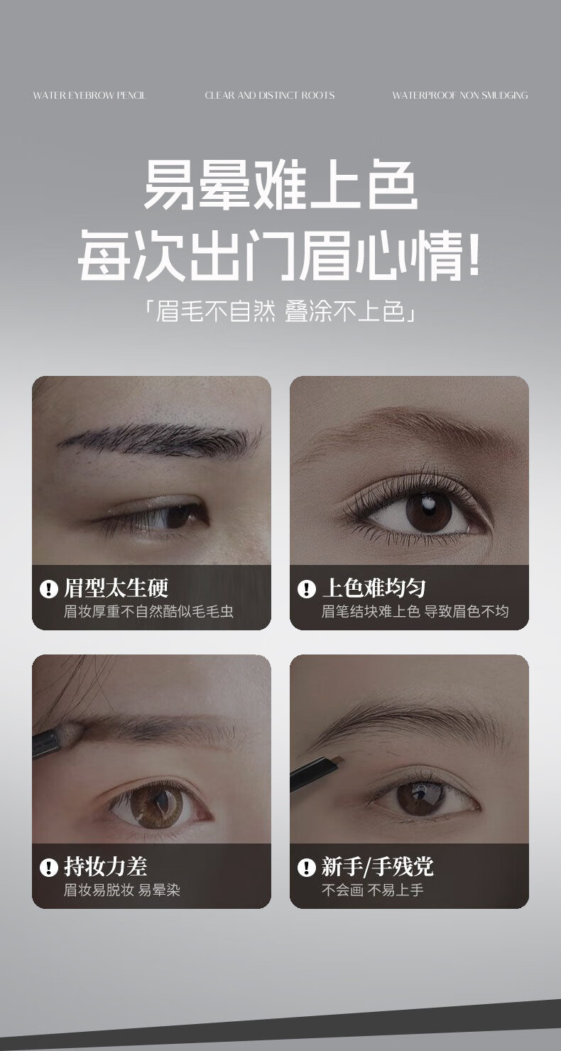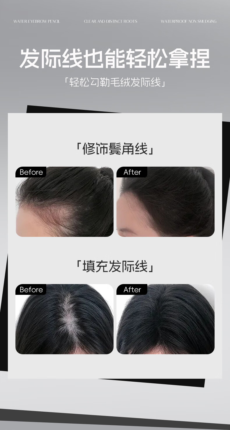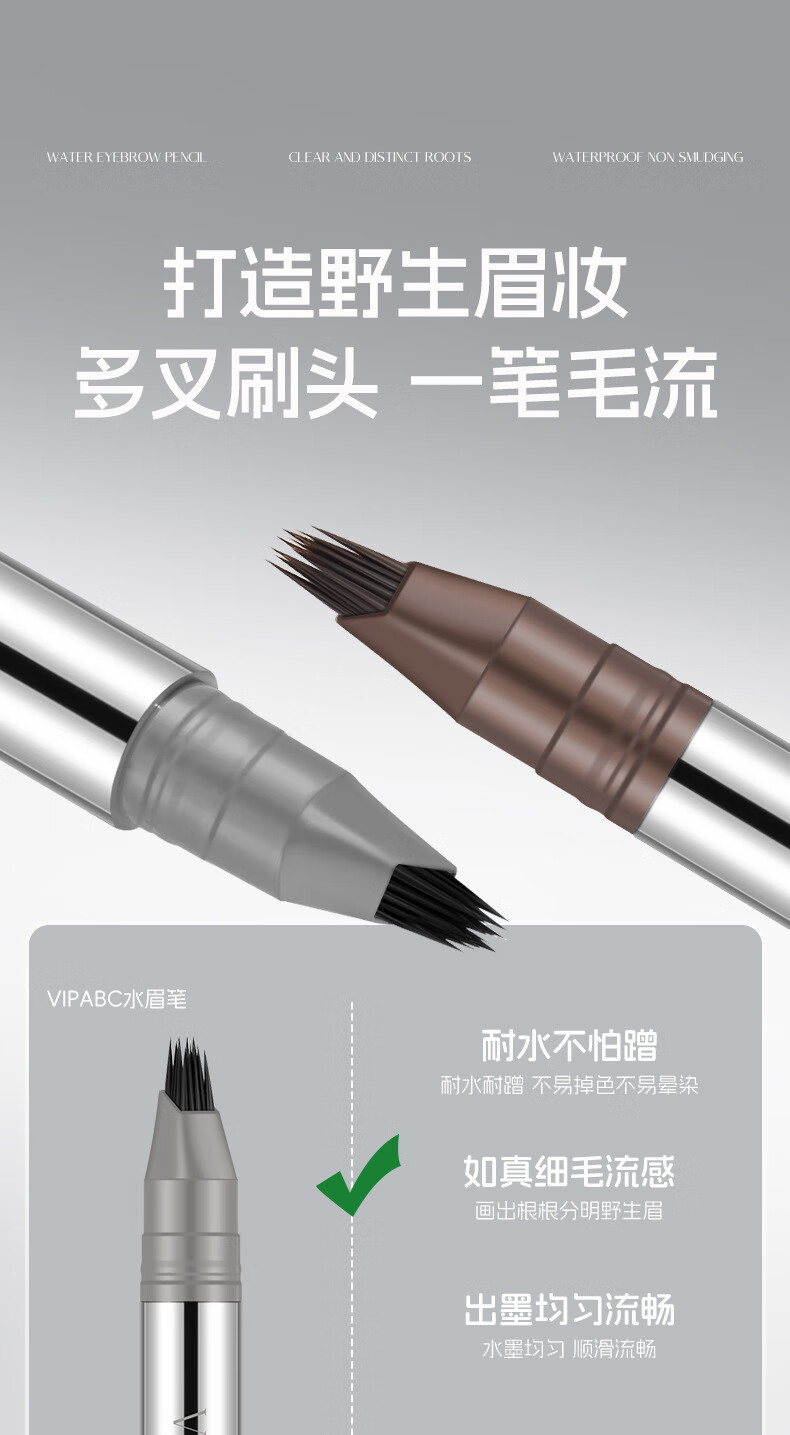 VIPABC Water Eyebrow Pen Quick Water Eyebrow Pen Multi-pronged Brush Head Beauty Modification Wild Eyebrow Roots and Clear Hairline 2-in-1z 1# Gray Black 1 Pack